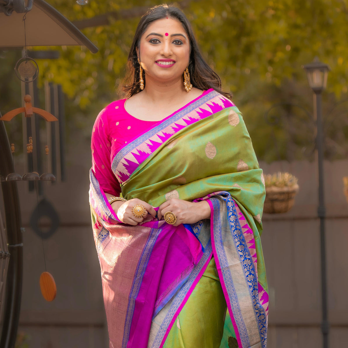 The border and pallu of a katan banarasi saree are made of gold and silver threads of zari and complement the whole beauty of the saree, no matter what color it is.