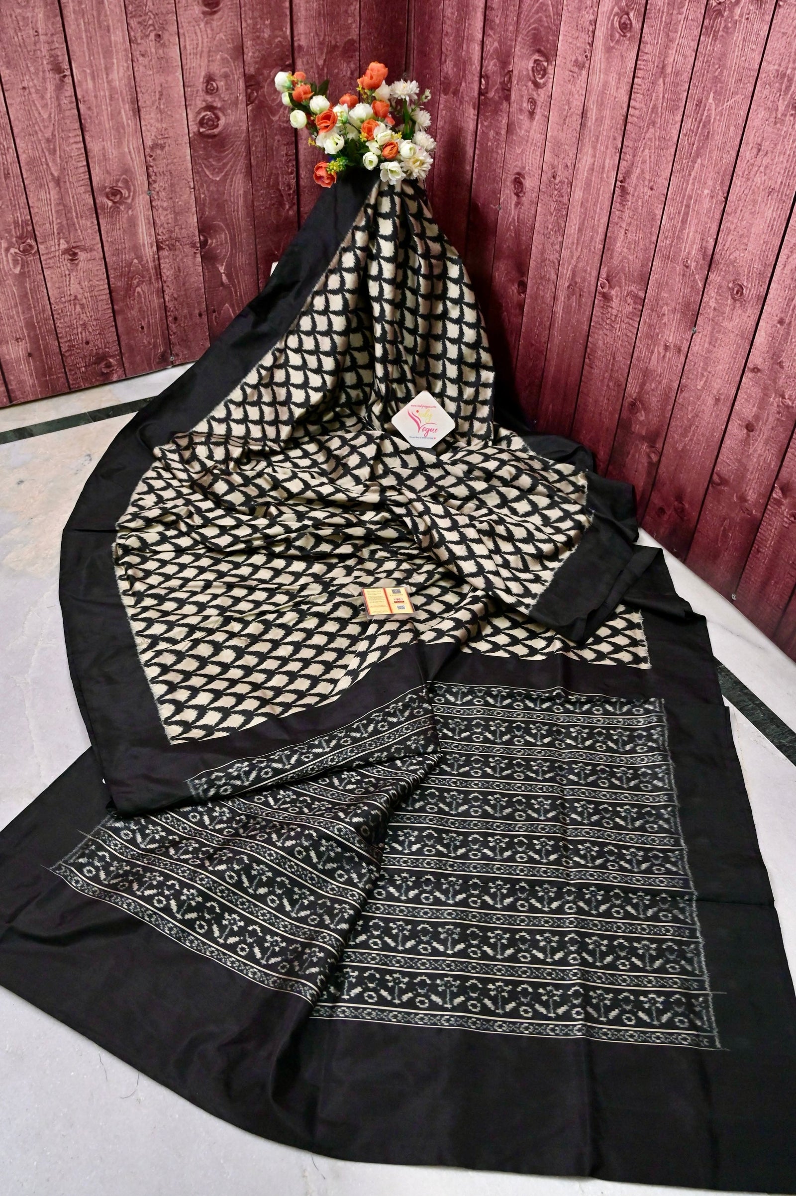 - Technique: Amazing work of ikat dye work on the weaving work a whole saree done in a traditional tie-dye method