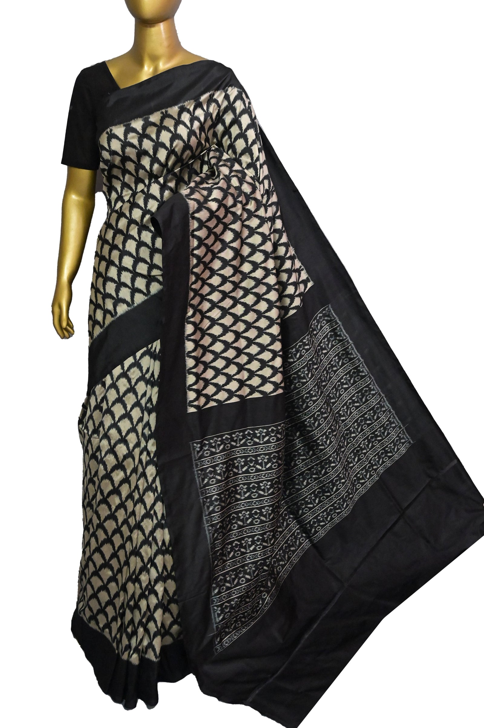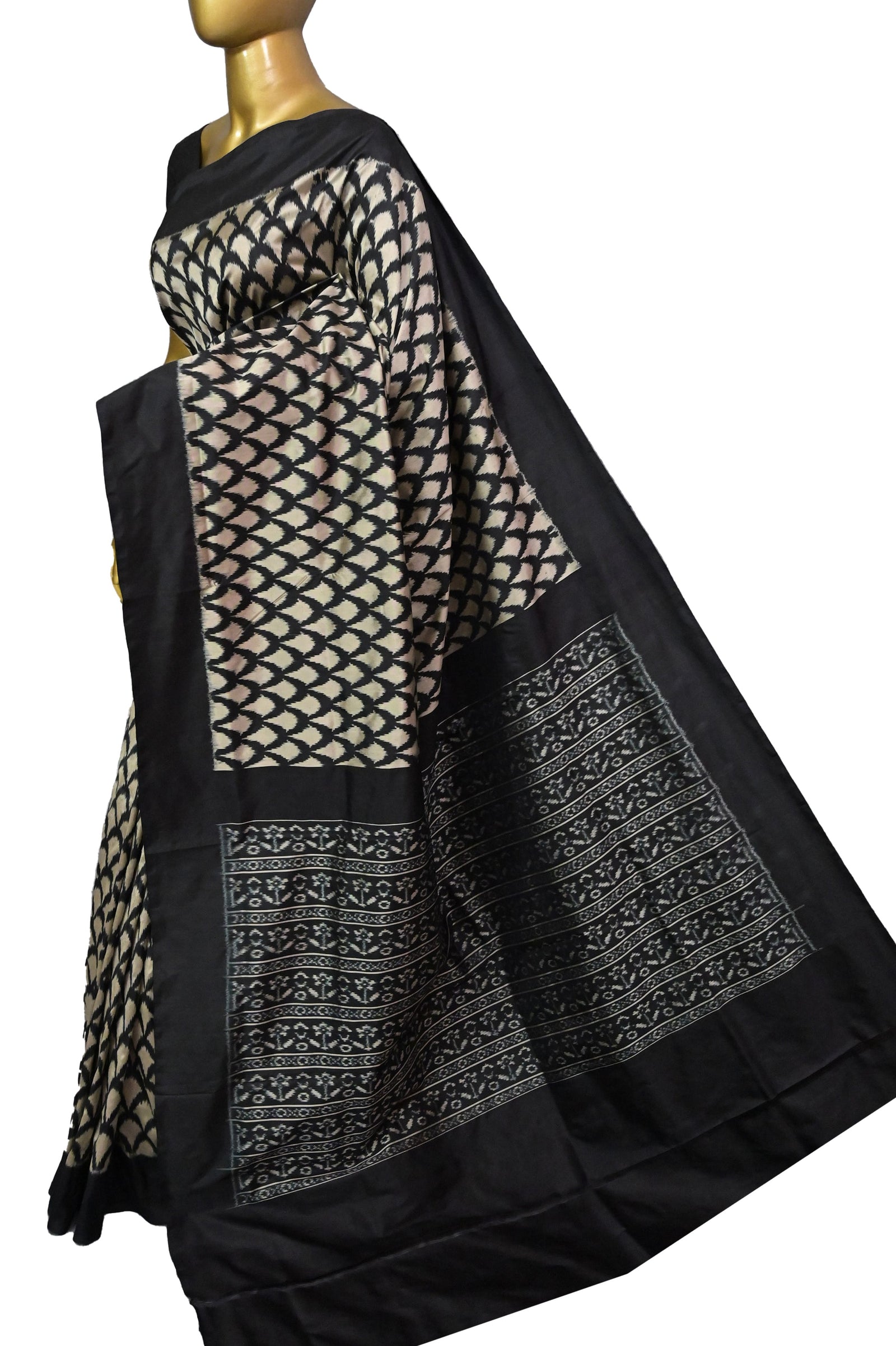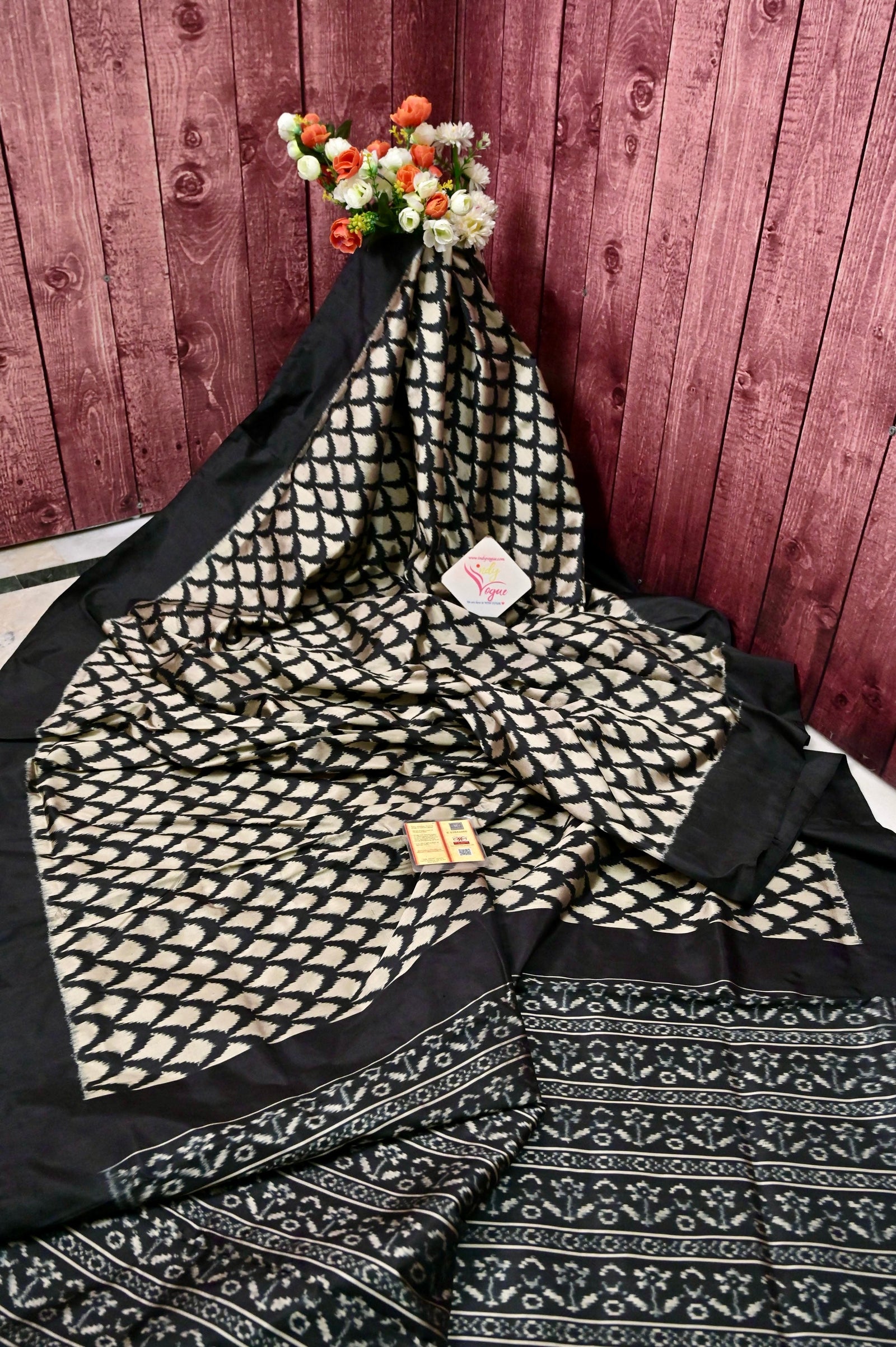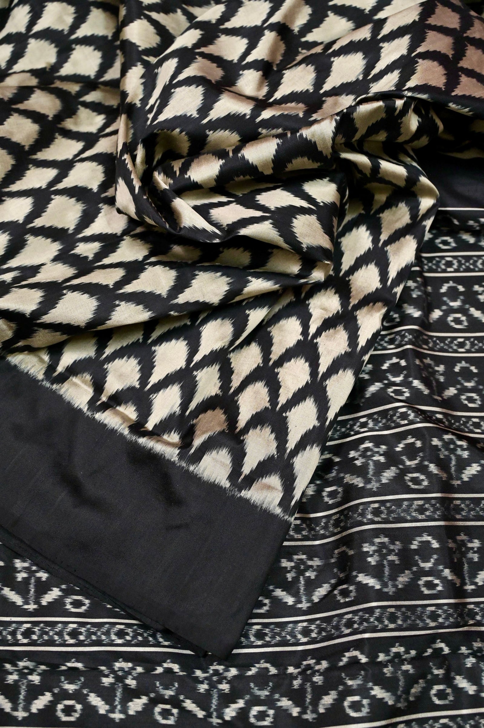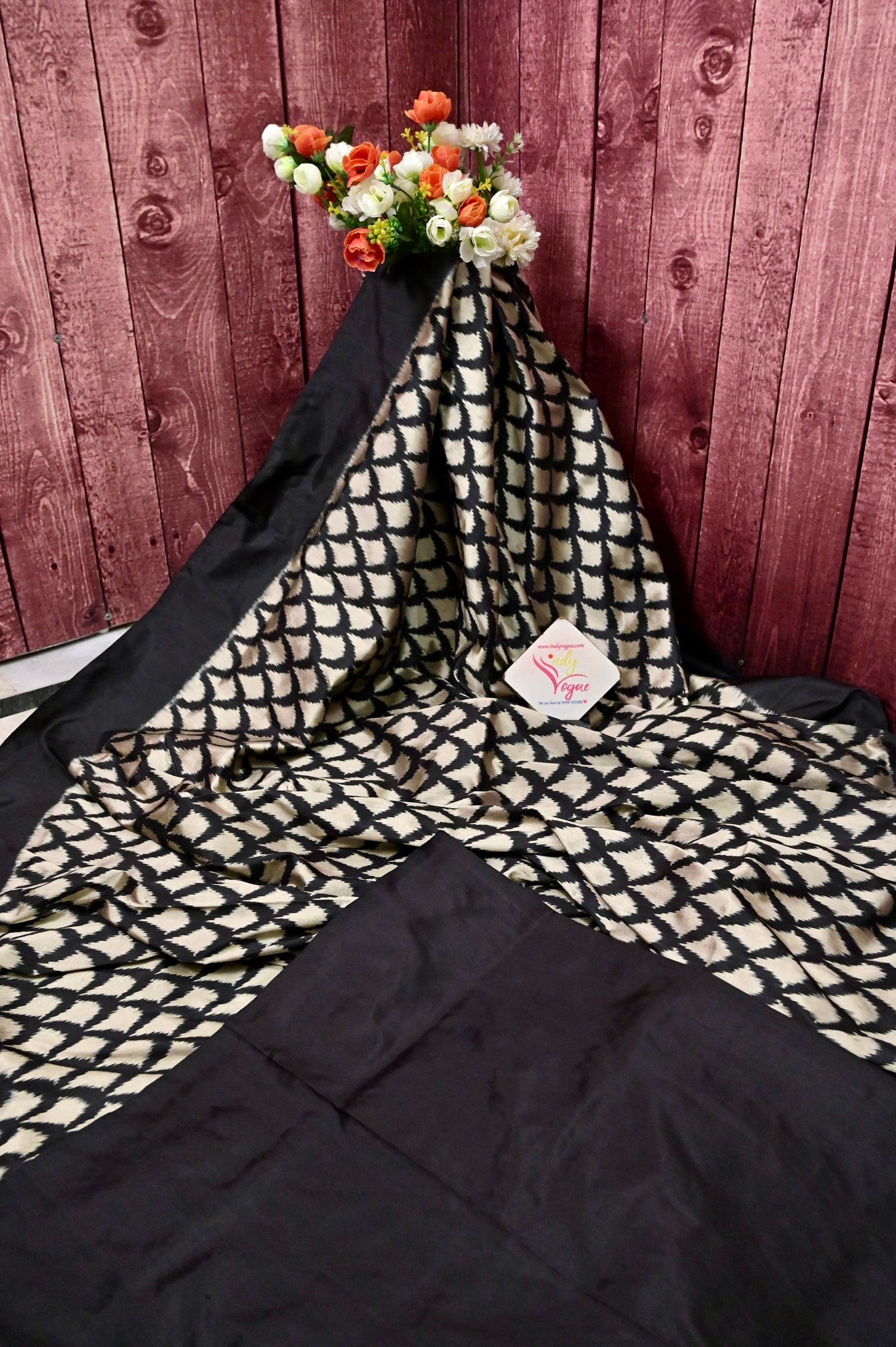 Black and Offwhite Color Ikat Silk with Allover Weaving