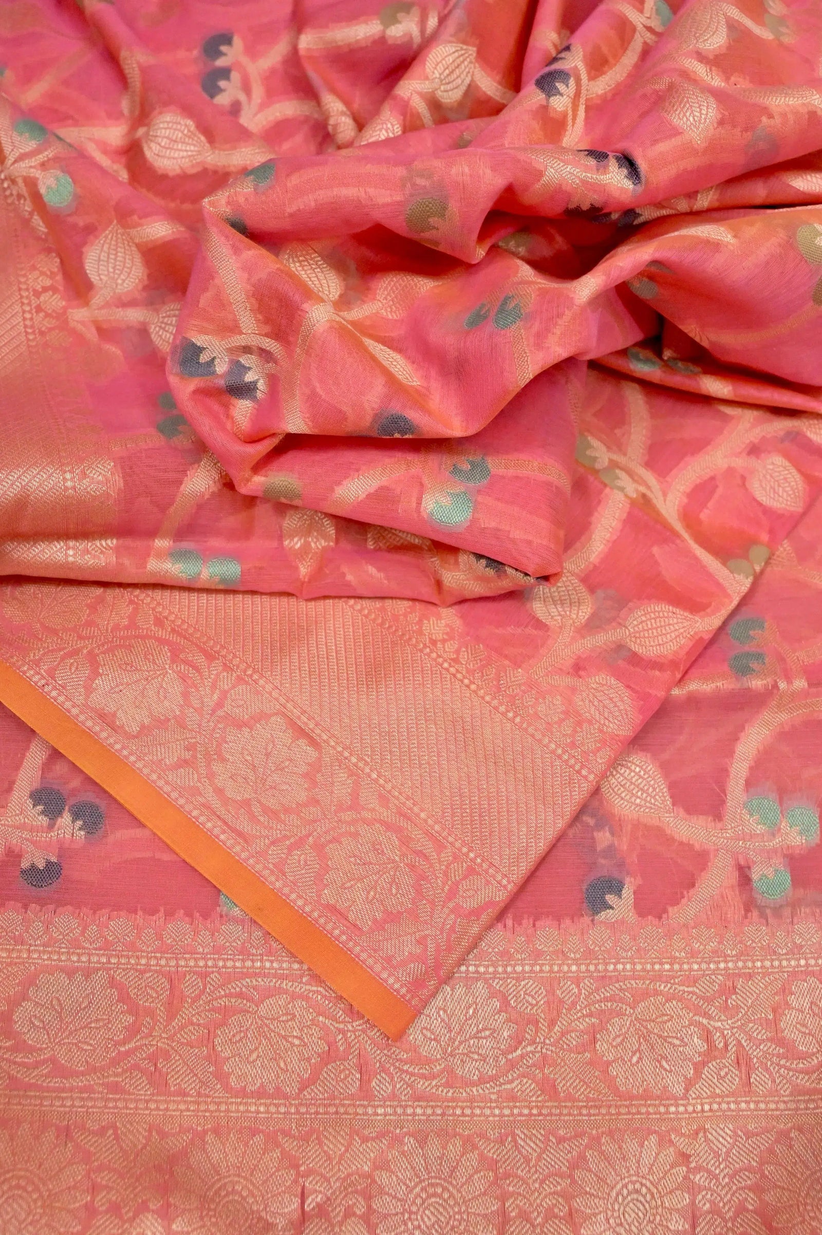 Blush Pink Color Cotton Chanderi Saree Allover Thread Weaving