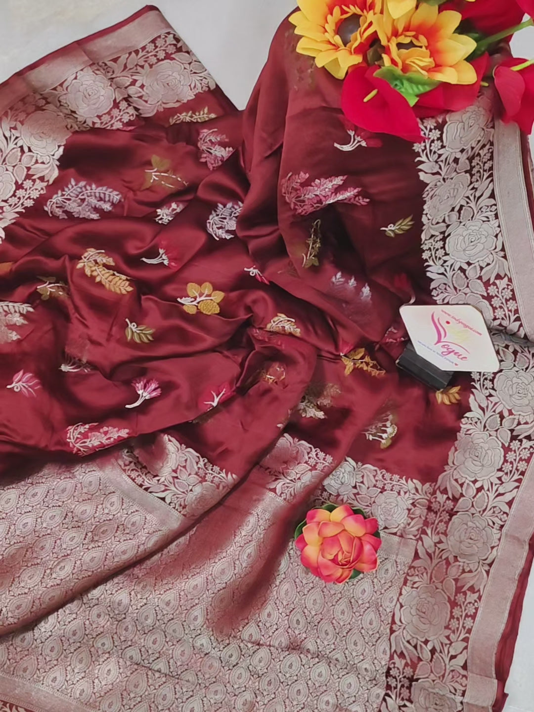 - Work: Hand Woven, Zari Work, Meenakari Work