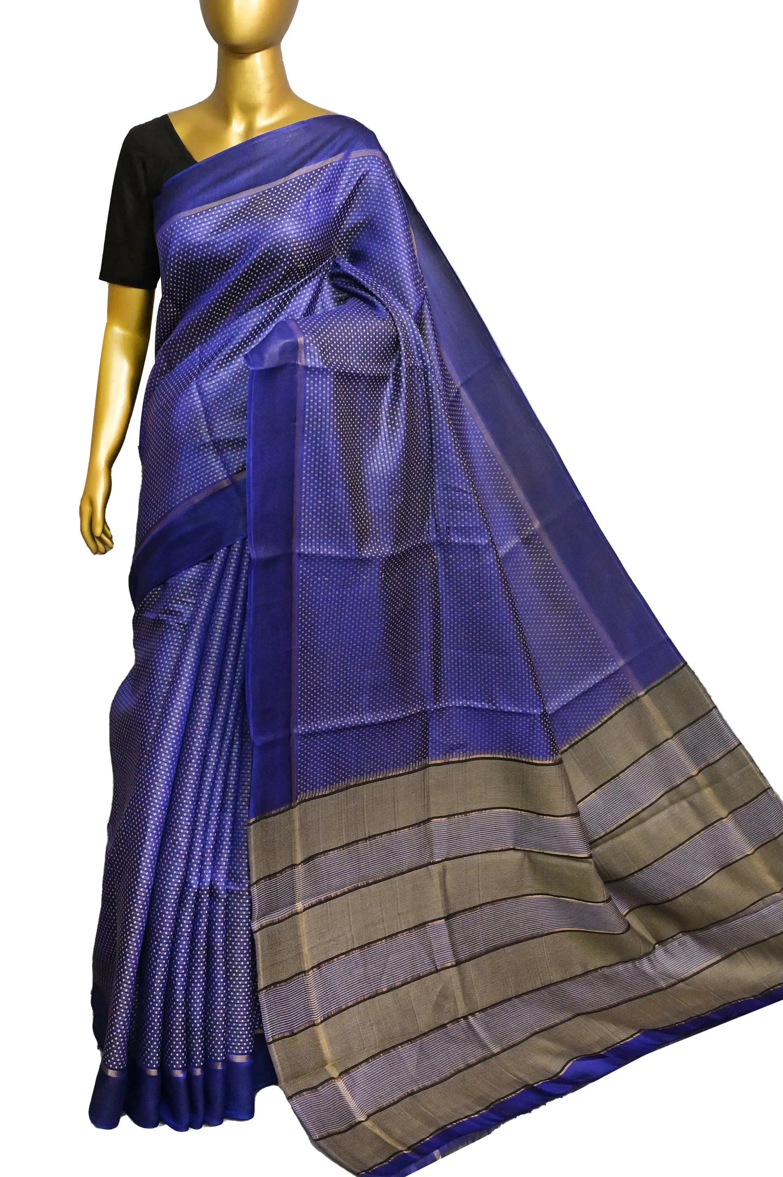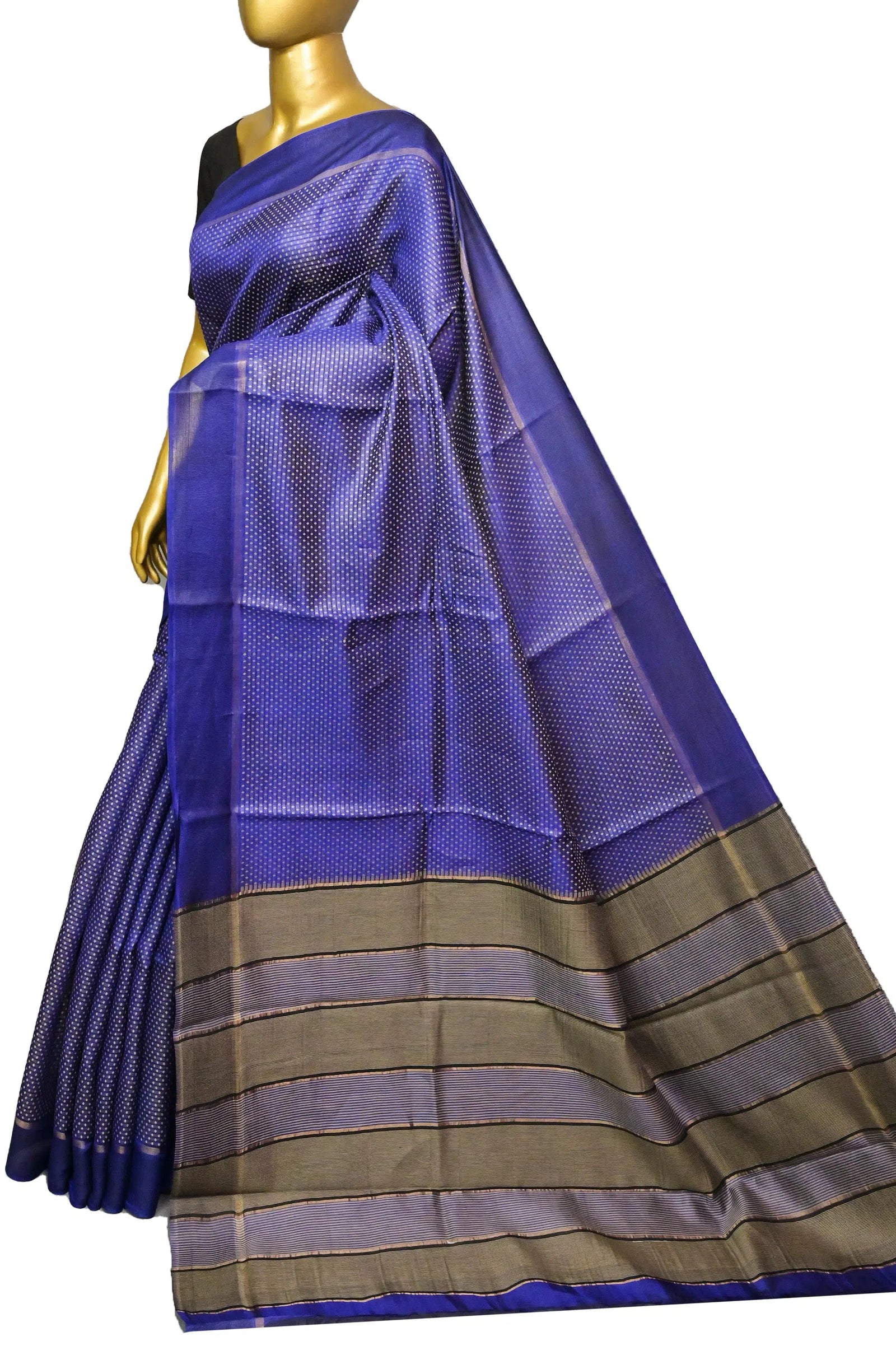 Dark Blue Color Pure Tussar Silk Saree with Allover Weaving