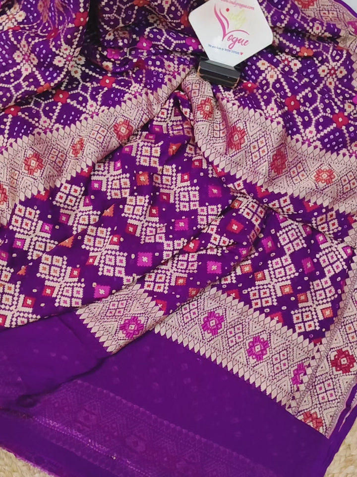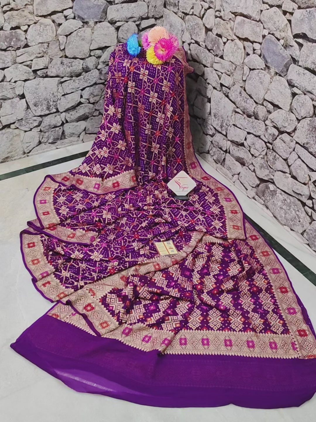 Dark Purple Color Pure Georgette Saree with Allover Meenakari Jaal Weaving and Rai Bandhani Work
