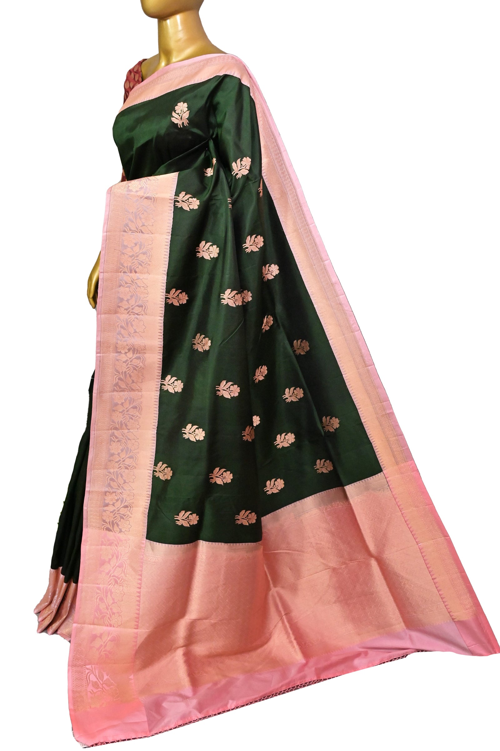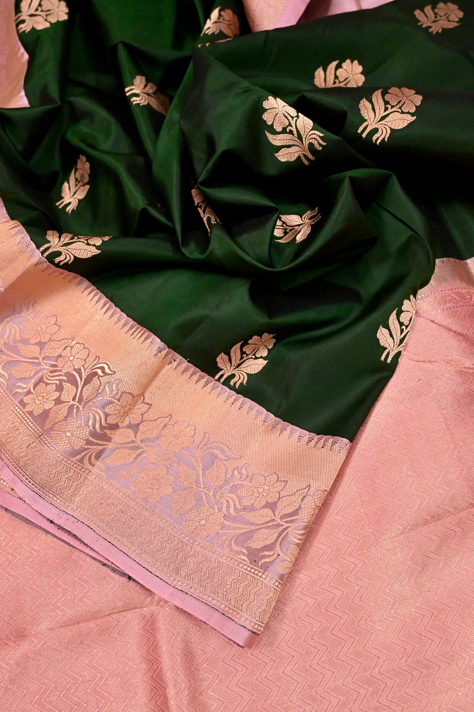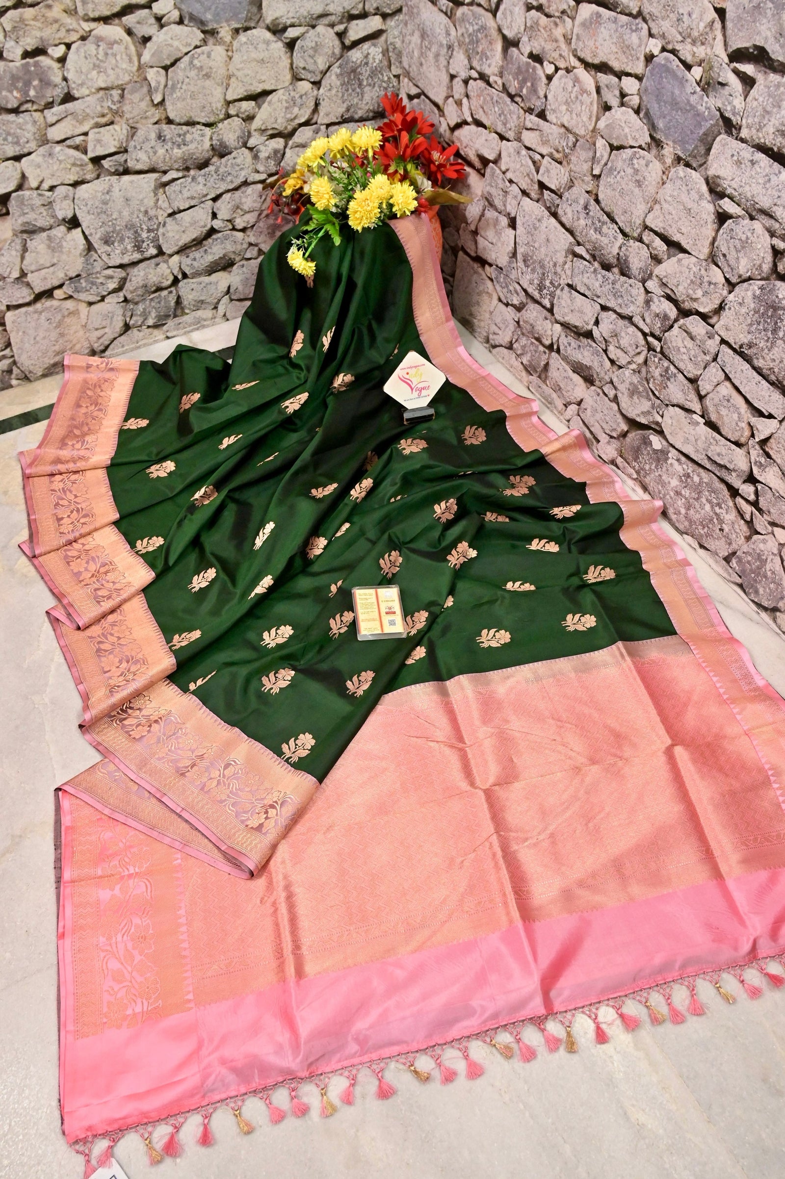 Deep Bottle Green Color Pure Banarasi with Buti Work