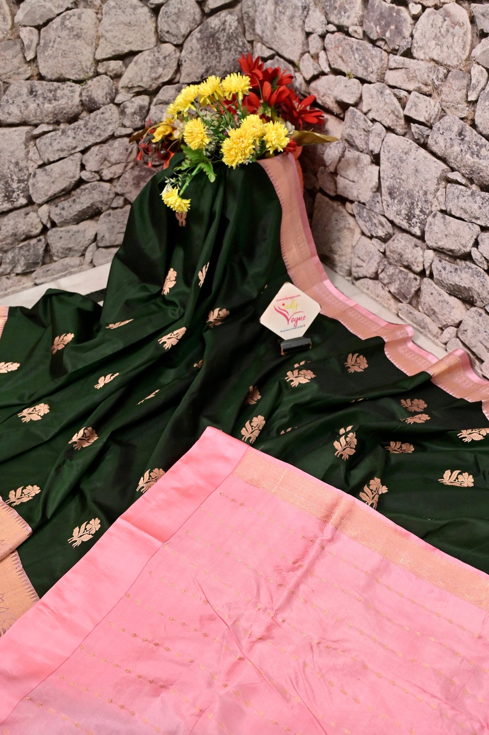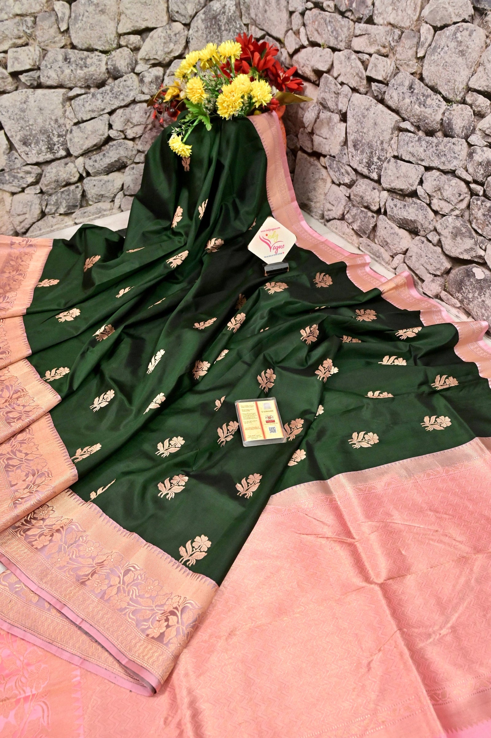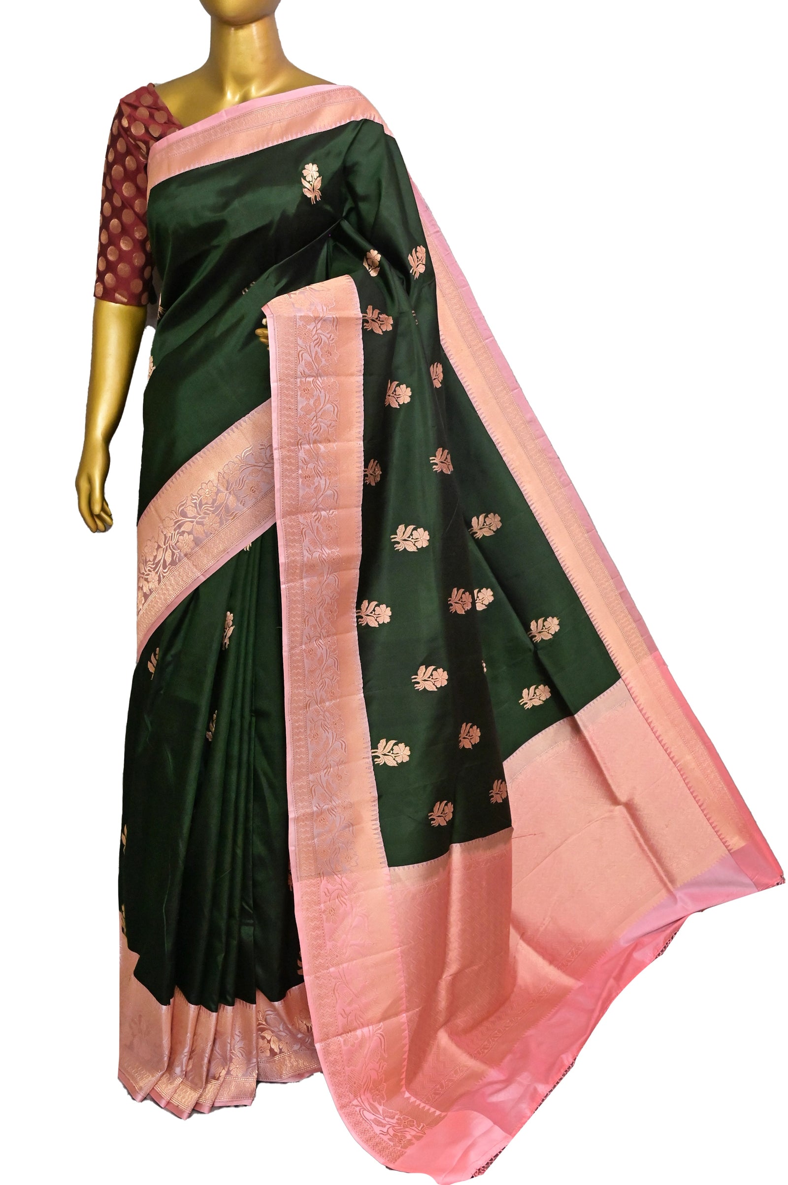 Deep Bottle Green Color Pure Banarasi with Buti Work
