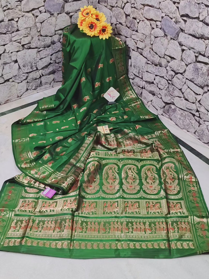 Deep Green Color Pure Swarnchari Silk Saree with Allover Golden Meenakari Buti Work