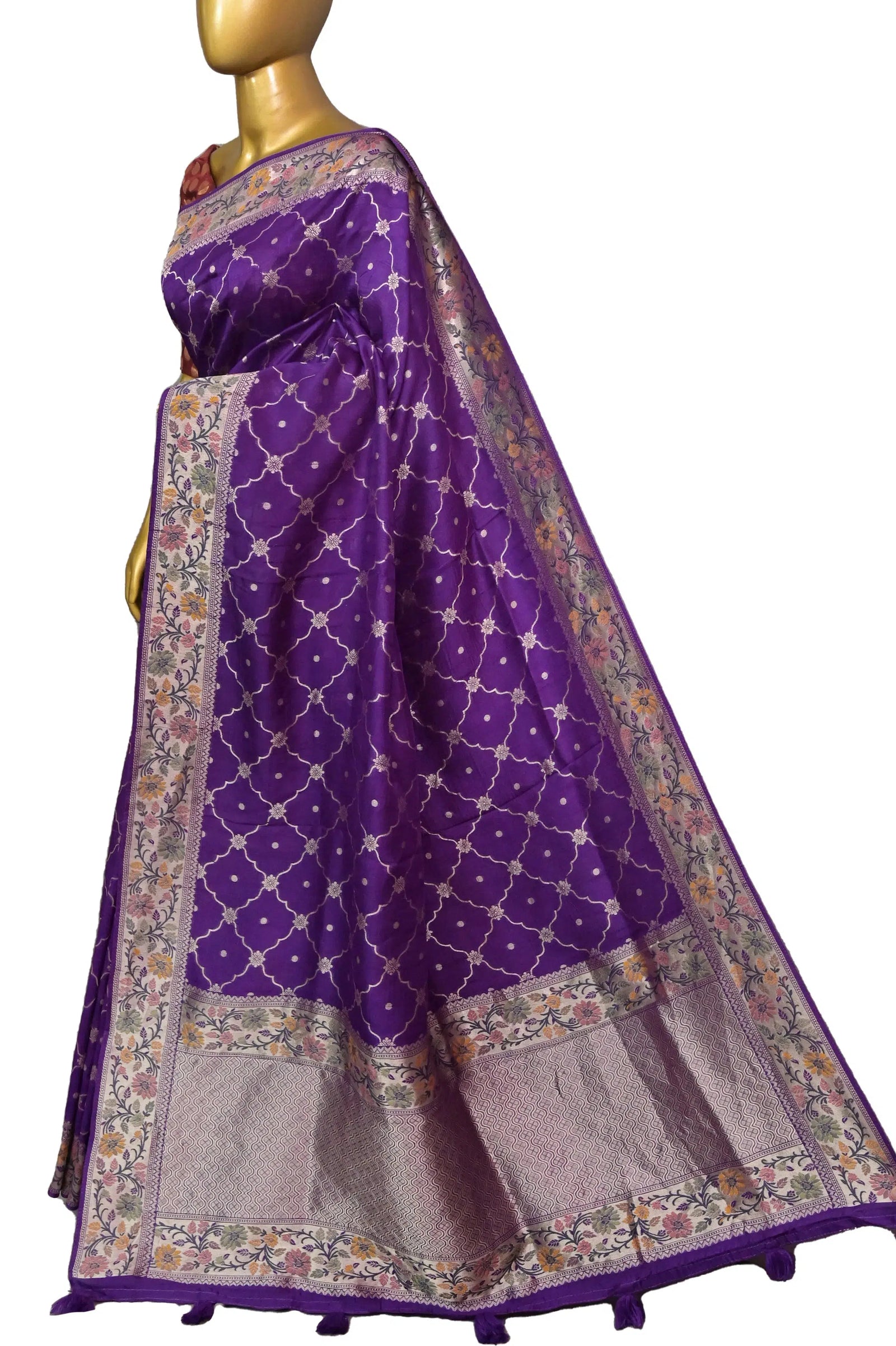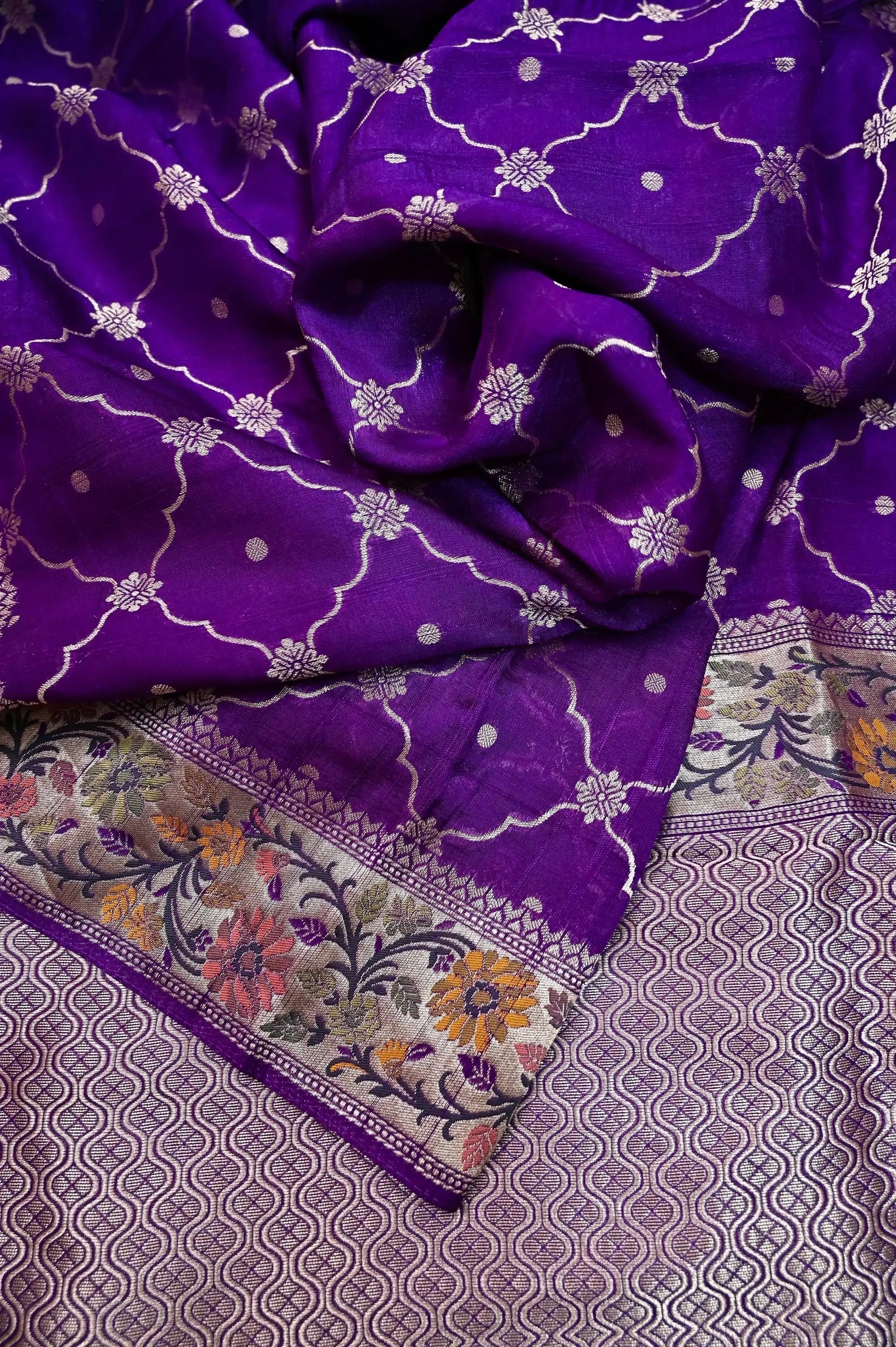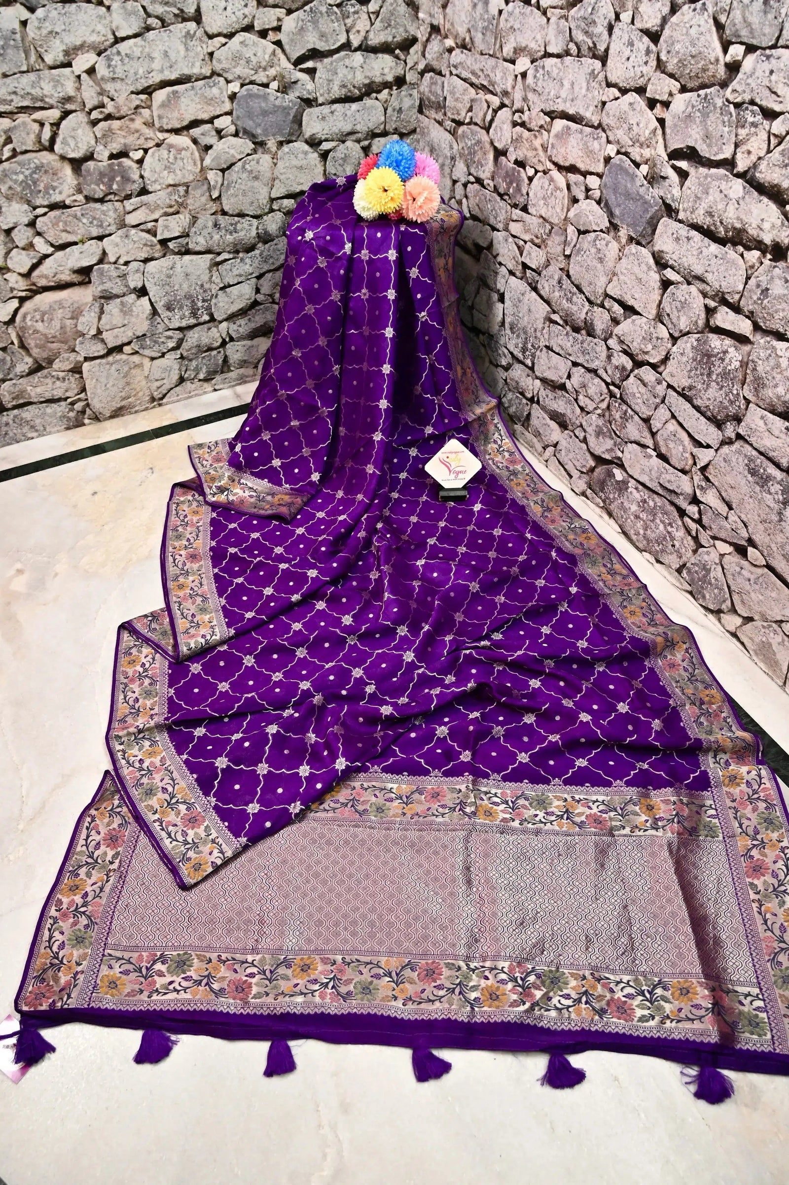 Deep Purple Color Tussar Georgette Saree with Allover Silver Meenakari with Paithani Border
