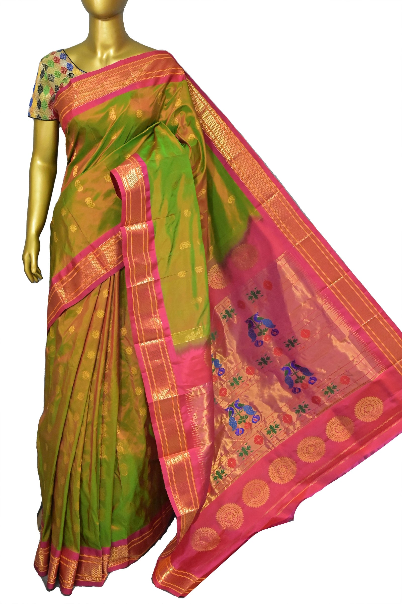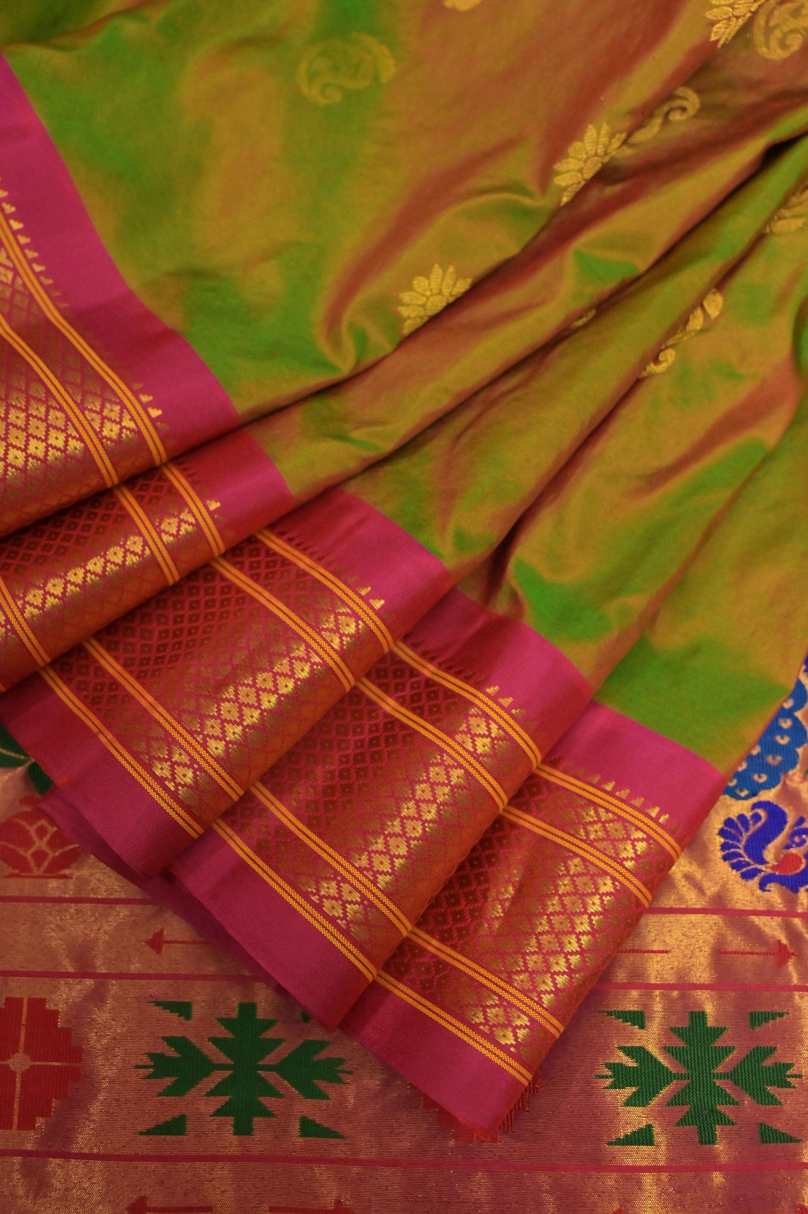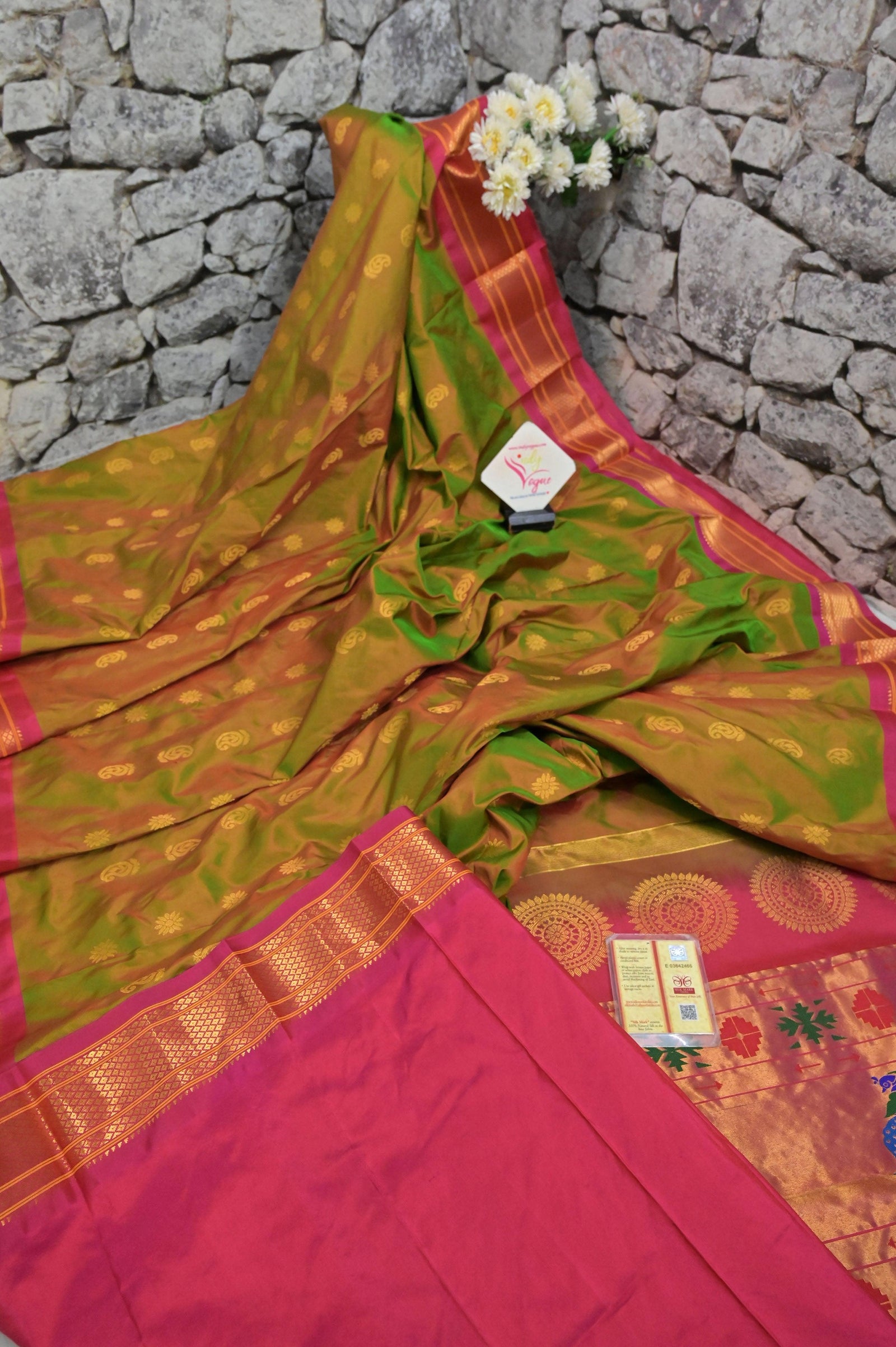 Dual Tone Green and Magenta Color Pure Maharani Paithani Silk Saree