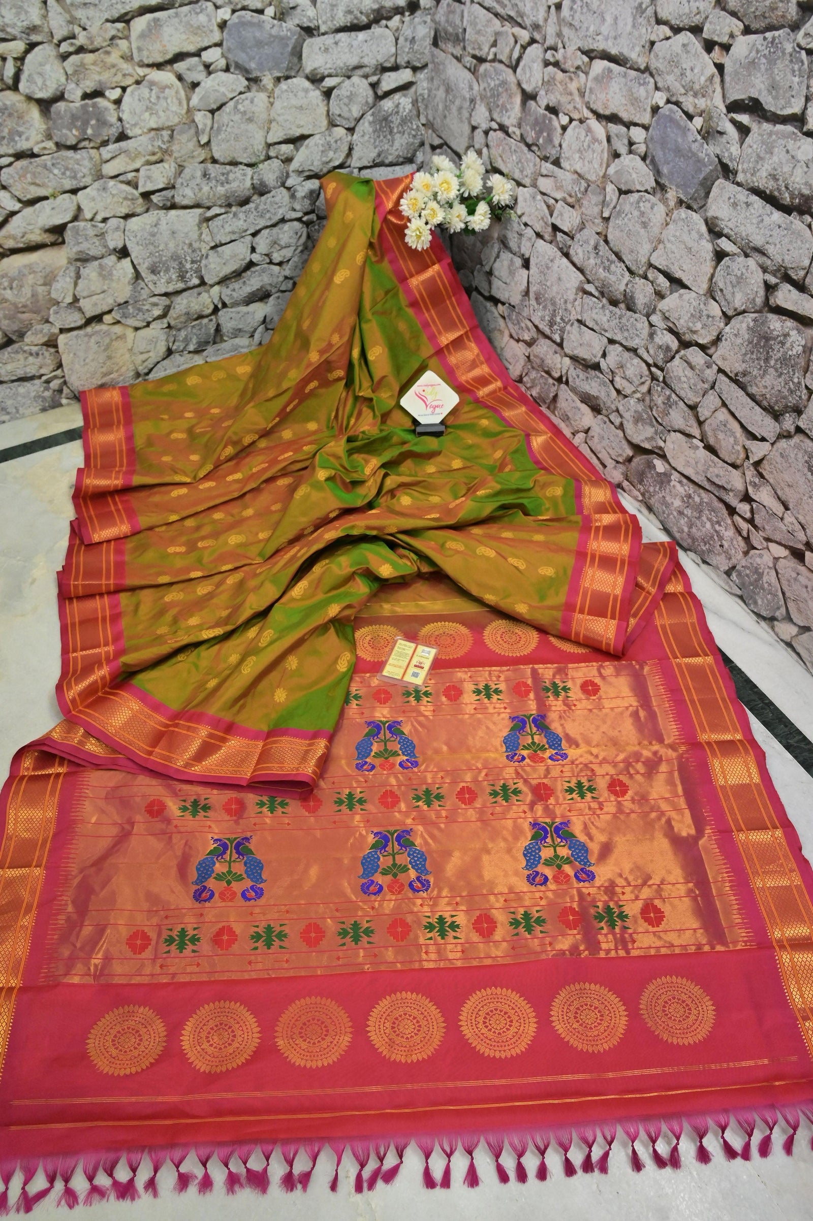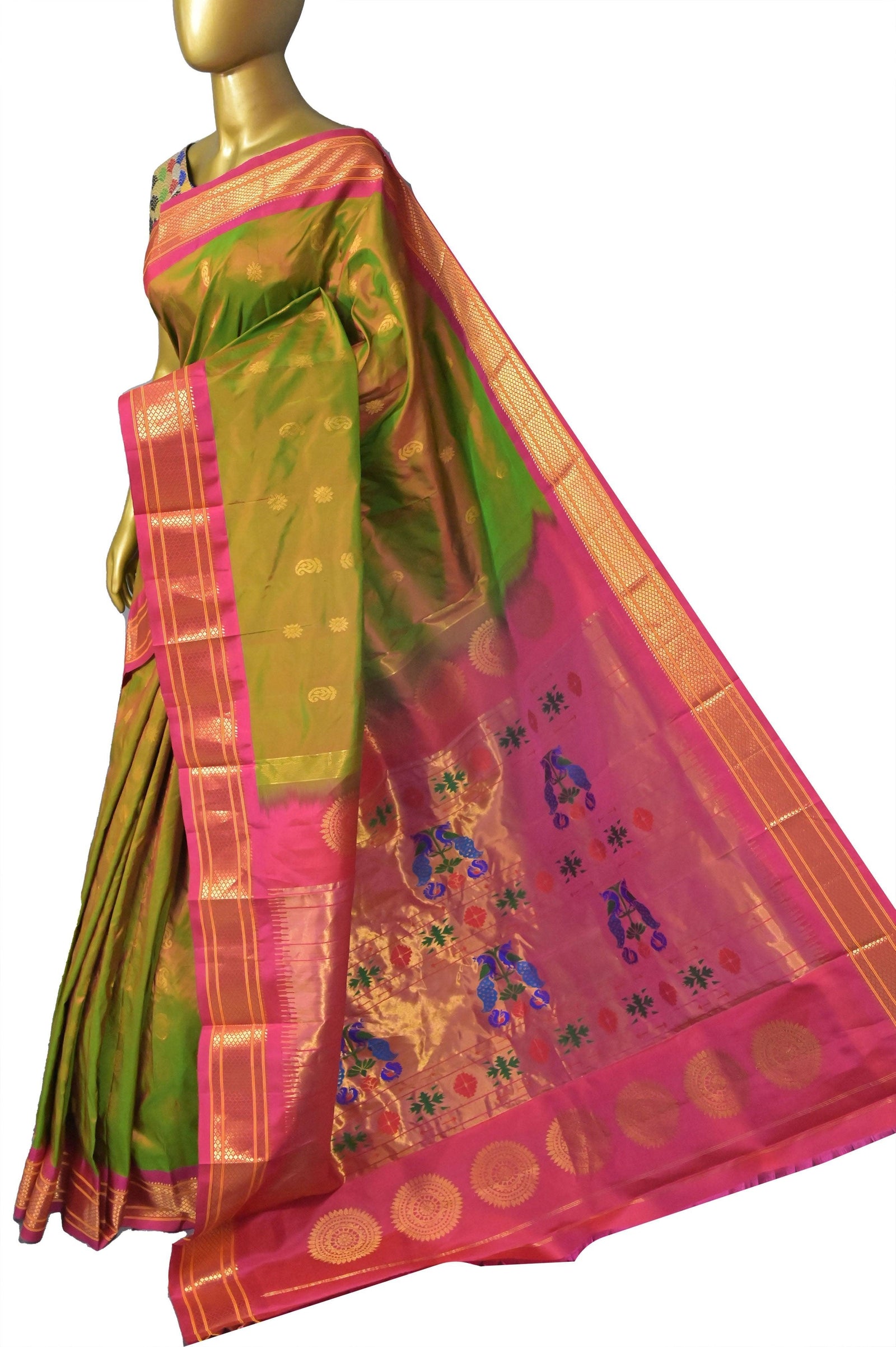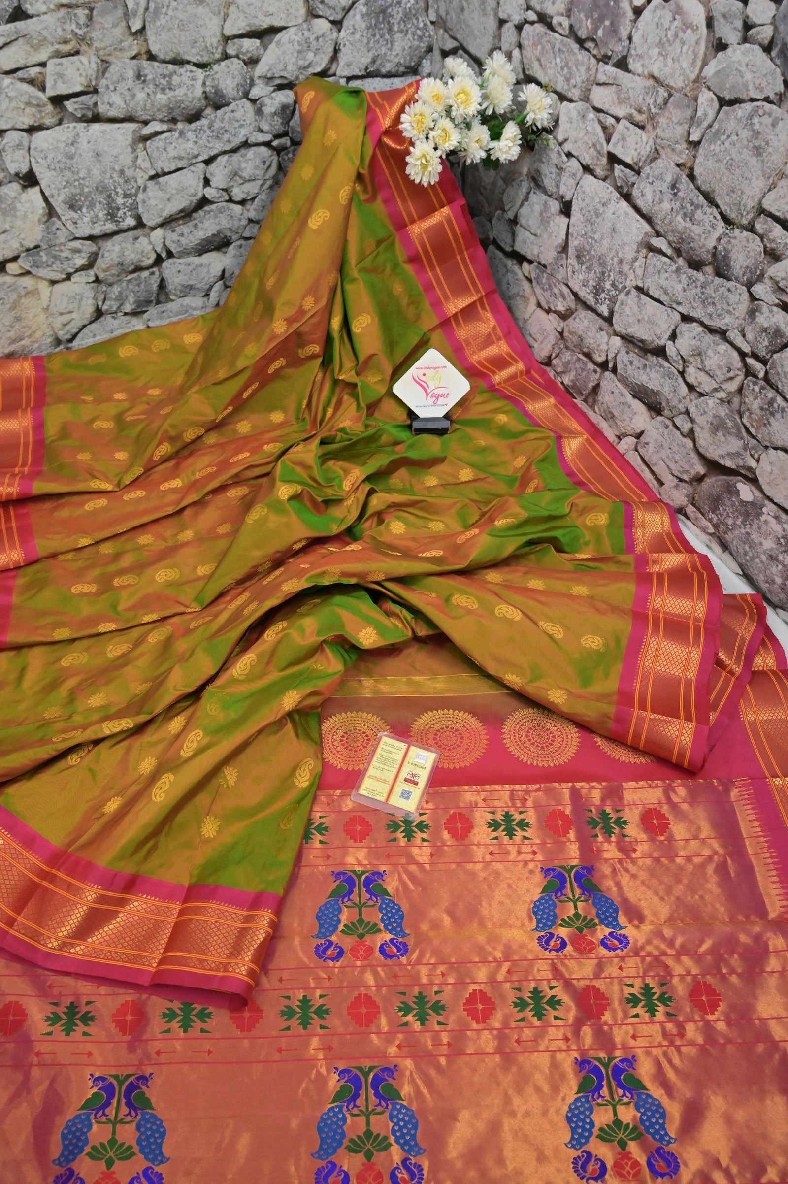 Dual Tone Green and Magenta Color Pure Maharani Paithani Silk Saree