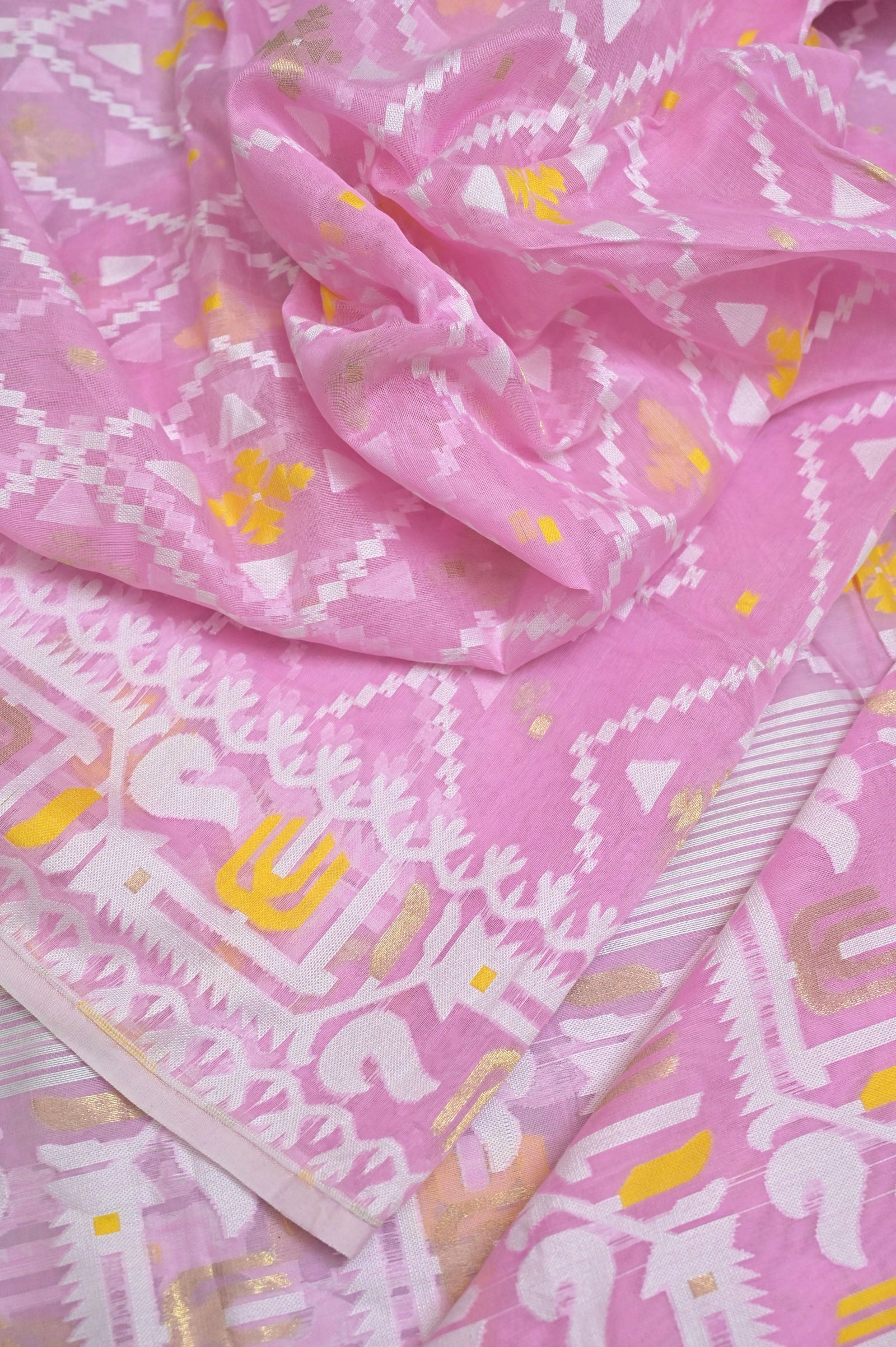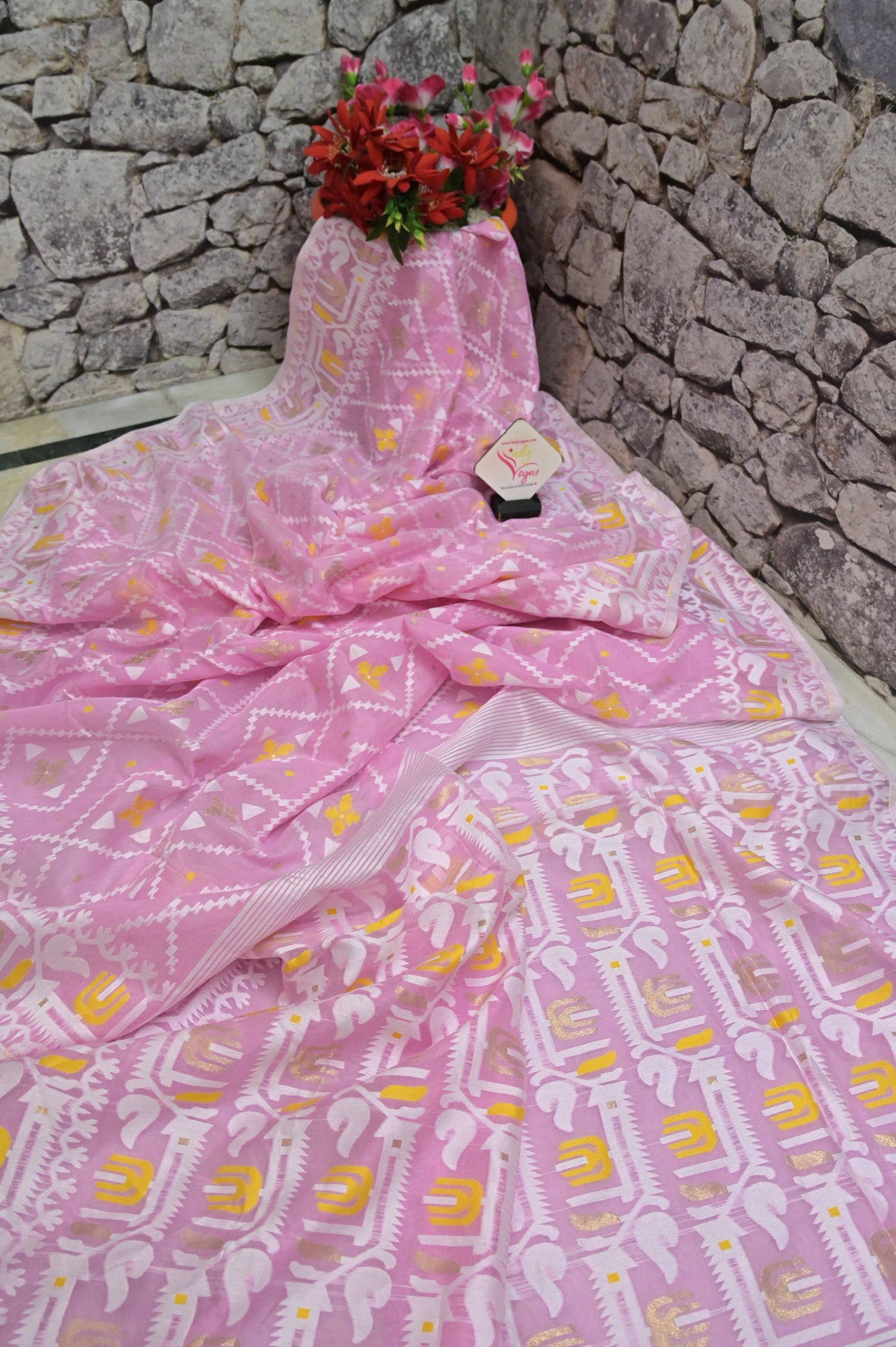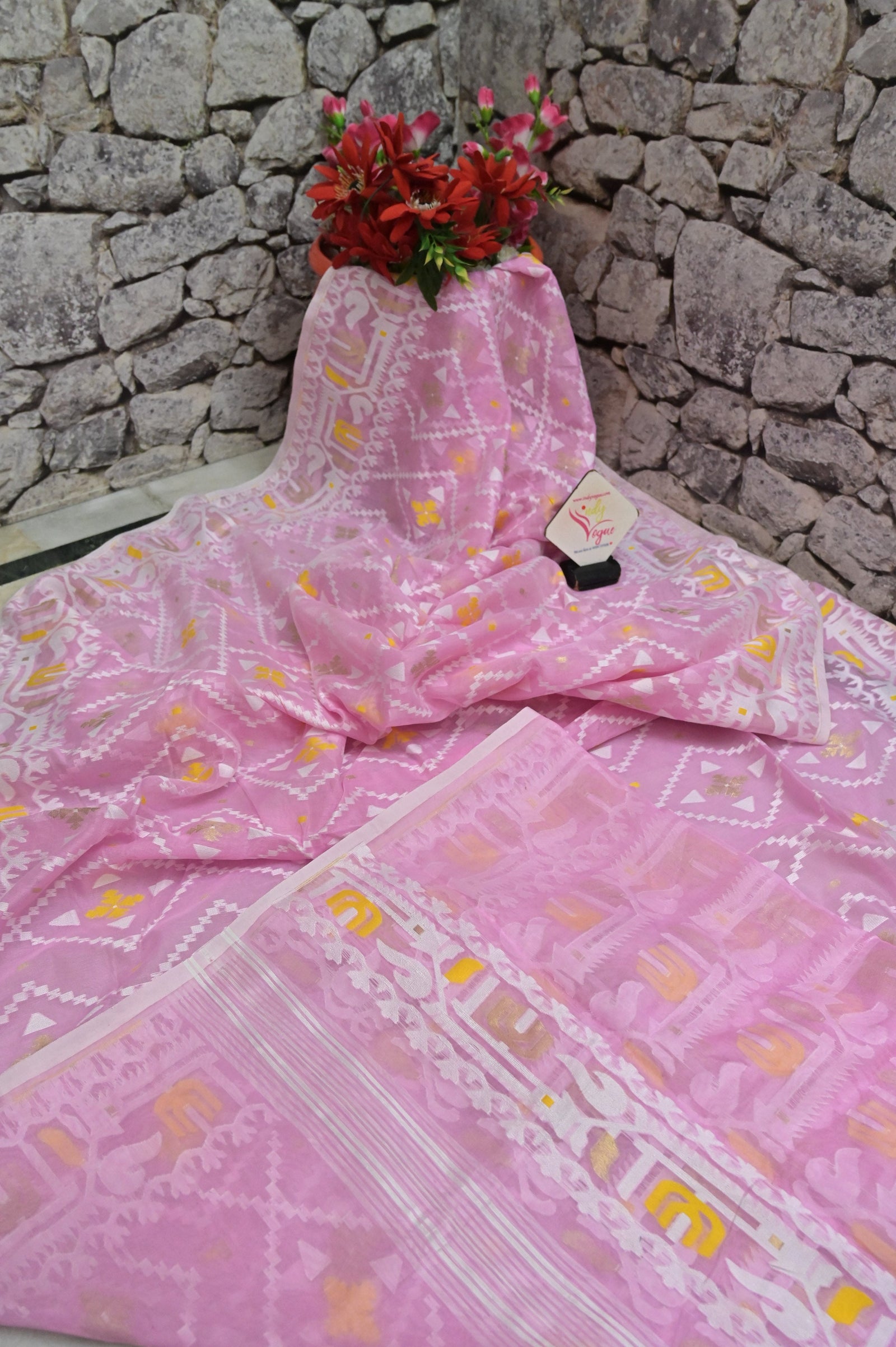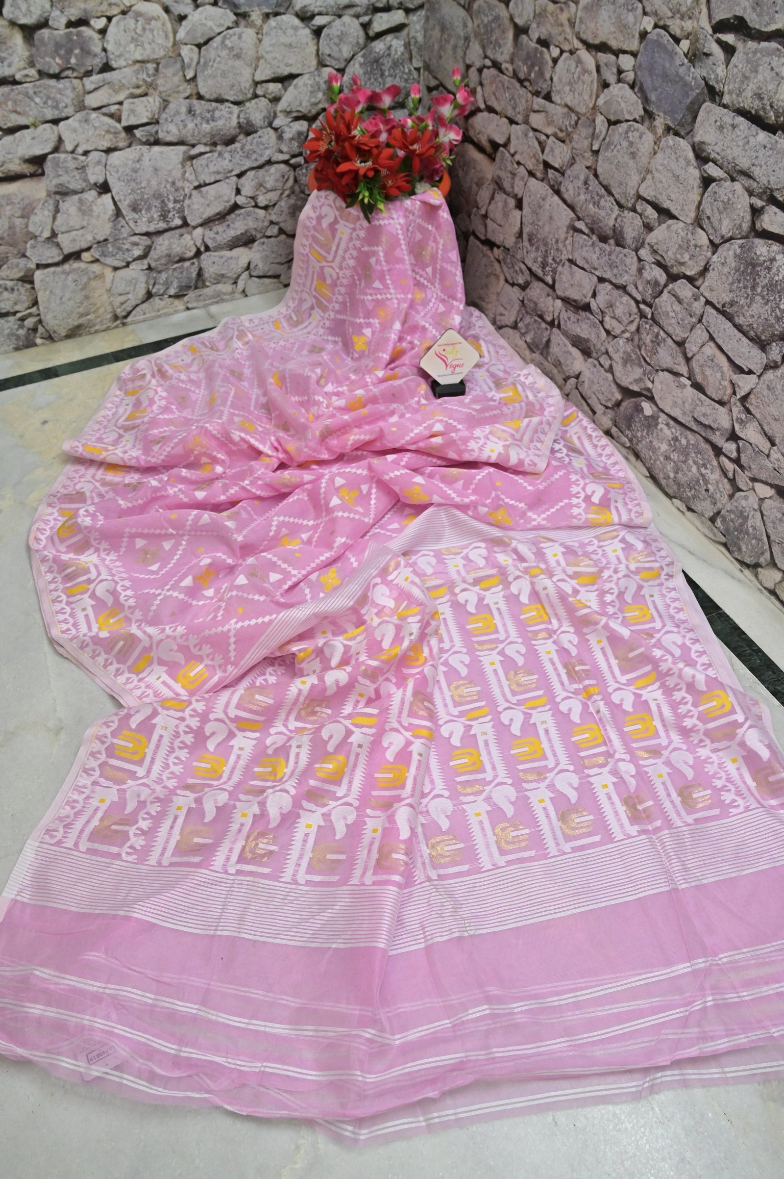 - Technique: Comes with allover jamdani self-weaving done on the whole saree