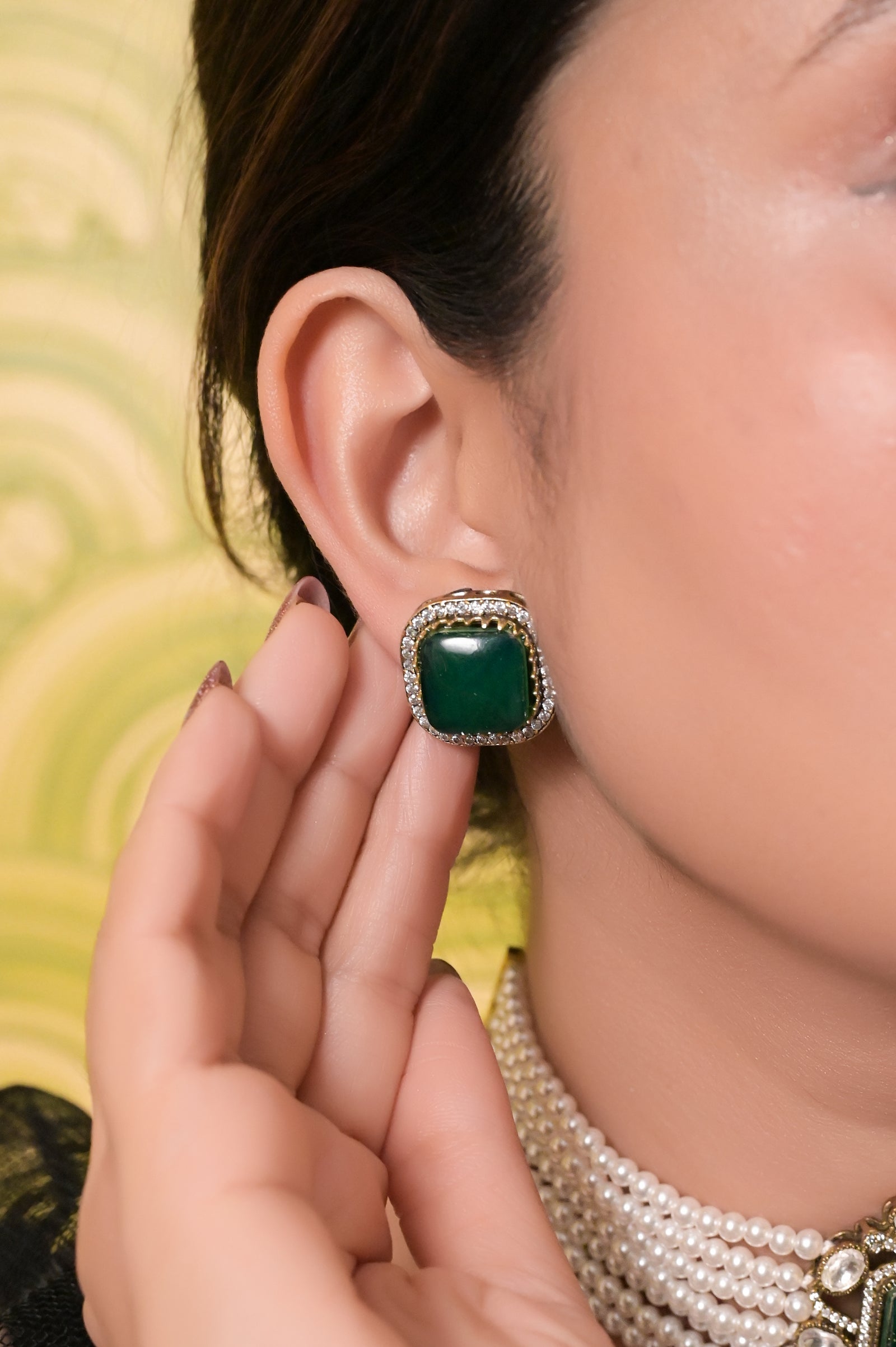Radiant Green Monalisa stone takes center stage, encircled by sparkling AD stonework, creating a pendant of timeless elegance. Paired with a delicate pearl string choker, this set exudes sophistication and charm. Perfect for festive occasions or weddings, it effortlessly blends traditional craftsmanship with modern grace, making every ensemble shine. The penny is kept aside to make you understand the actual size of the necklace.