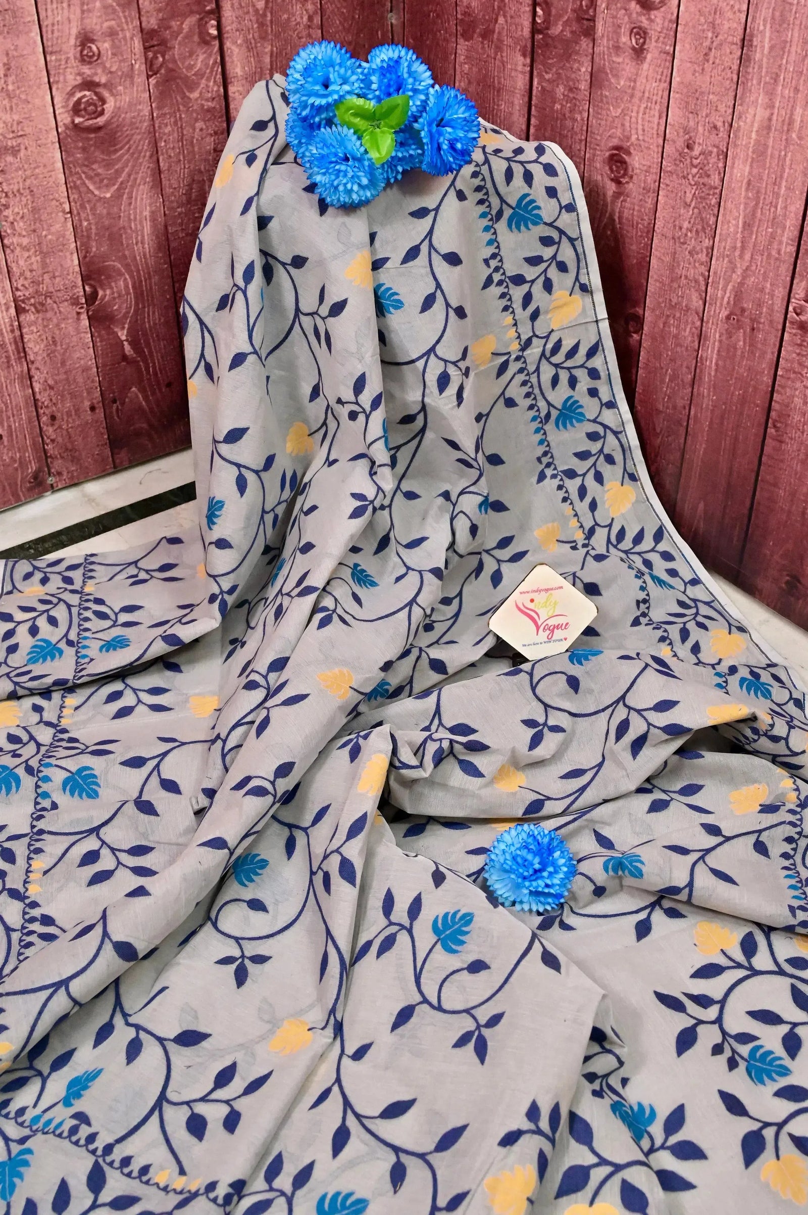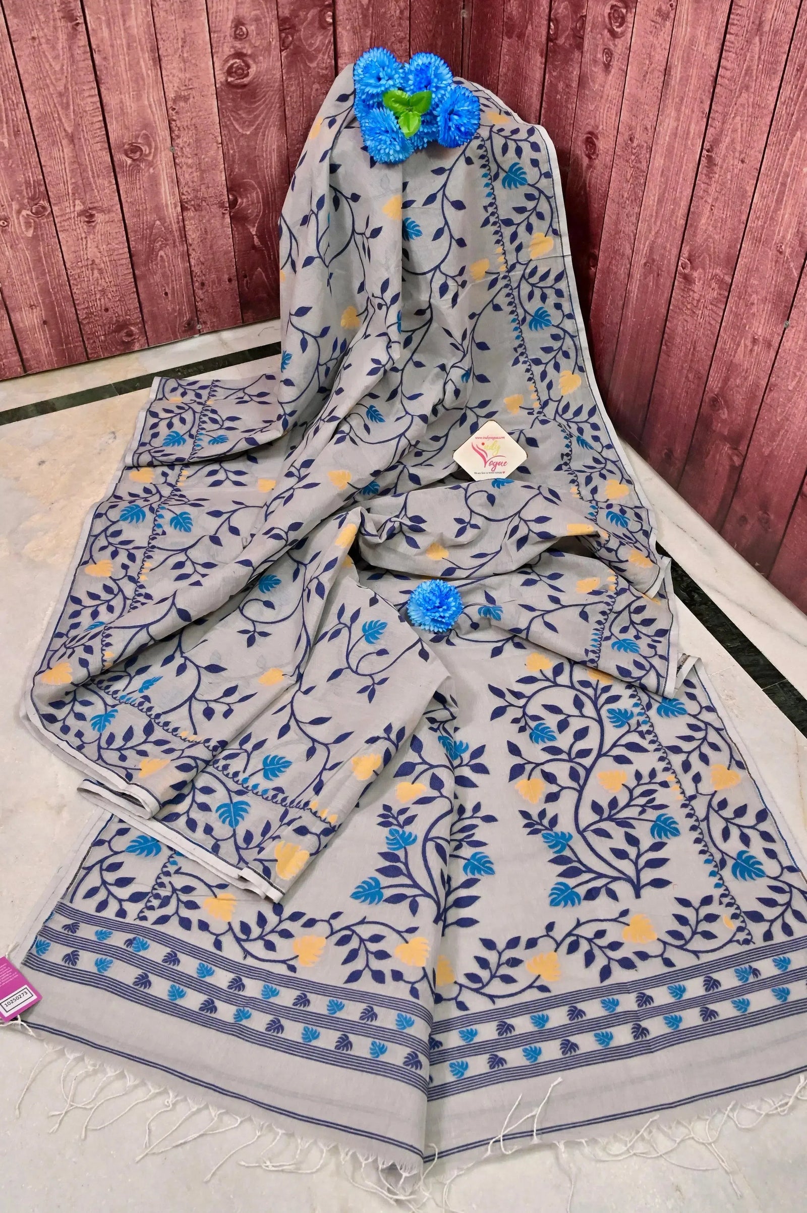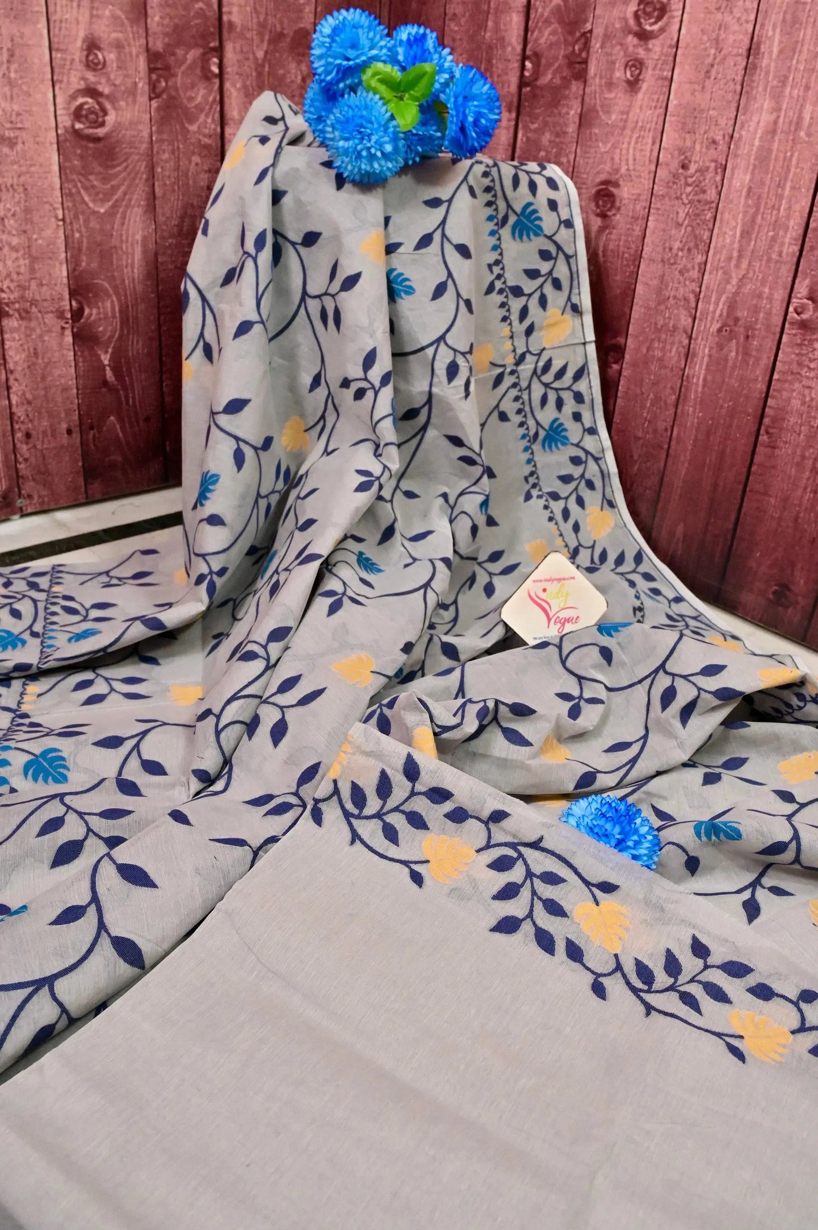 Elevate your style with our light grey jamdani saree. This saree is crafted from pure cotton and boasts a stunning all-over floral weaving for a trendy and comfortable feel. Perfect for festivals and everyday occasions, it adds a touch of elegance to any gathering.