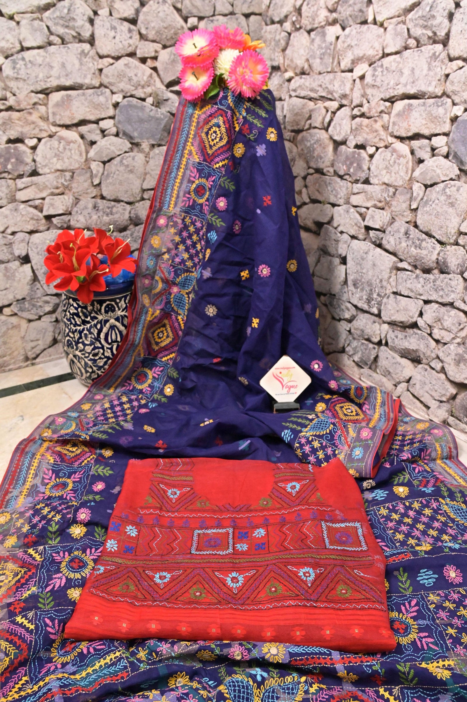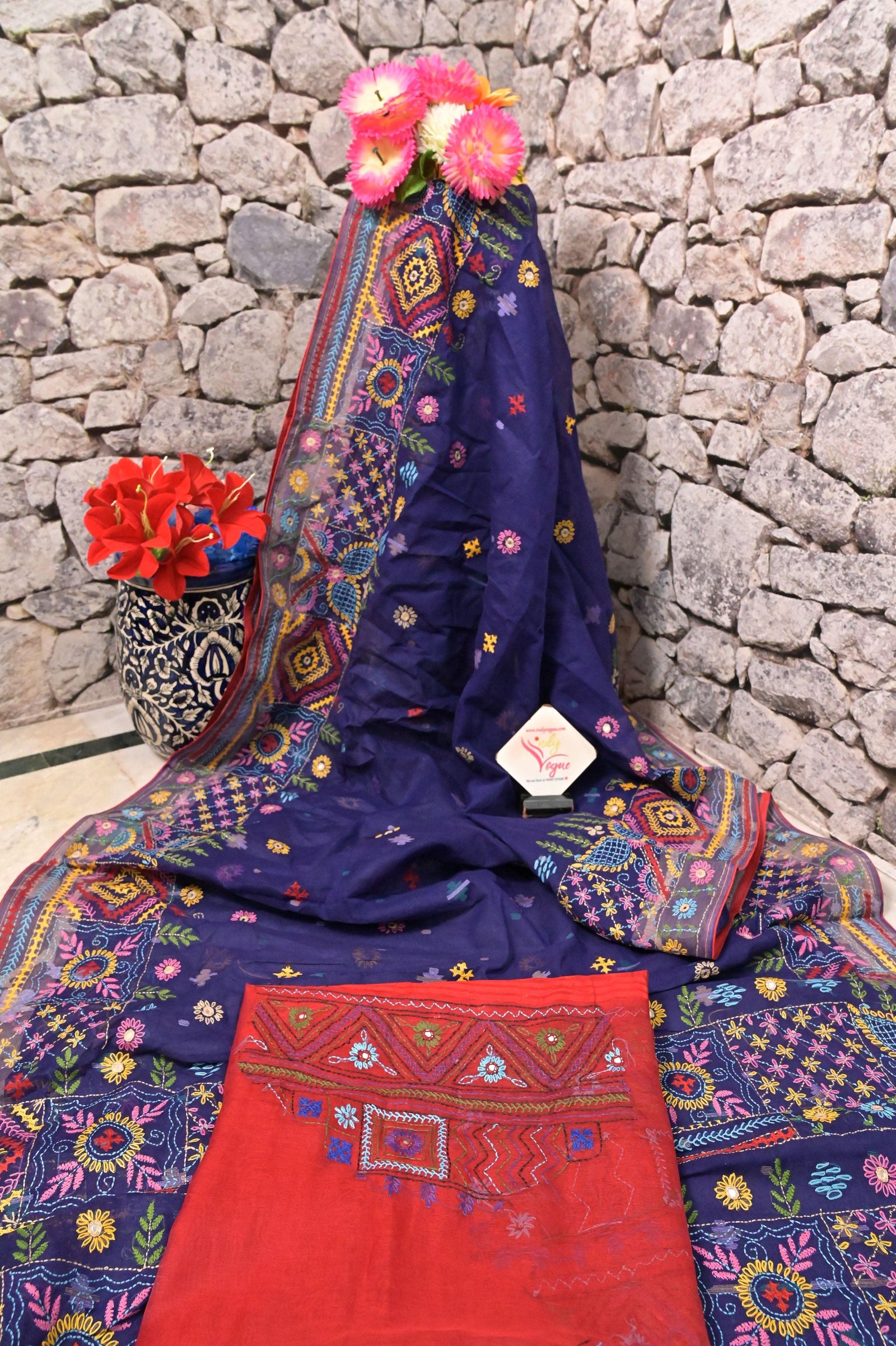 - Blend traditional craftsmanship with modern aesthetics and hand-done lambani embroidery work with Gujarati mirror embroidery, along with