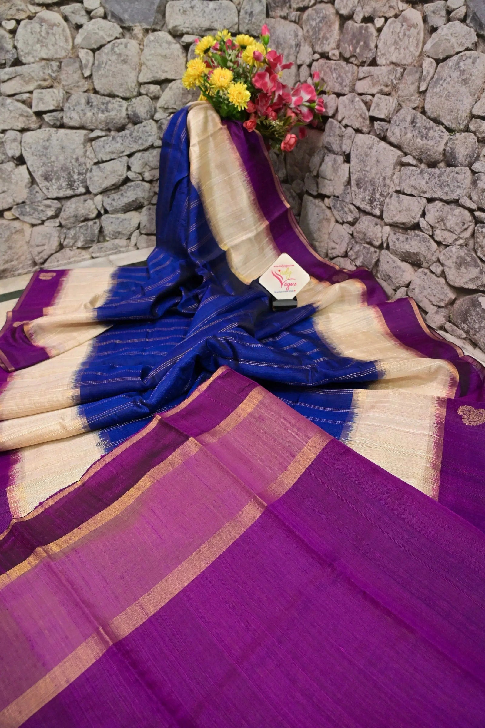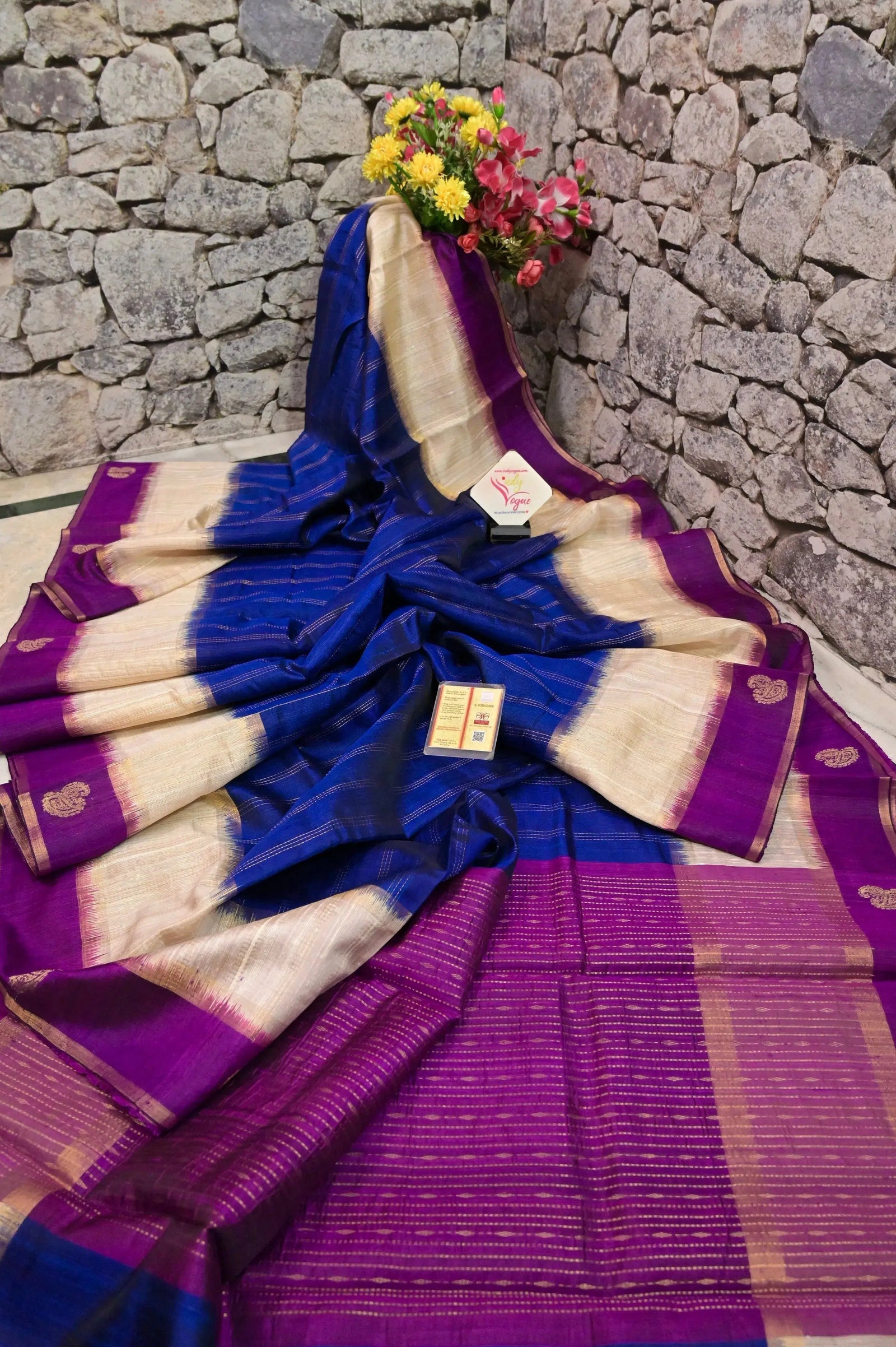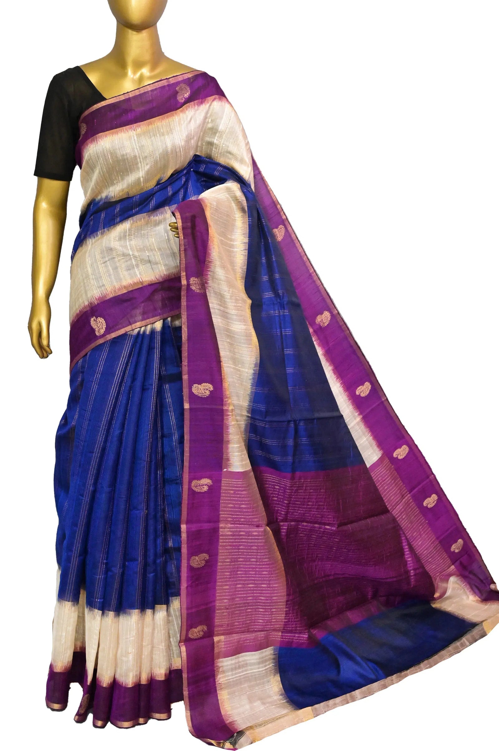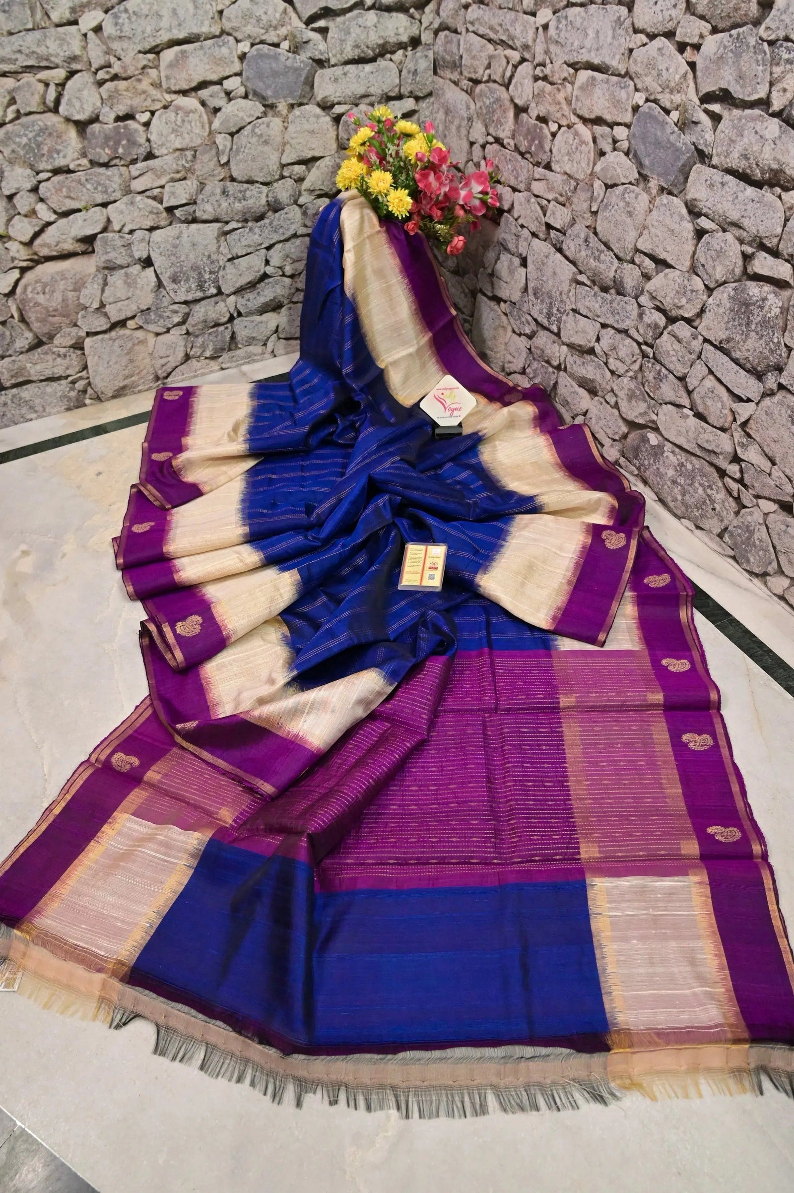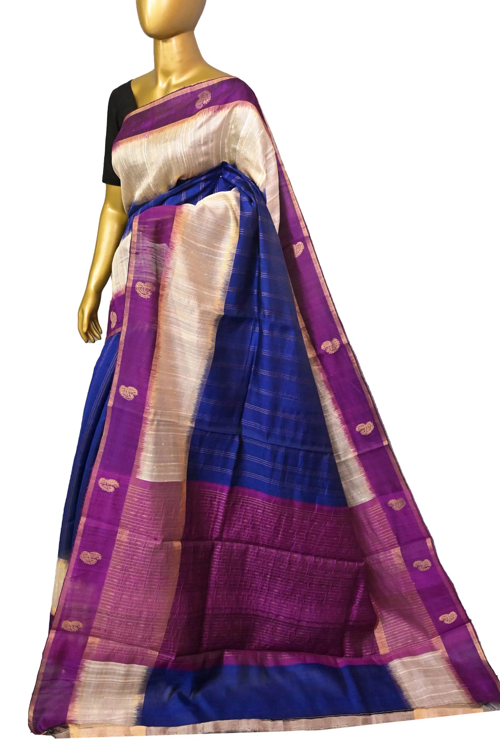 - Technique: A pure and refined hand-done work of weaving with stripe work done in zari