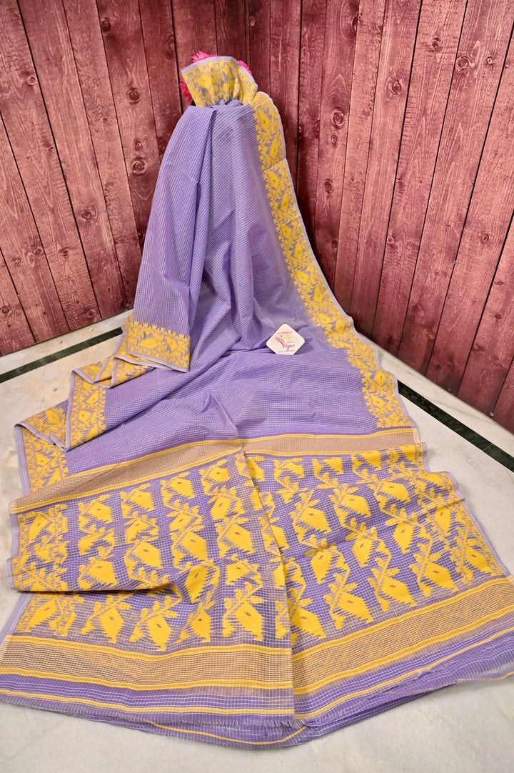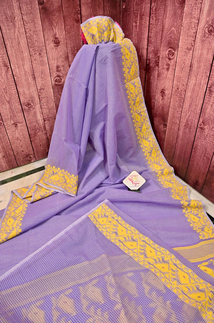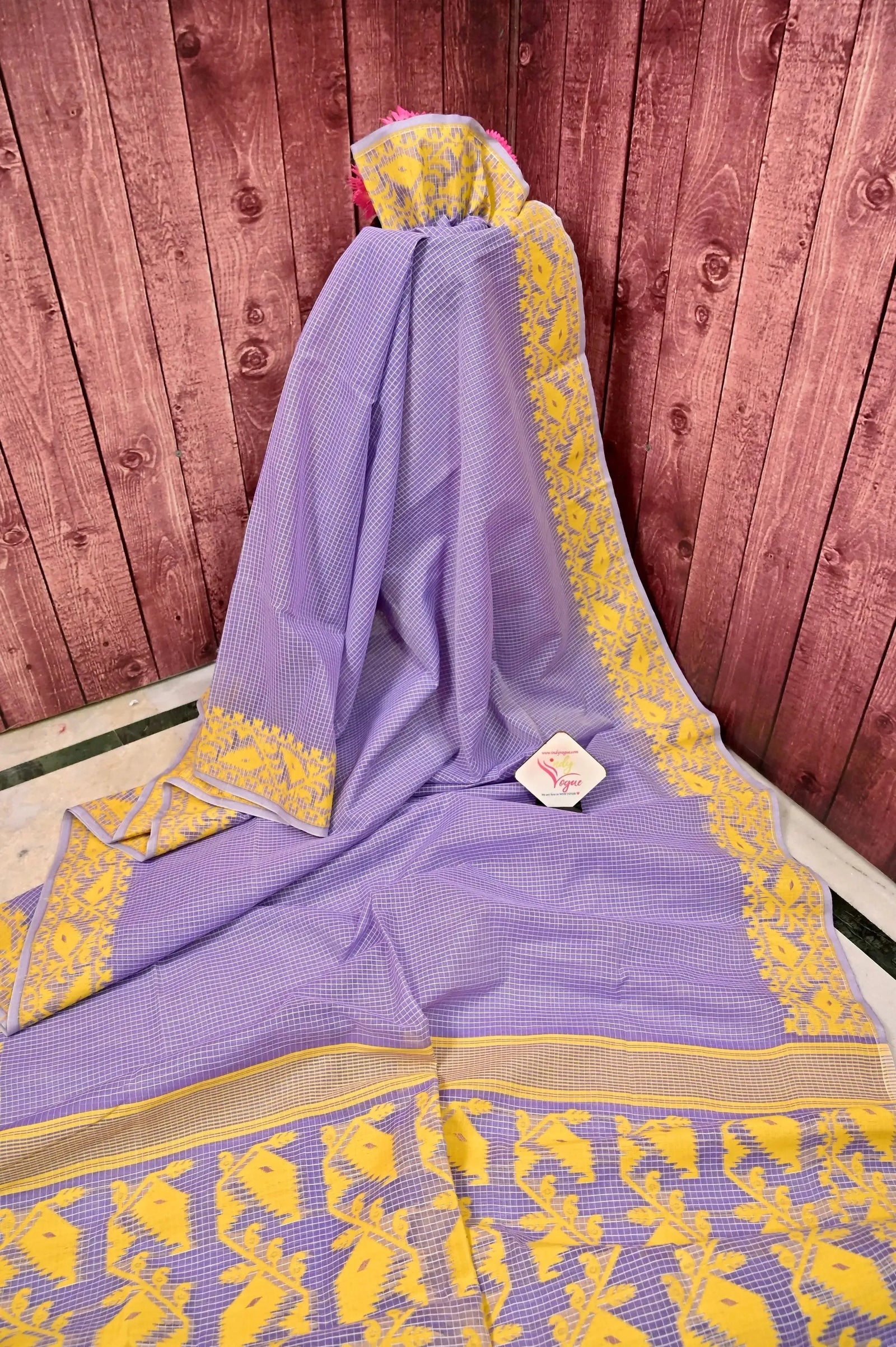 Jamdani Saree in Lavender Color with Allover Checks and Jamdani Weaving Pallu and Border