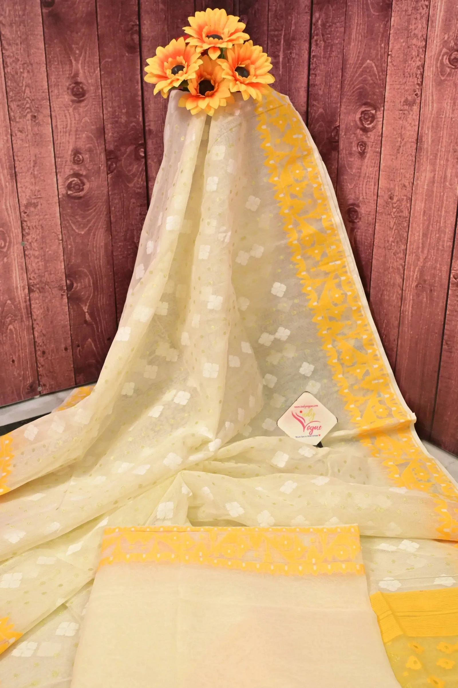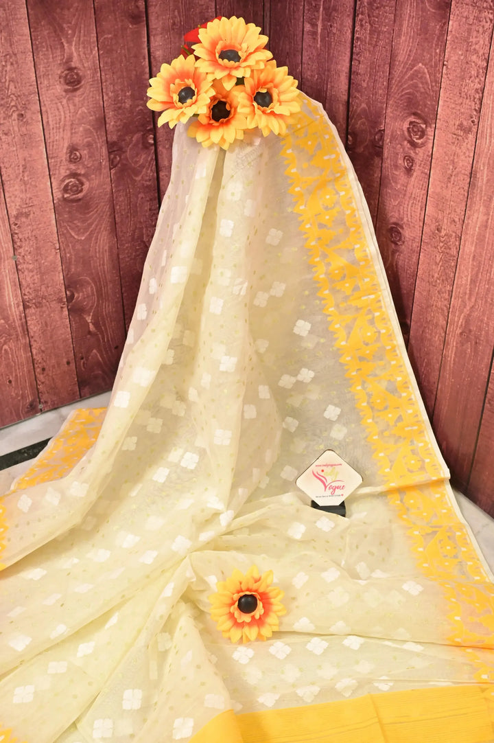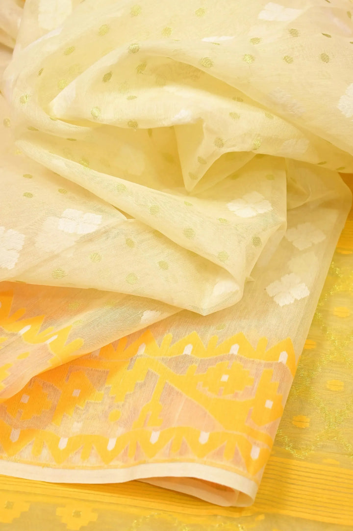 Jamdani Saree in Offwhite Color with Jamdani Weaving Work and Zari Buttas