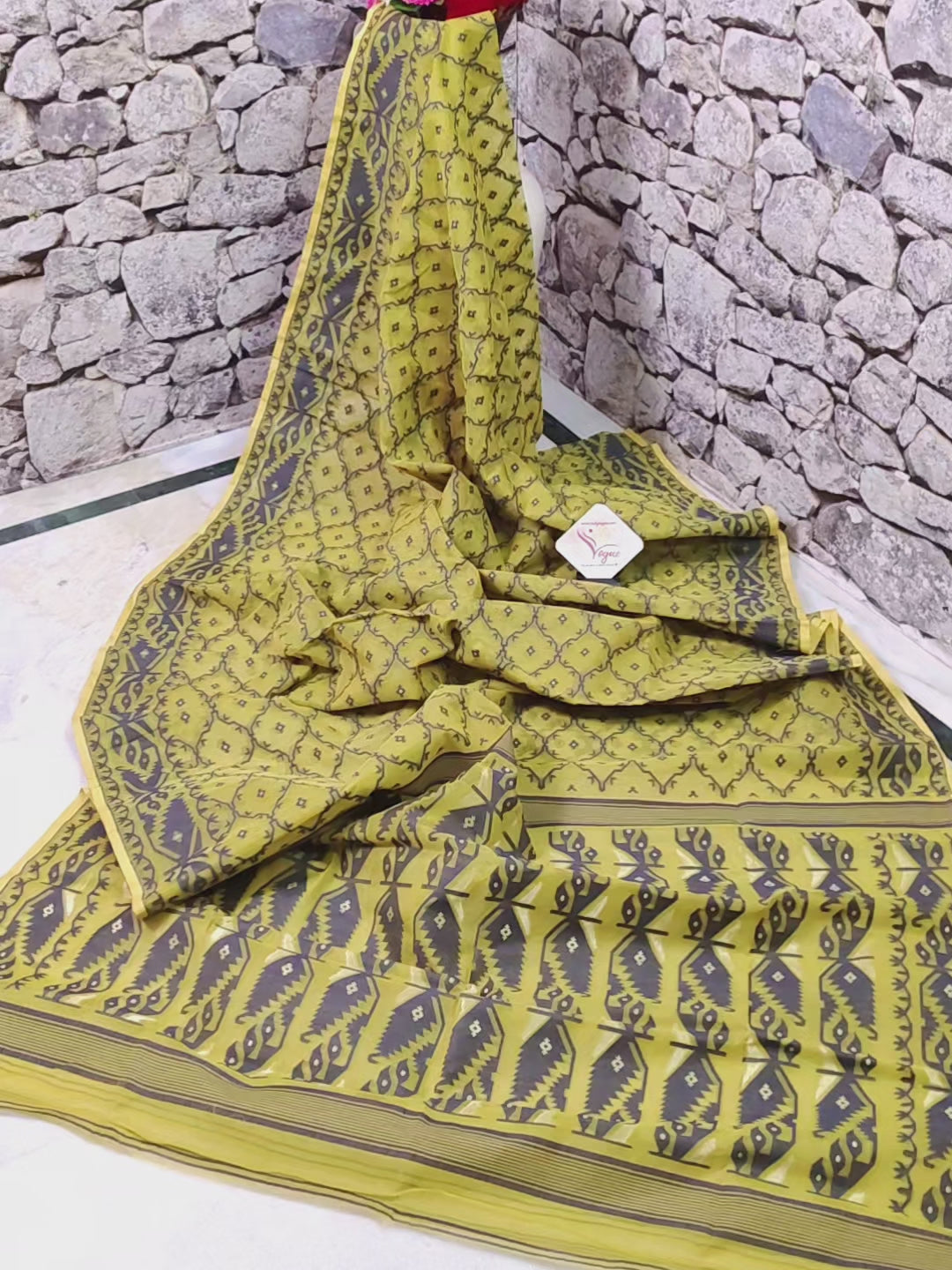 Our Old Yellow Jamdani Saree is what happens when tradition decides to have a little fun. Draped in a warm, nostalgic yellow, this beauty is brought to life with all-over Jamdani weaving — not just on the body, but also on the pallu and borders, making it a work of wearable art.