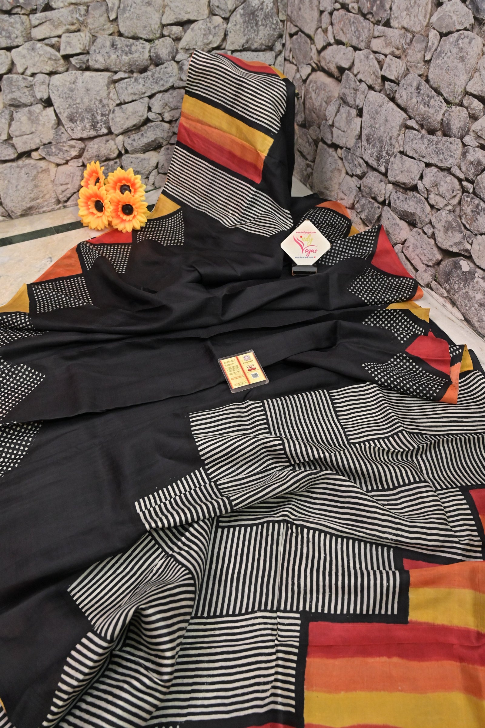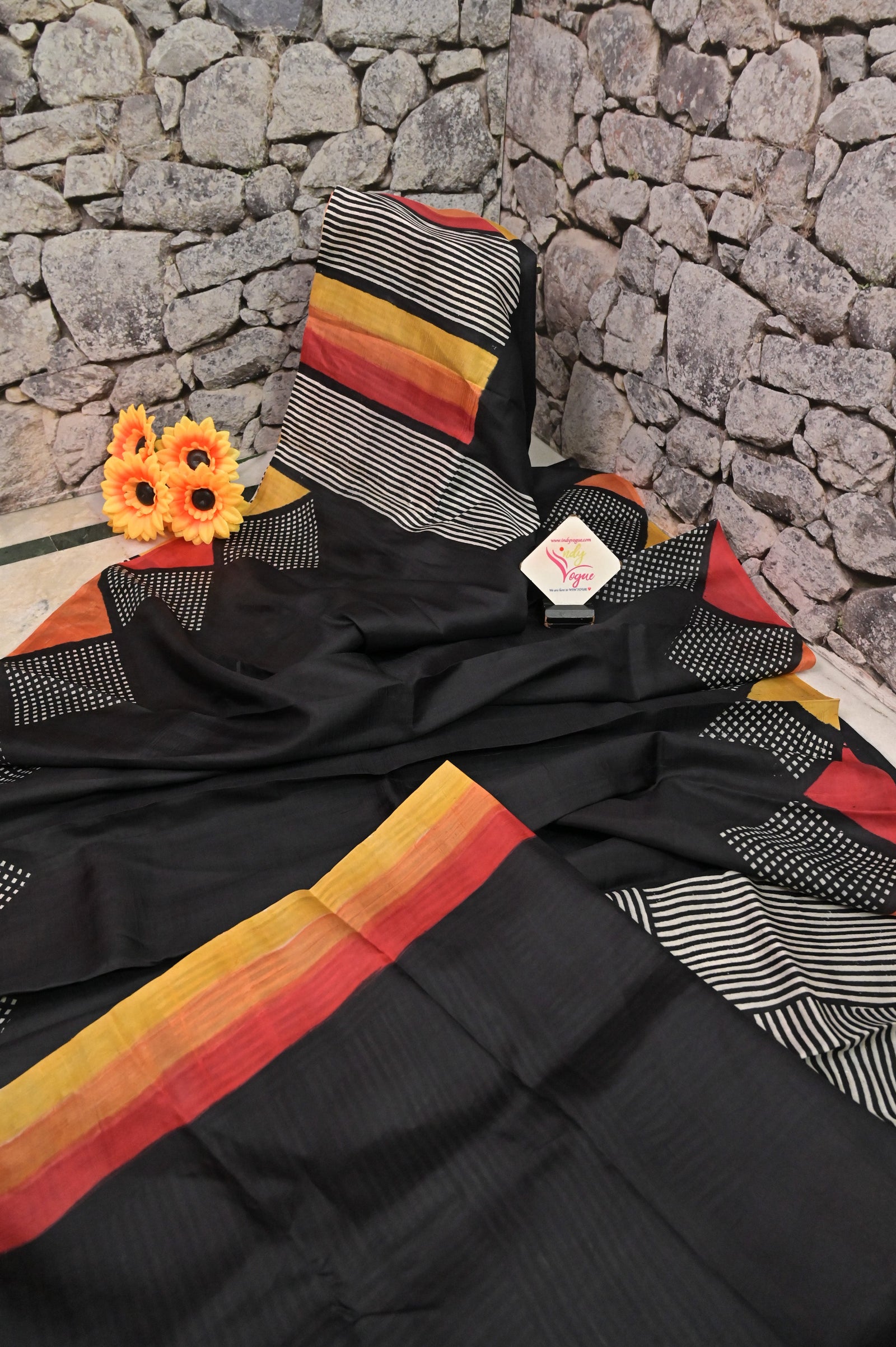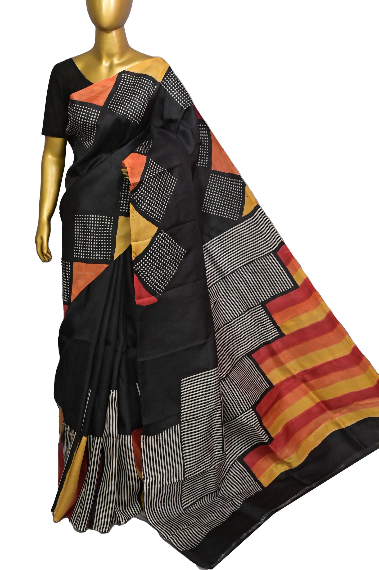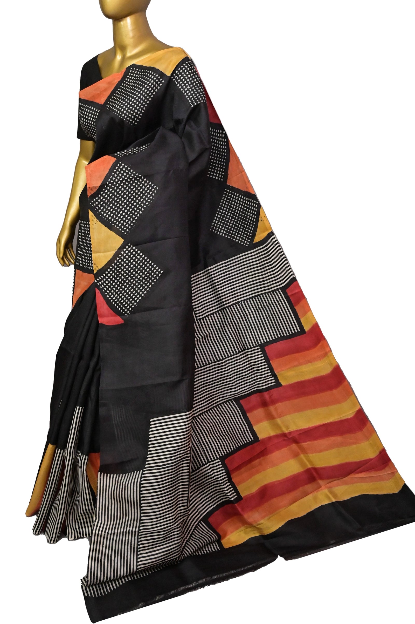 Jet Black Color Bishnupur Silk Saree with Digital Print