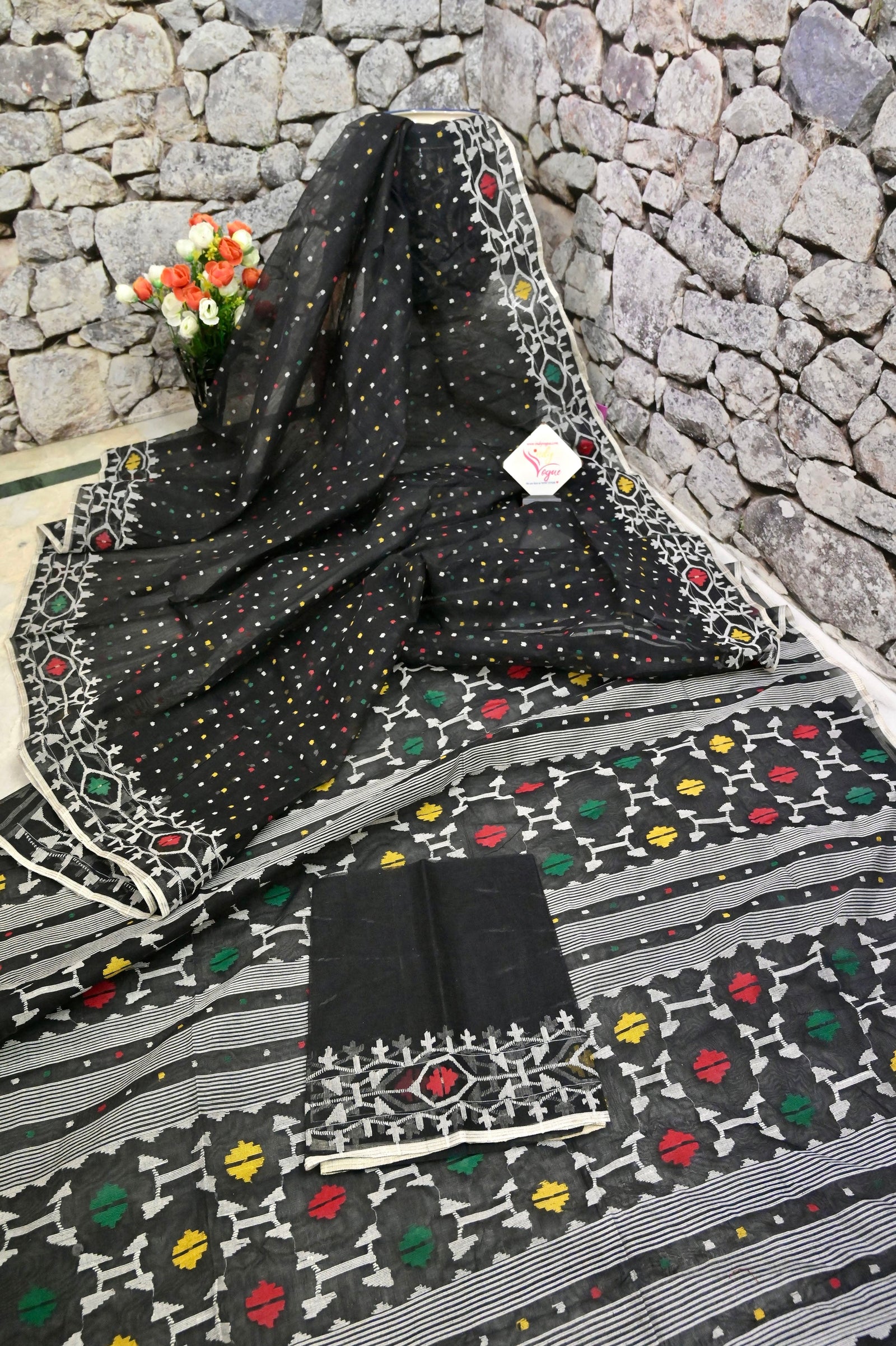 - Technique: Amazing and traditional work of self-jamdani weaving done all over with multi-colored buti work