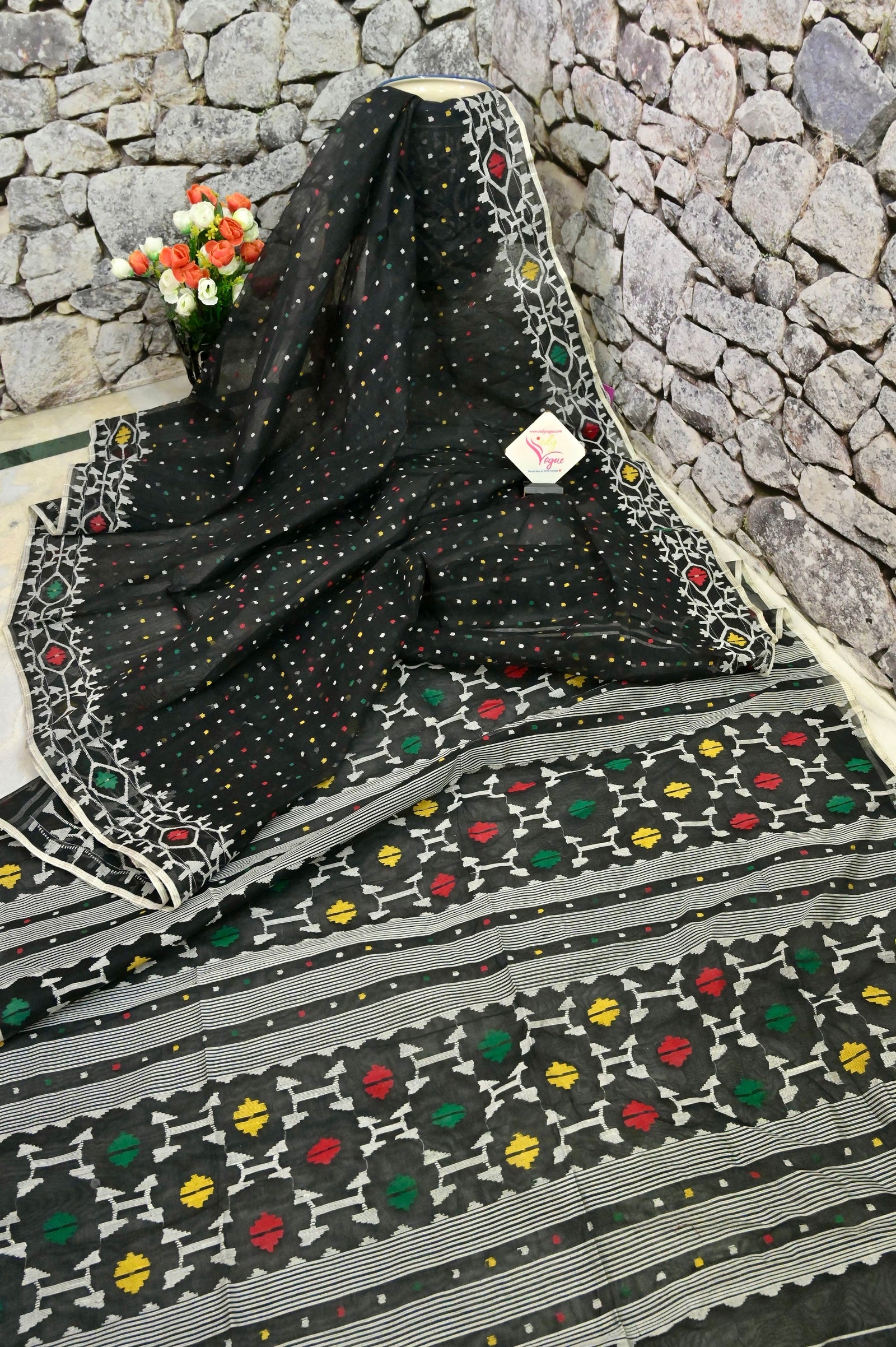 Jet Black Color Pure Bangladeshi Jamdani Saree