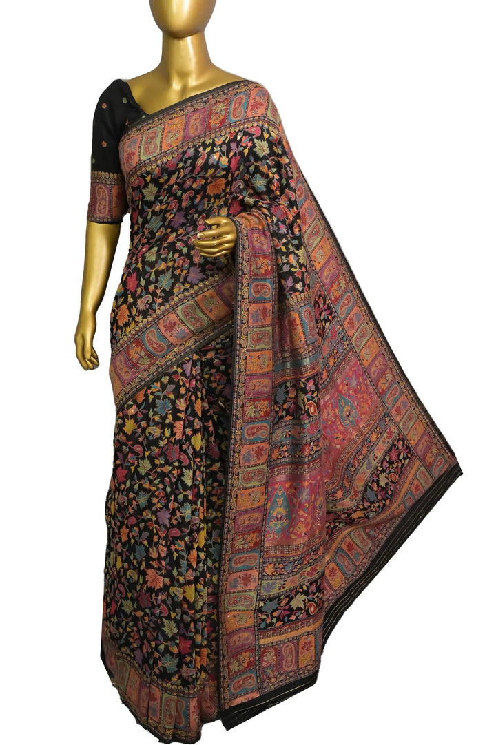 Kani Silk Saree in Asphalt Black Color with Multicolored Thread Weaving and Zari Work