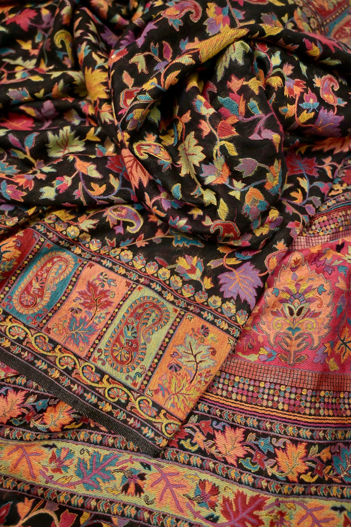 - Intricate floral and paisley patterns that tell stories of elegance and heritage of the Kashmiri weaving, with thorough zari and multicolored thread weaving work