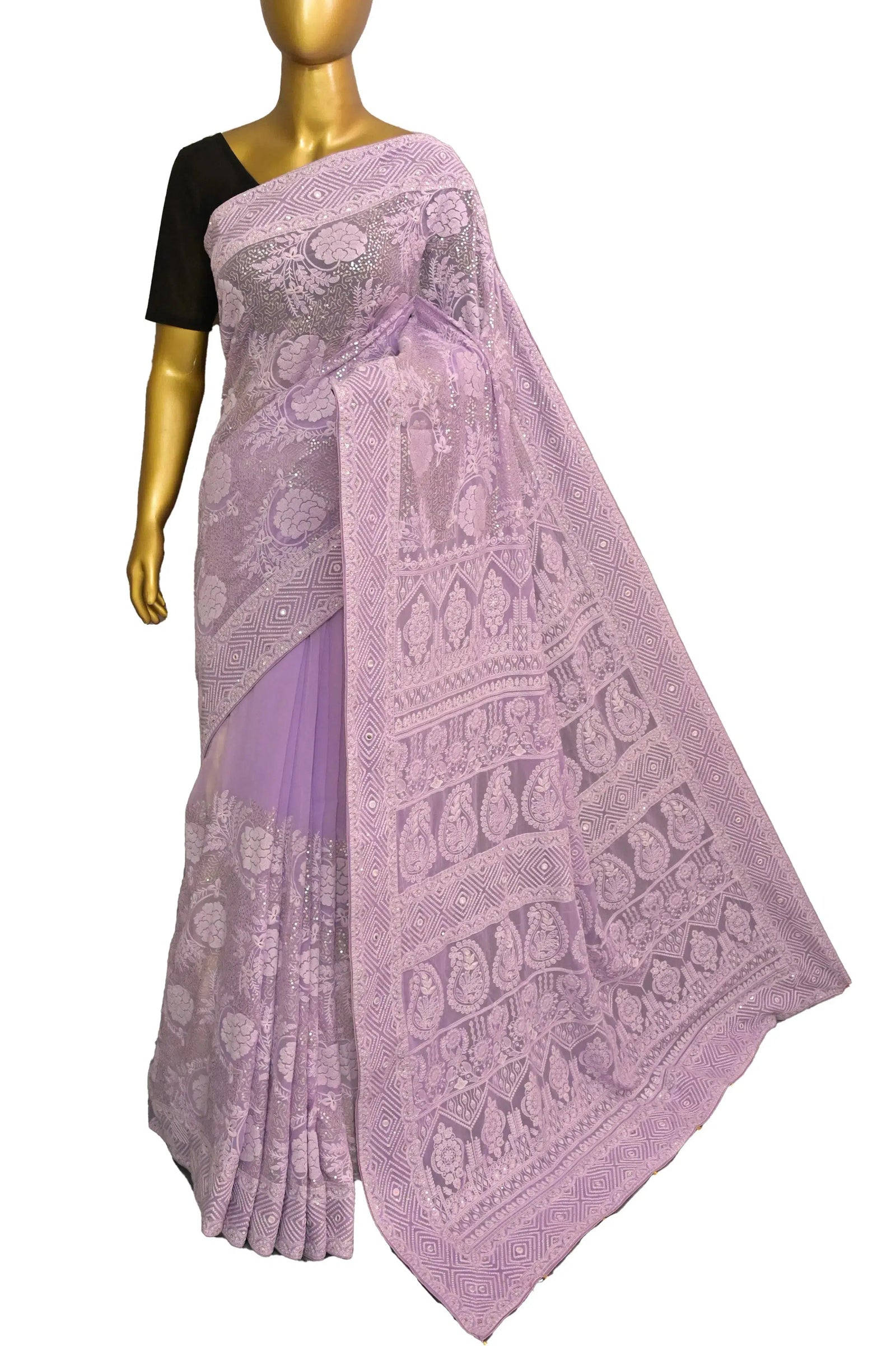 Lavender Color Georgette Saree with Chikankari Work and Sequin Embroidery