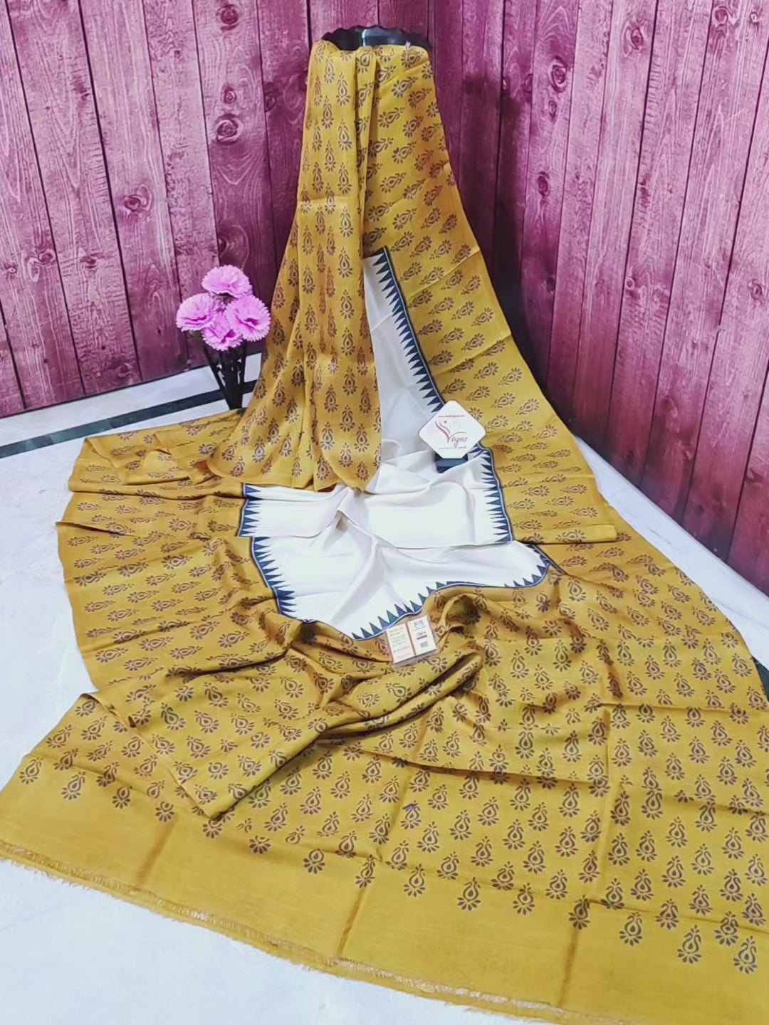- Hand-done block print work with a patli pallu, making it a wearable masterpiece.