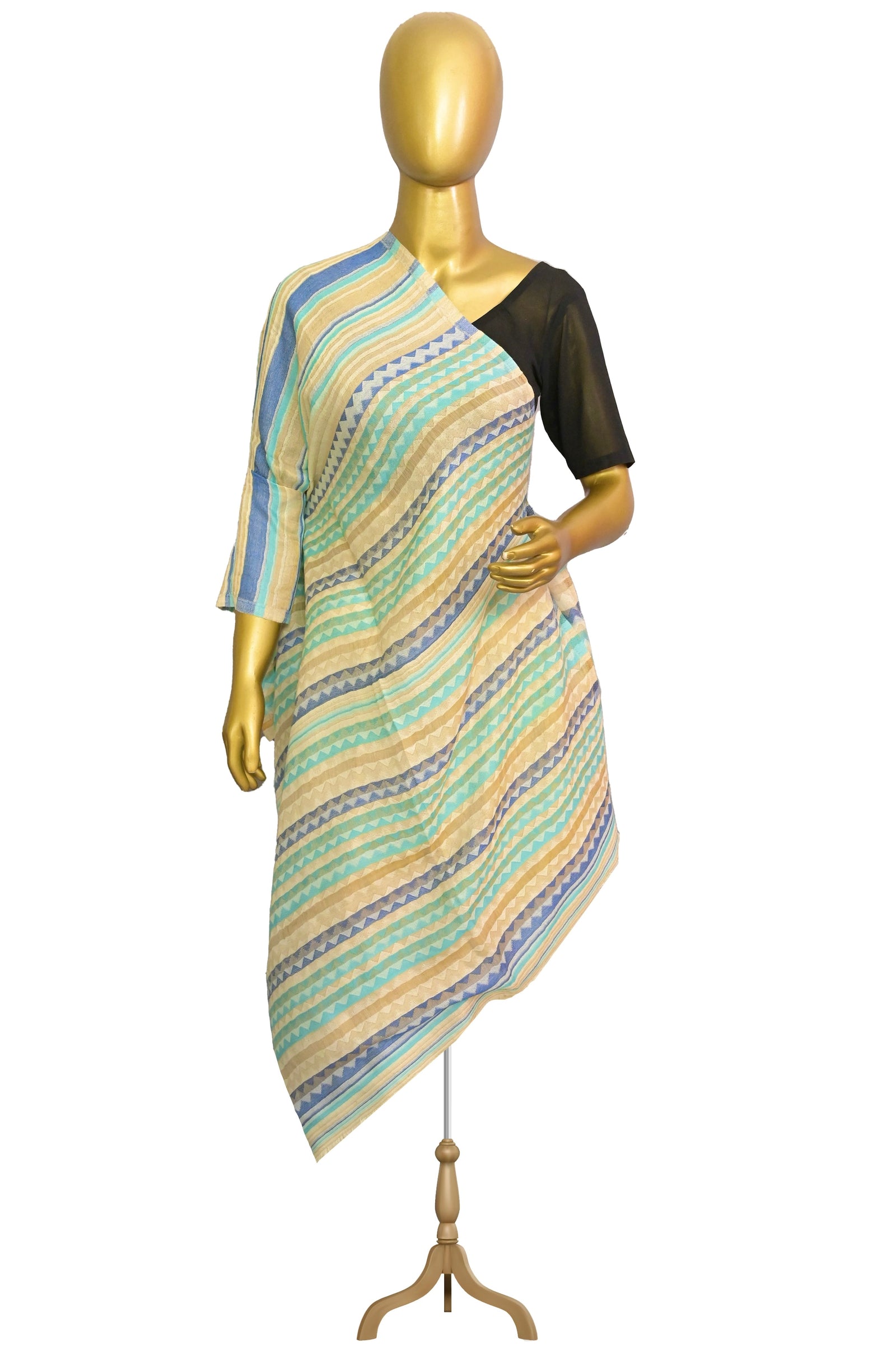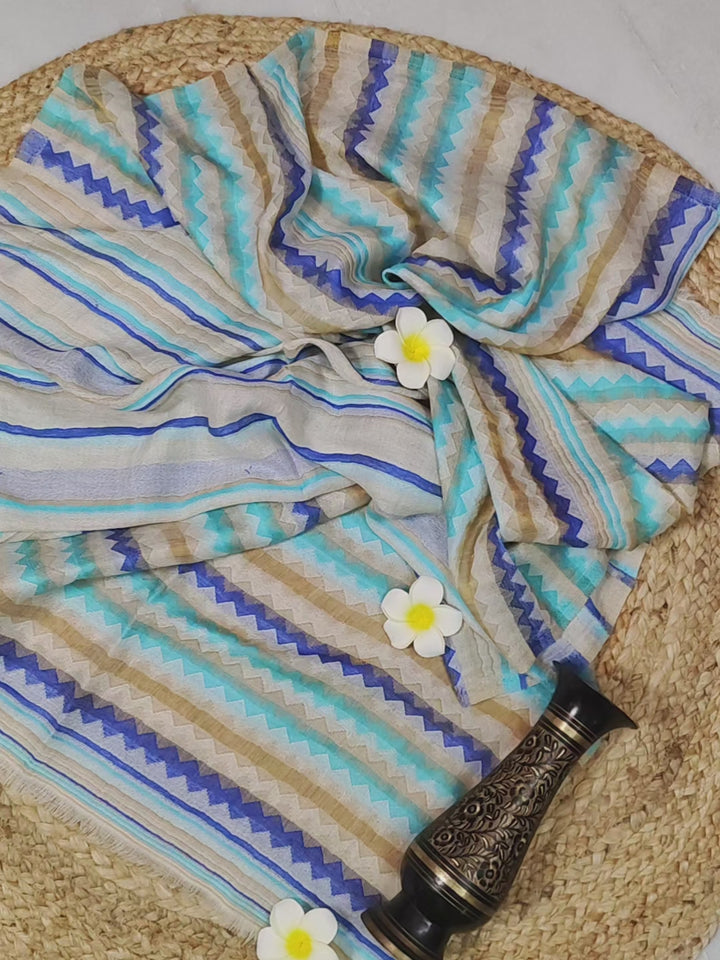 This off-white and multicolored Pashmina stole is where elegance meets effortless warmth. The feather-soft texture feels beautifully comforting, while the bold zig-zag design adds a contemporary edge to its graceful drape.