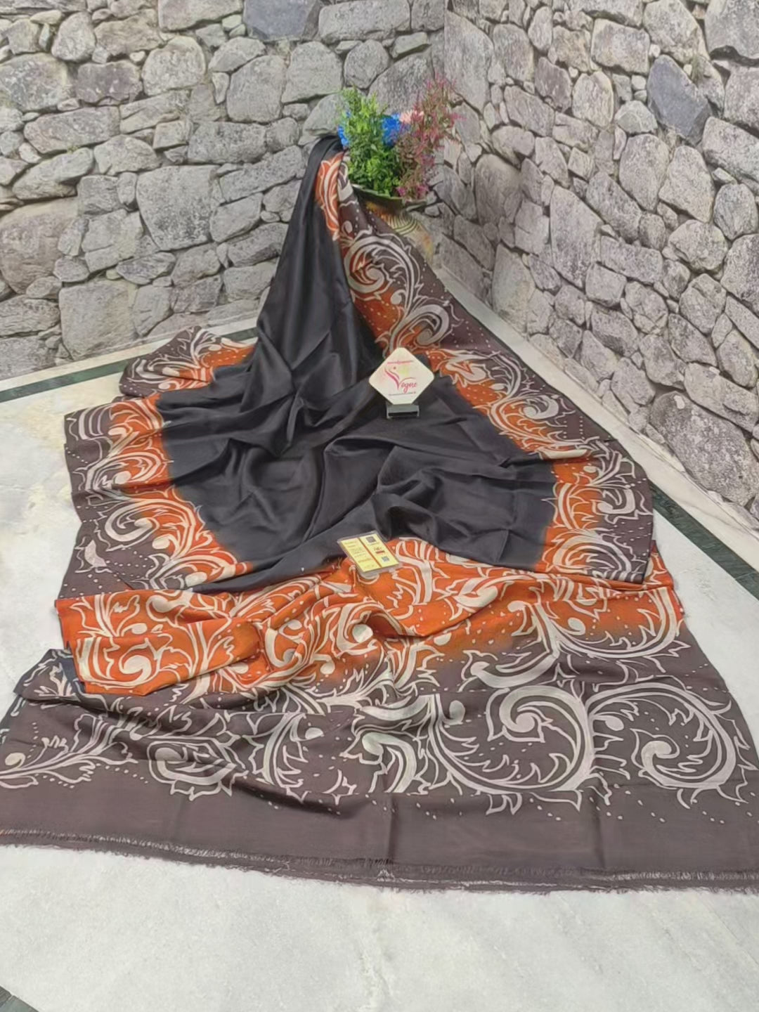 The rich silk feels like a dream, flowing gracefully as you move, while the intricate hand wax paint patterns add that wow-factor you didn’t know you needed. Whether you’re stealing the spotlight at a wedding or just want to glam up your festive wardrobe, this saree is your go-to magic wand.
