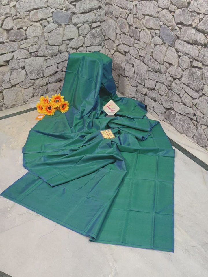 Meet the showstopper — our Pure Bishnupuri Silk Thaan Saree in a stunning green and blue dual tone that shifts beautifully with every move. Woven in the looms of Bengal, this saree is all about luxury that feels light as a dream. What makes it extra special? It’s a “thaan saree” — meaning it’s cut straight from the fabric roll, giving you a fresh, unstitched piece of artistry that’s truly one of a kind.