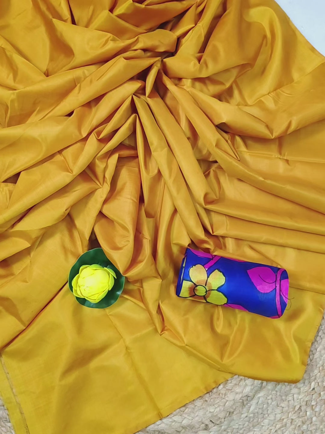 - Hand-done weaving work to make this mustard yellow color thaan saree elegant