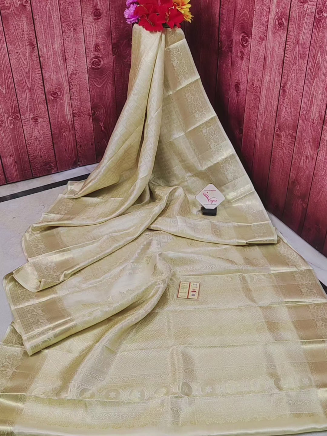 Pure Brocade Kanjeevaram Silk Saree in Golden Color with Allover Golden Jaal Zari Work with Box Pattern Weaving