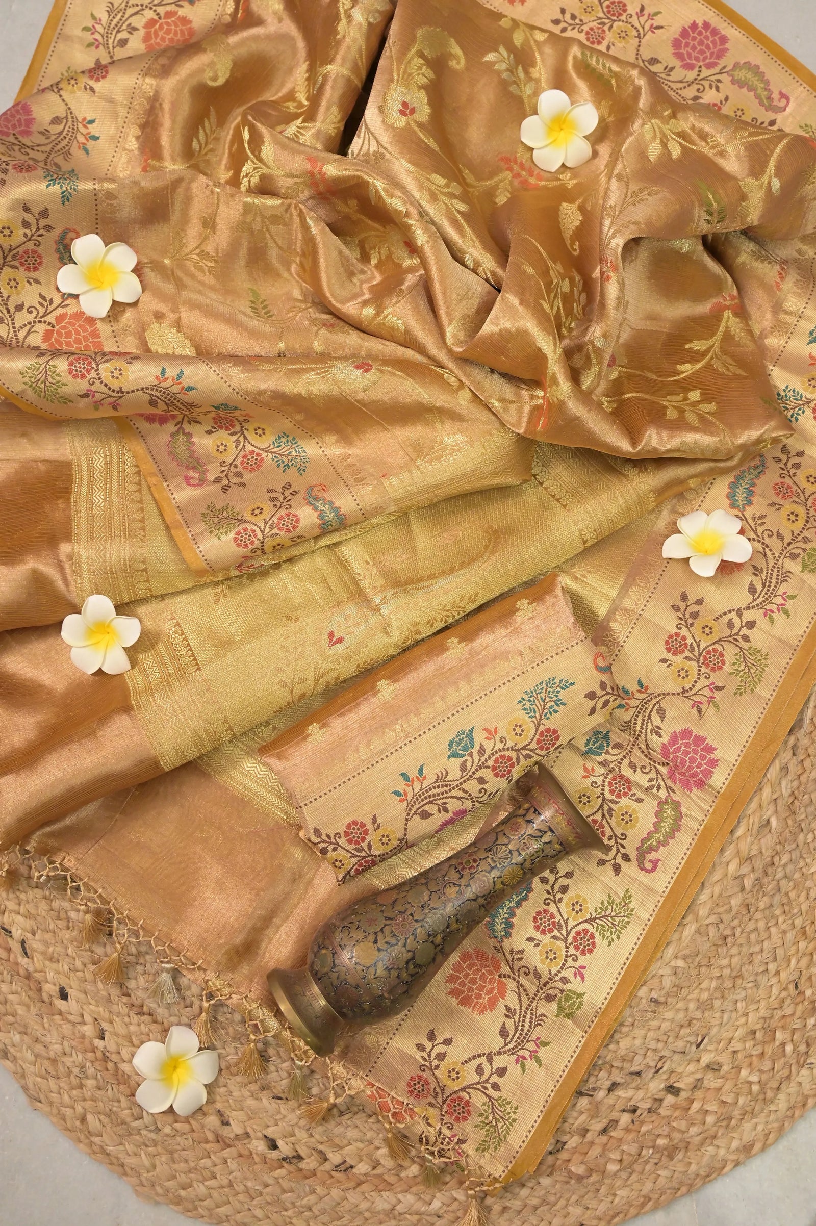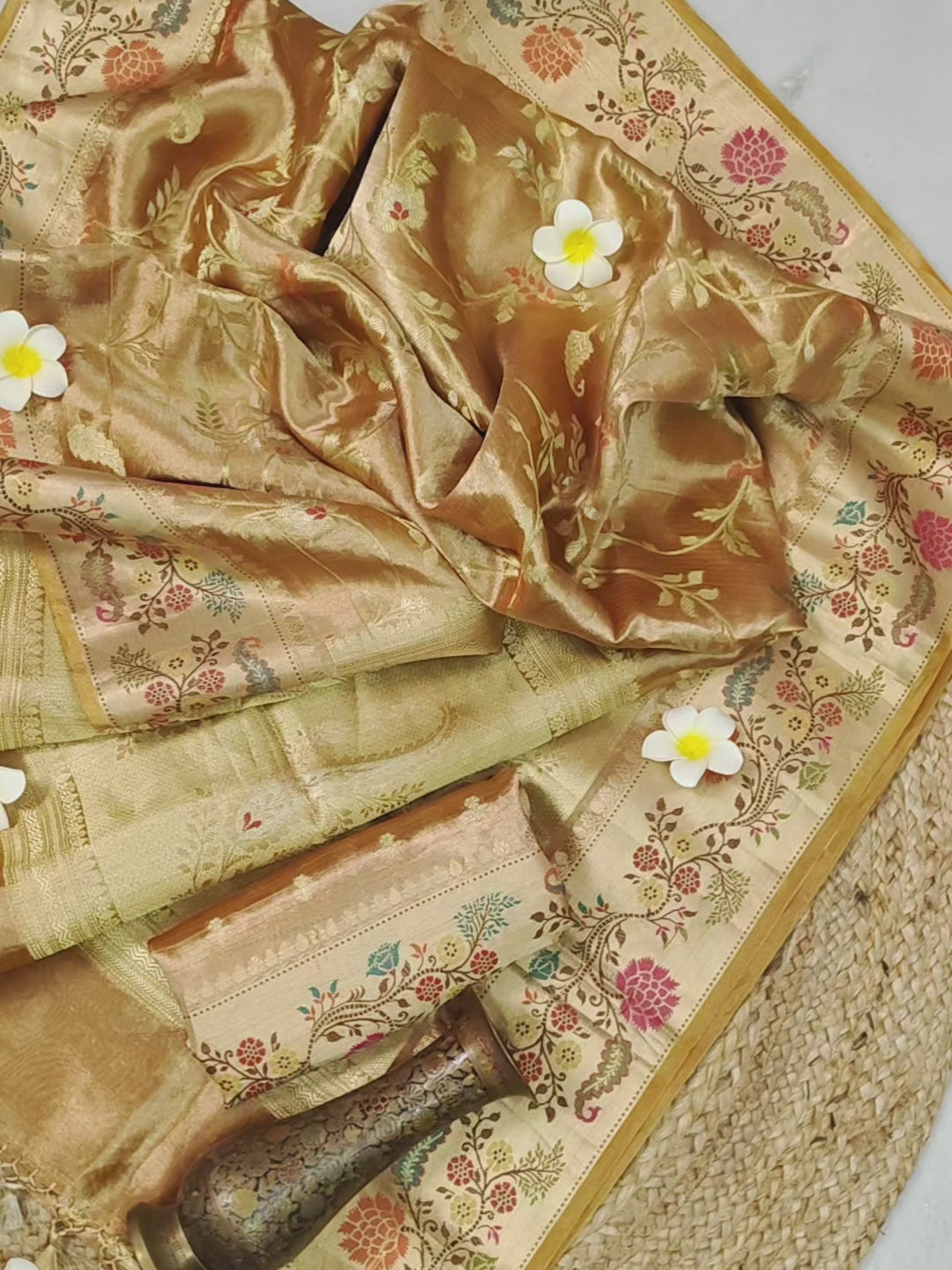 - Work: Hand Woven, Zari Work, Meenakari Work