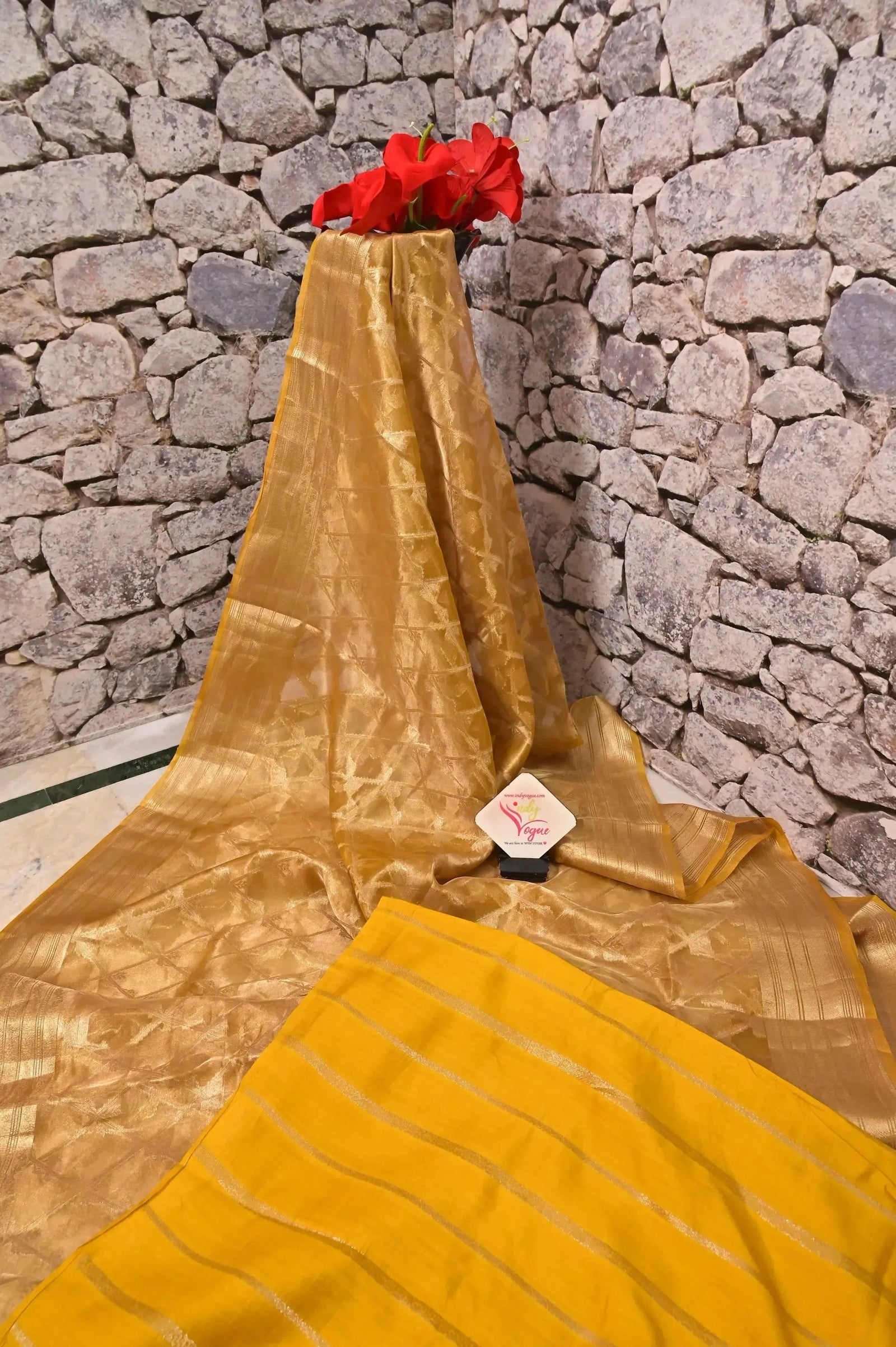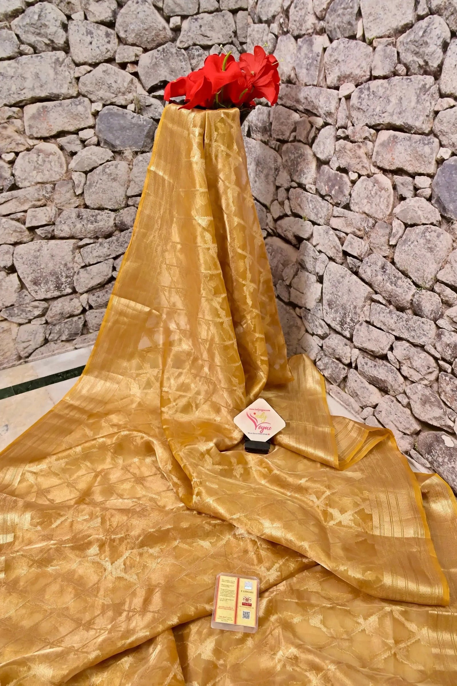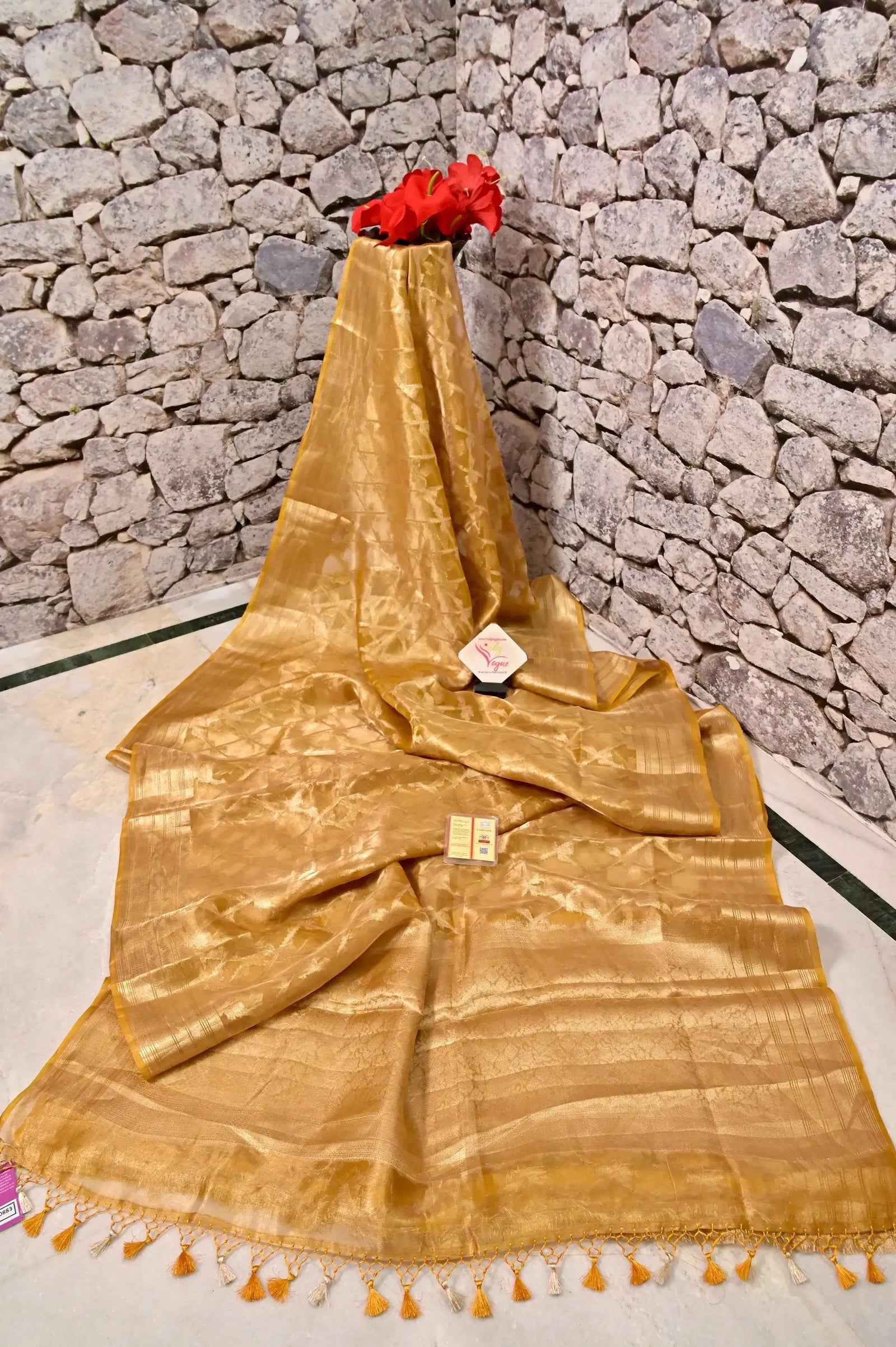 Pure Tissue Silk Saree in Golden Shimmer Color with Allover Jaal Work