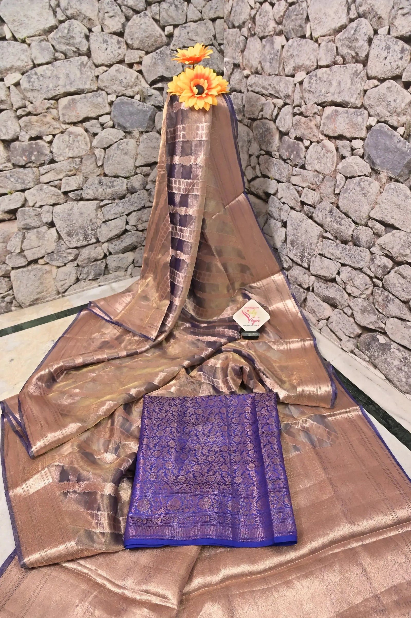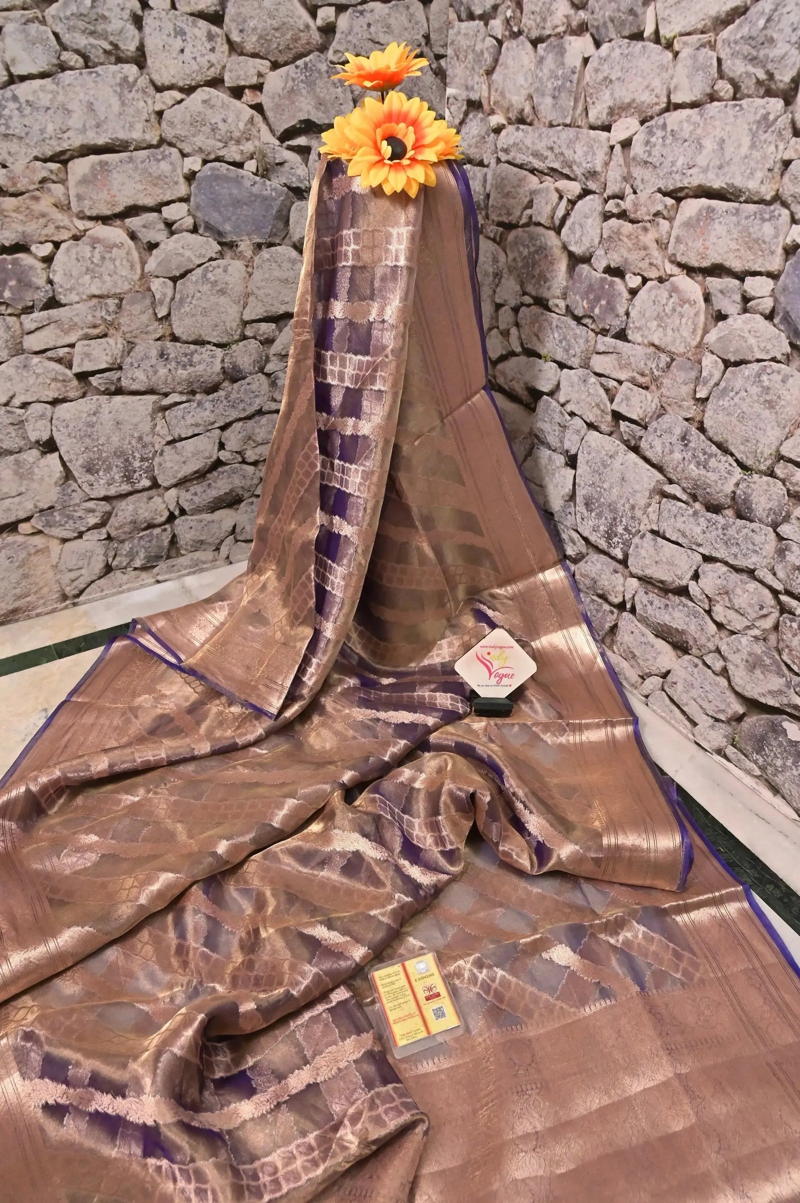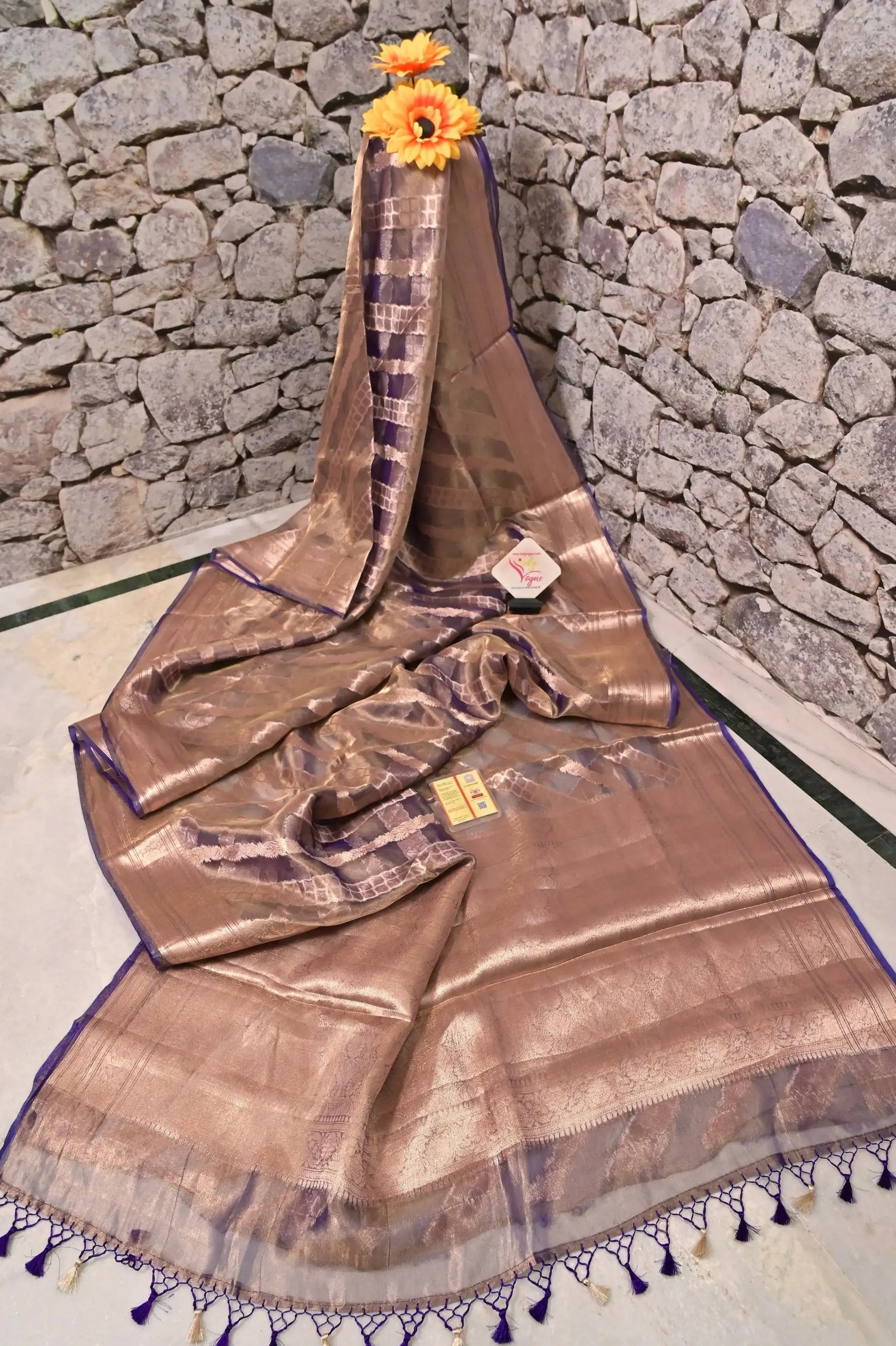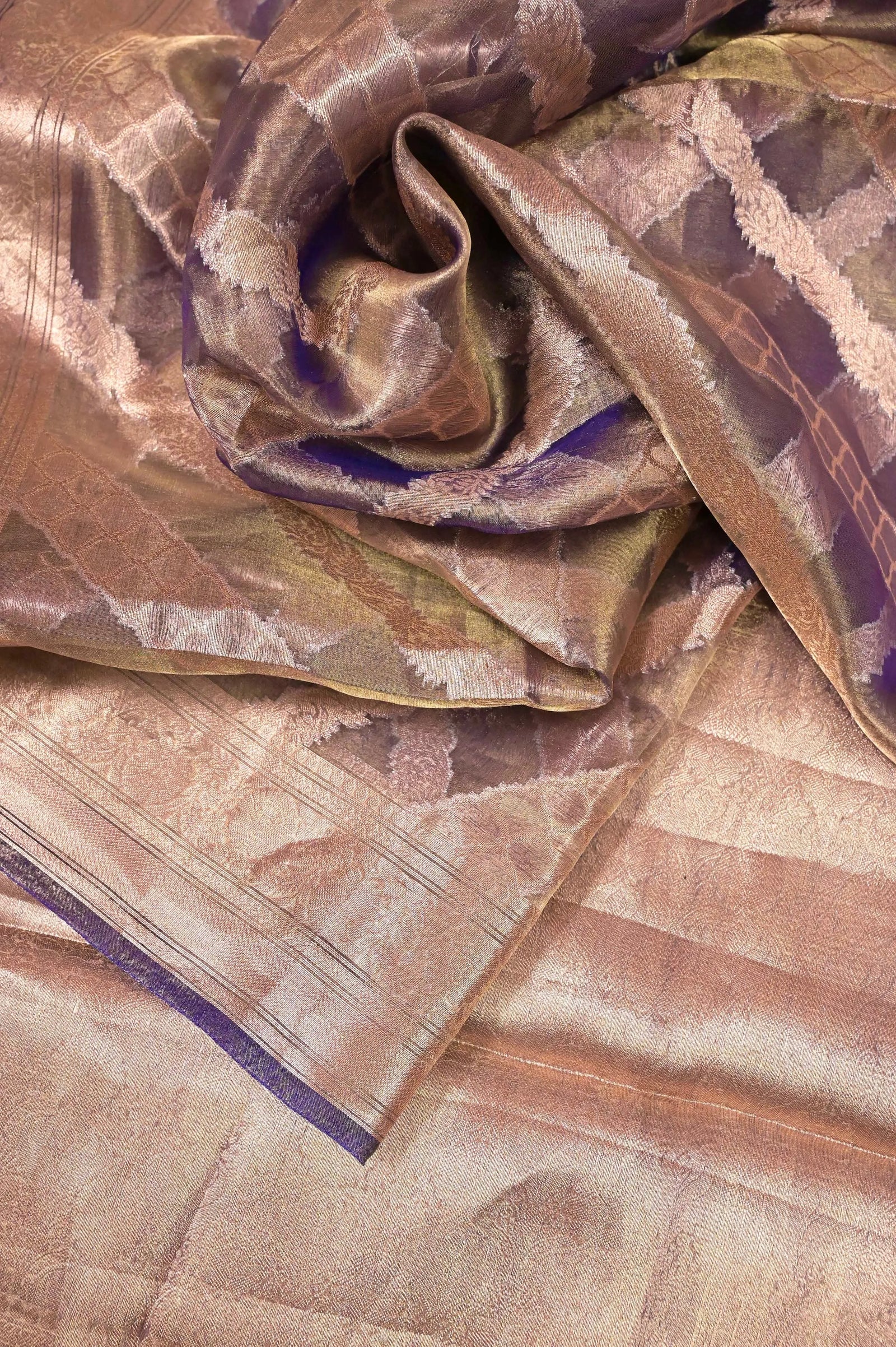 Pure Tissue Silk Saree in Purple and Golden Dual-Tone Shade with Allover Leheriya Work