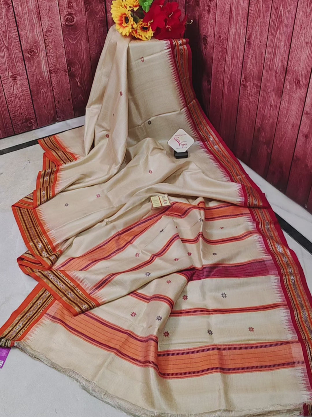 Your new favorite head-turner – the Pure Vidarbha Tussar Silk Saree in a dreamy Natural Sand color! Woven with love in the heart of Maharashtra, this beauty takes a solid 20 days to come to life – and oh, is she worth the wait!