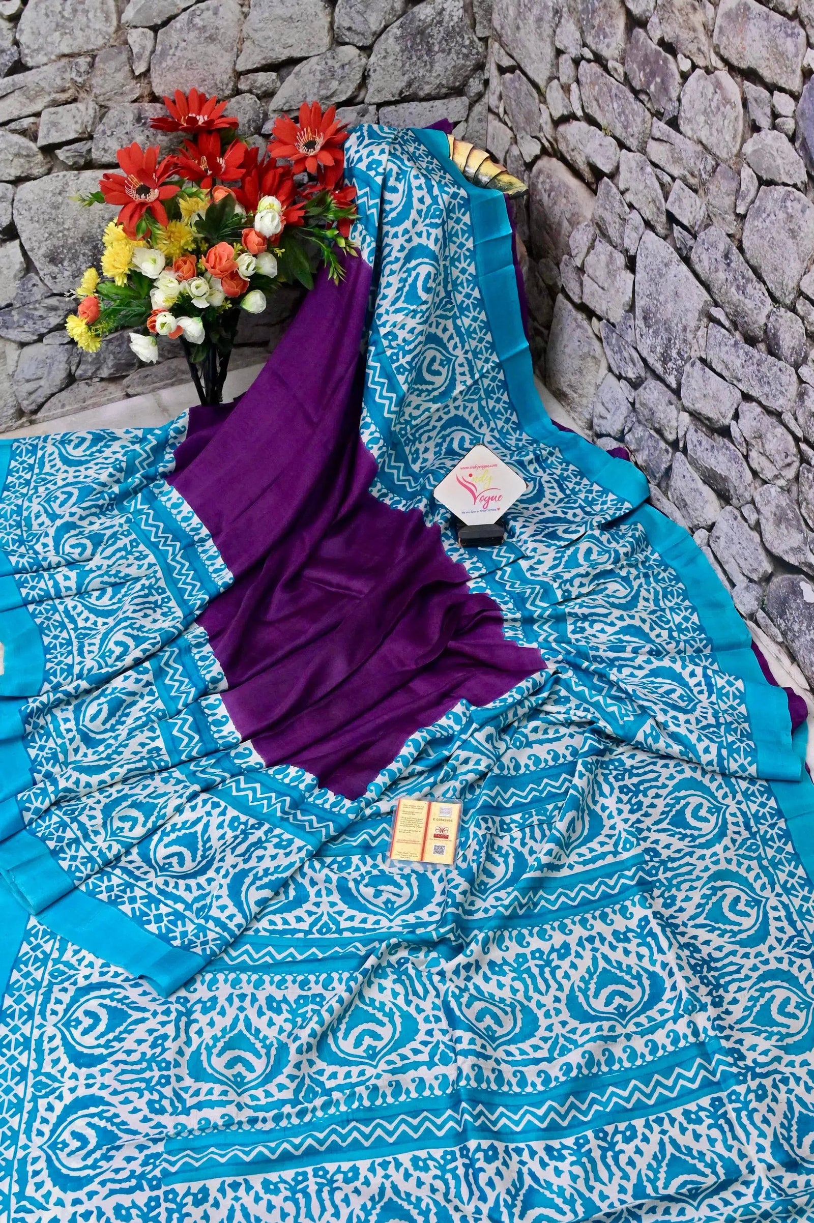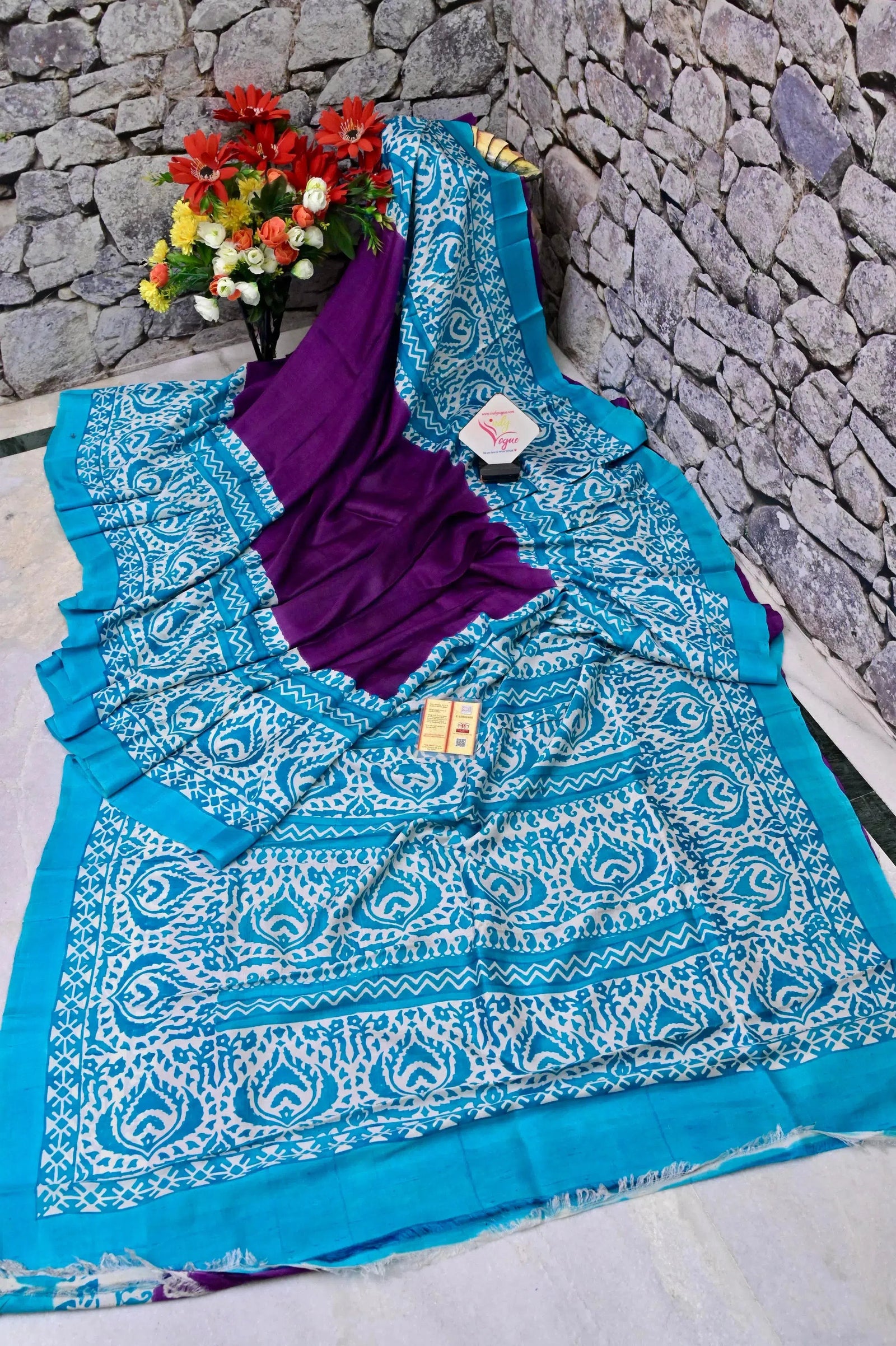 - Quality: Indyvogue's Assurance of Pure Silk Mark Certified Saree