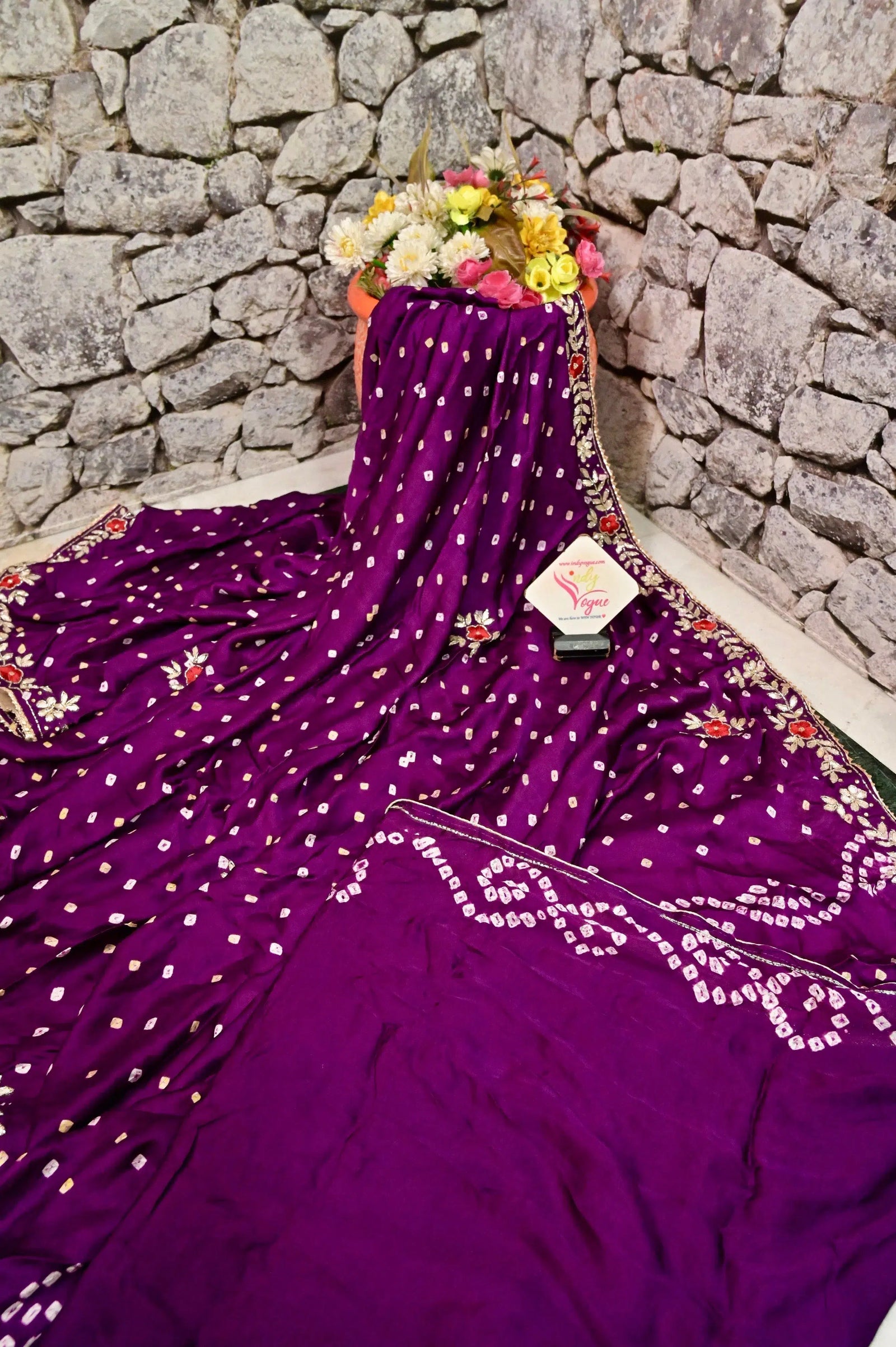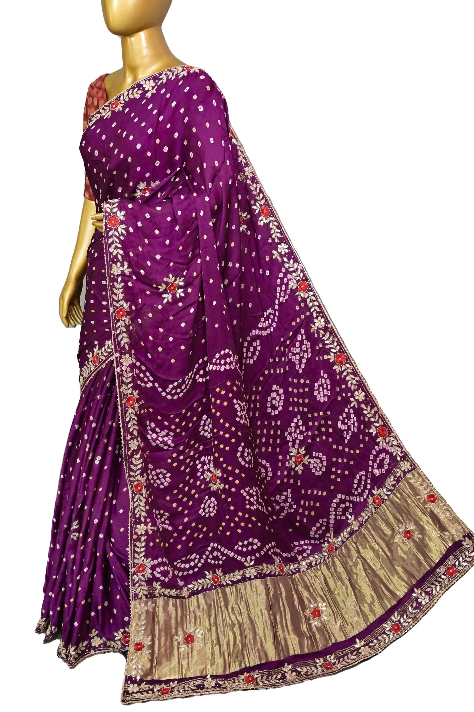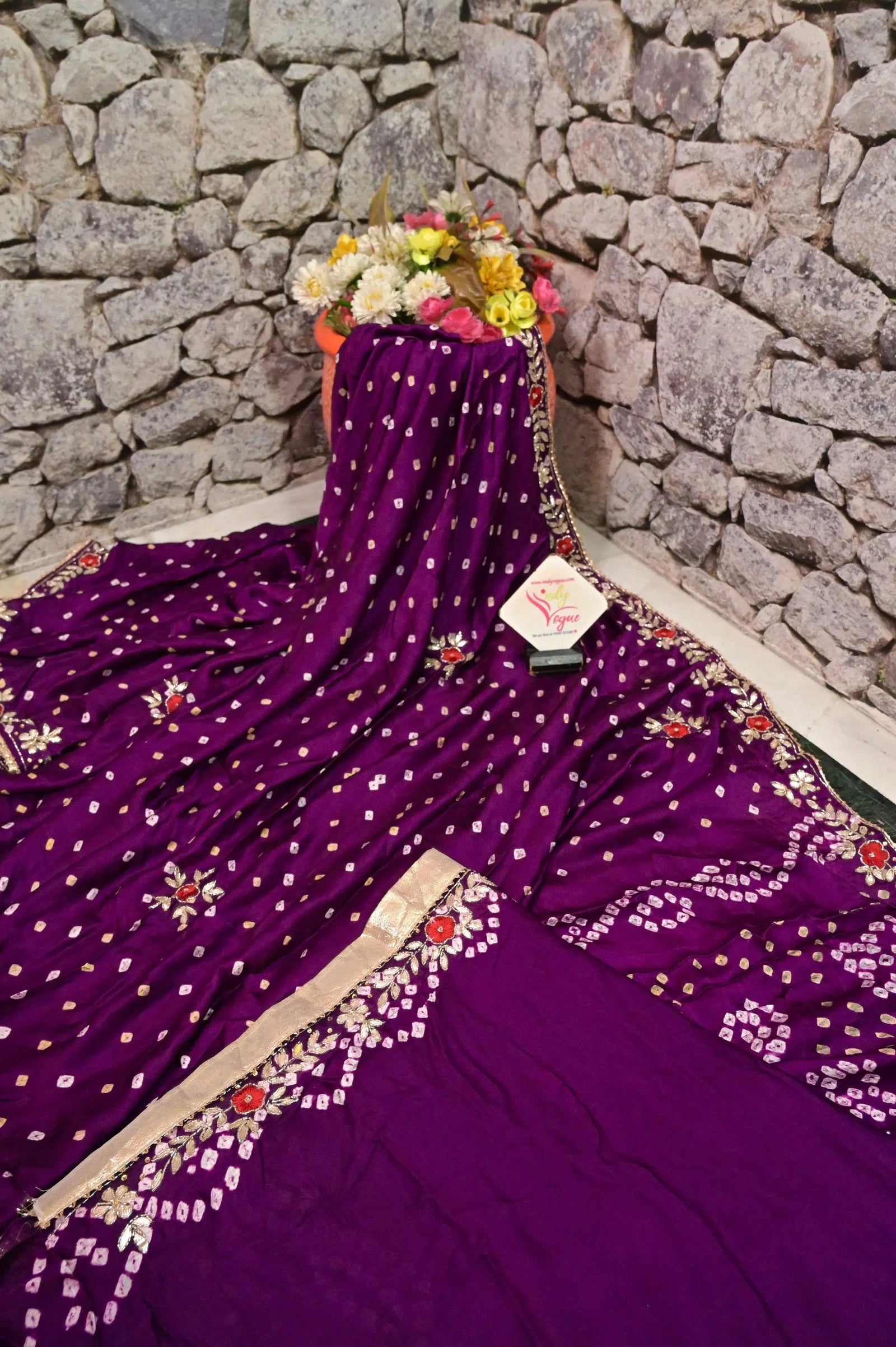 Purple Color Modal Silk Saree with Gota Patti and Allover Bandhani Work