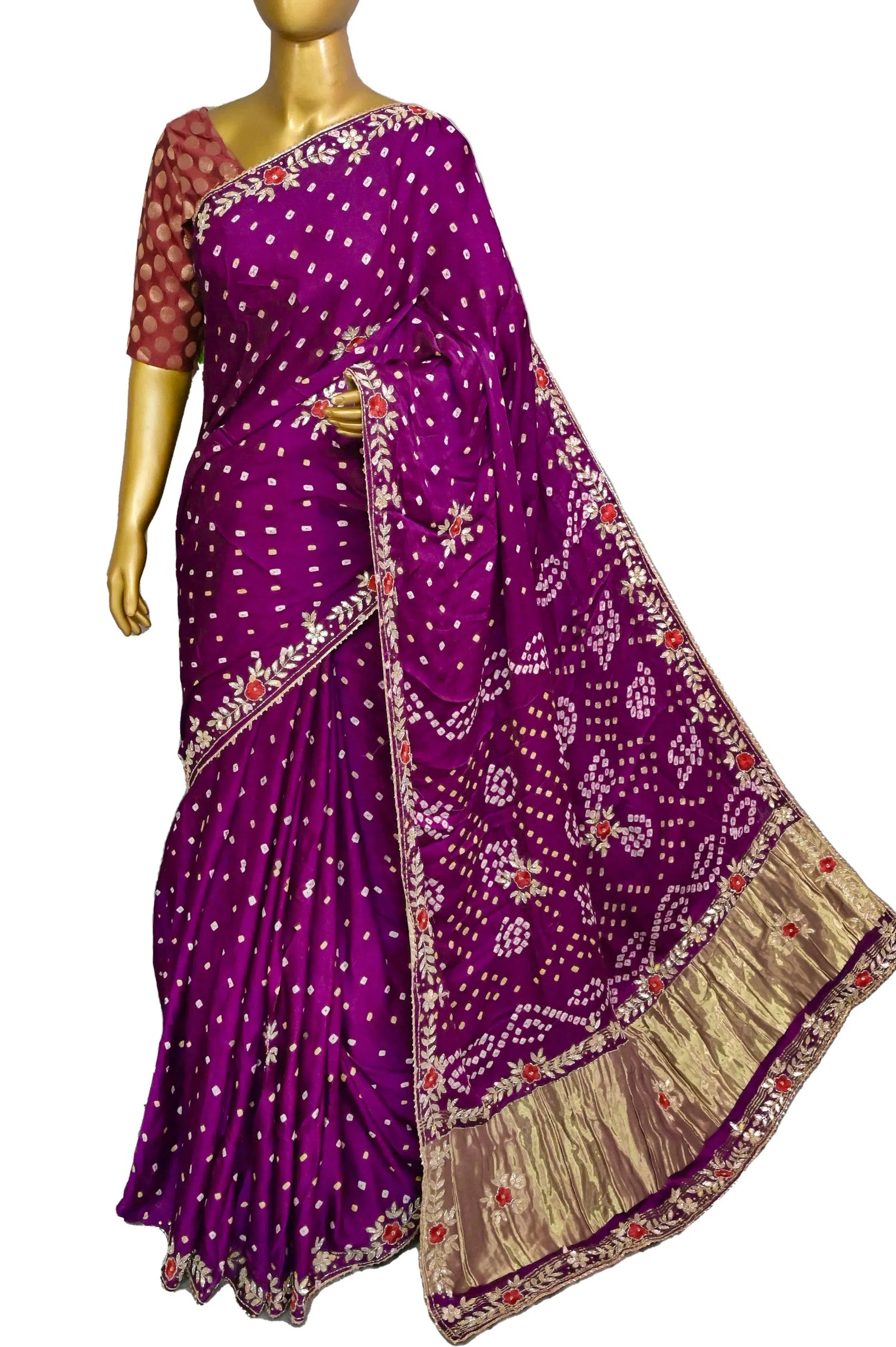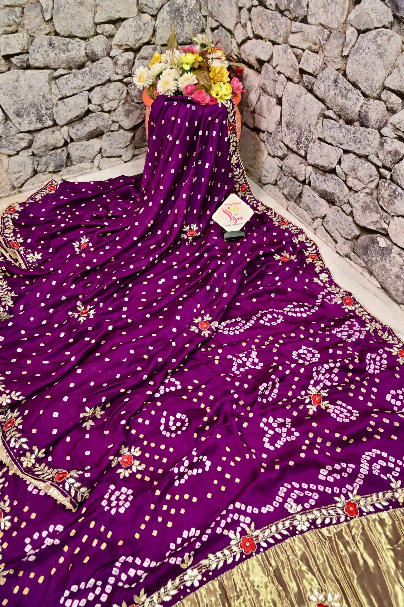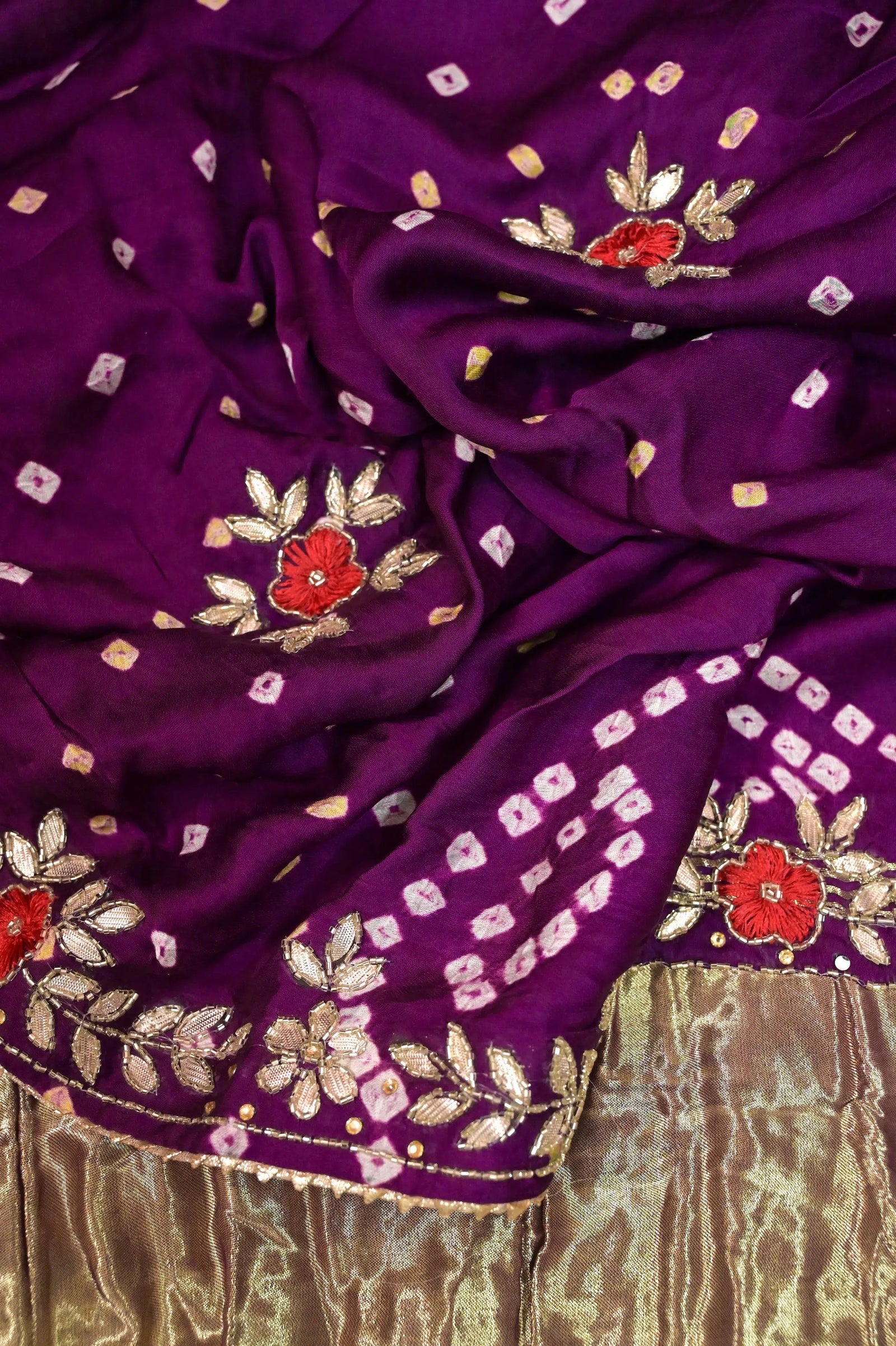 Purple Color Modal Silk Saree with Gota Patti and Allover Bandhani Work