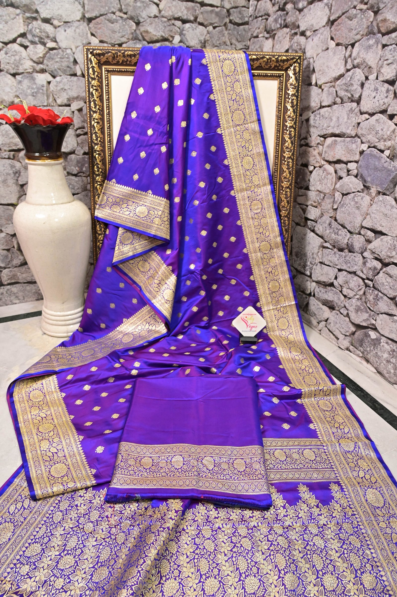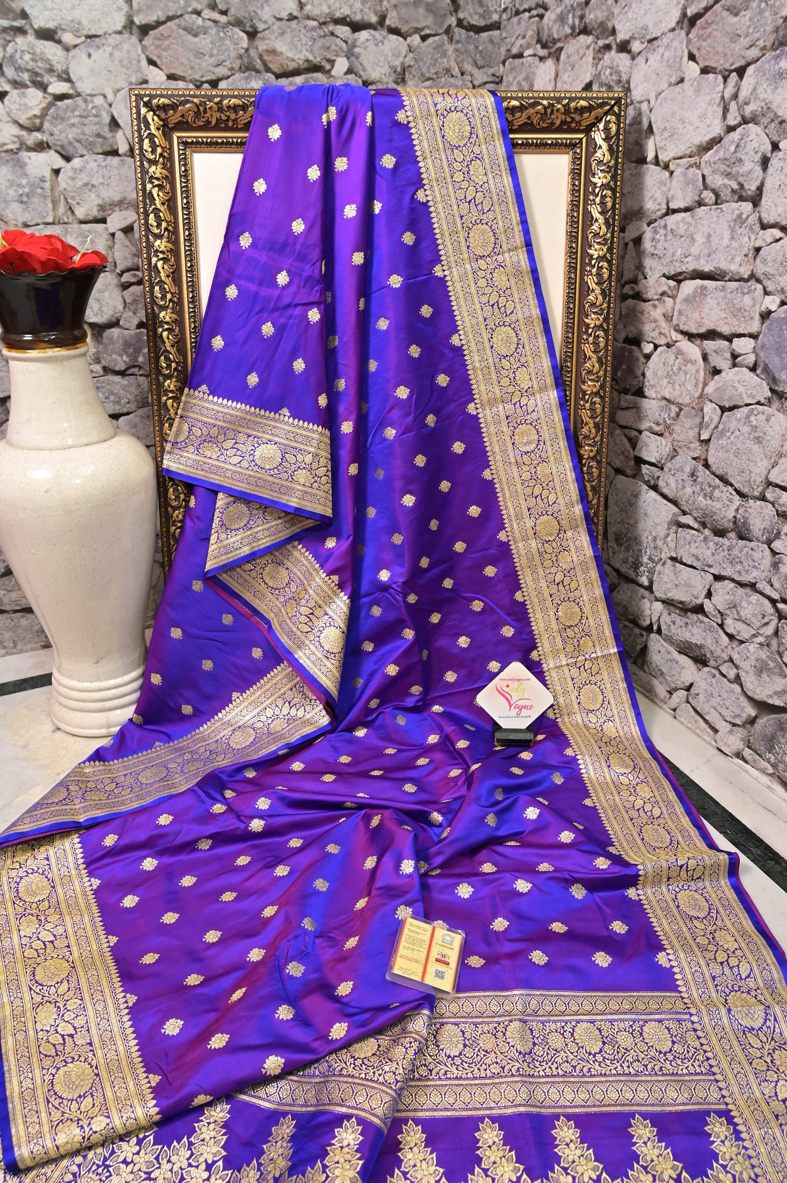 Purplish Blue Color Pure Mashru Silk Saree with Golden Zari Work