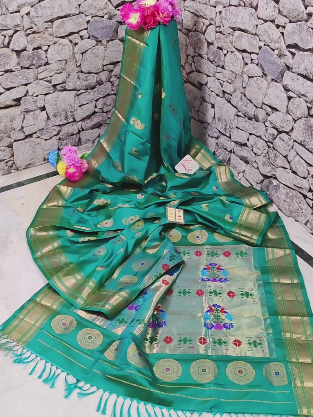 - Work: Hand Woven, Paithani Work, Meenakari Work