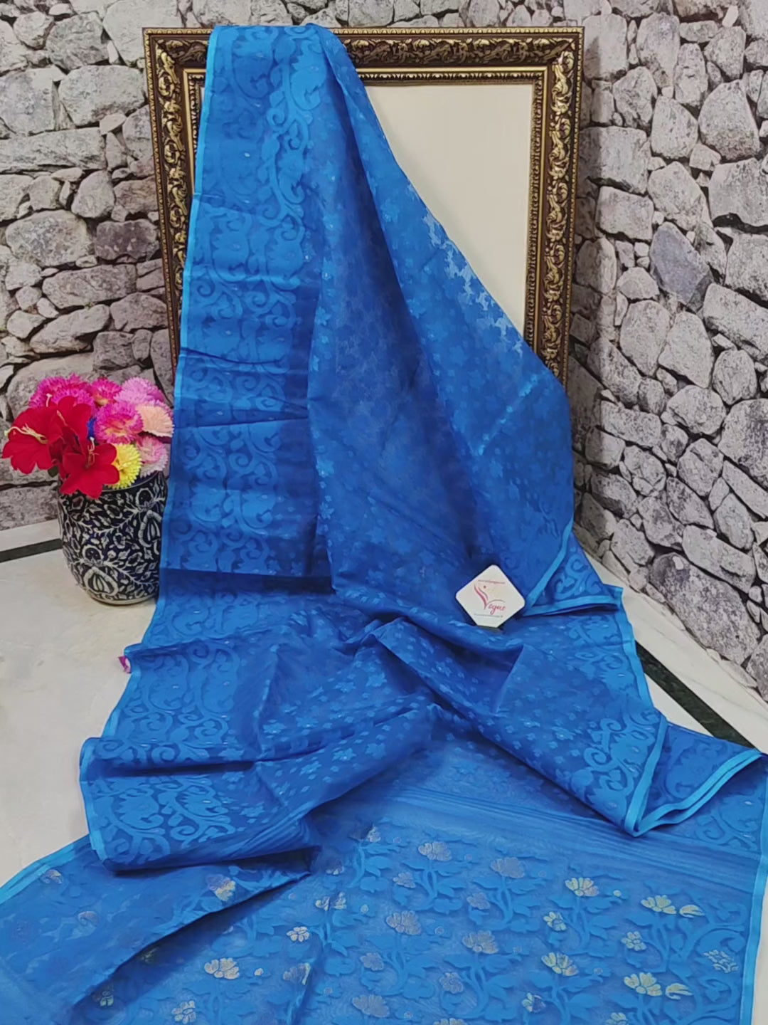 Elevate your fashion game and ignite your sense of adventure with this luxurious masterpiece - the sapphire blue color Jamdani saree. Adorned with intricate self-weaving and a captivating design, this stunning piece is a must-have in your wardrobe. Embrace the thrill and make a statement with this exclusive and elegant addition to your collection.