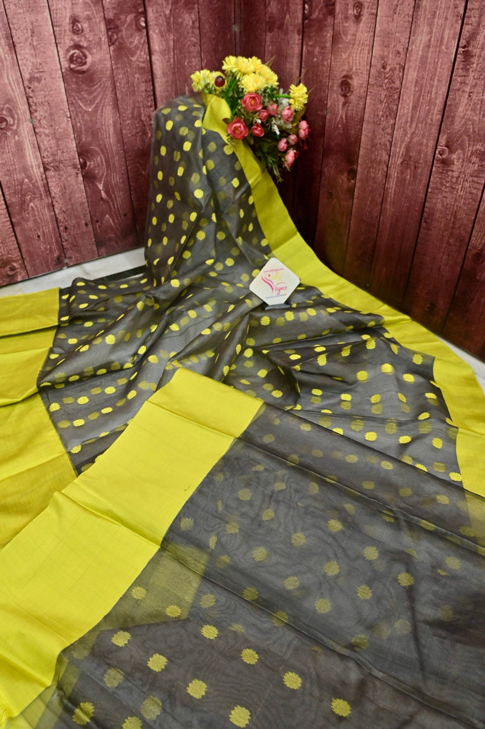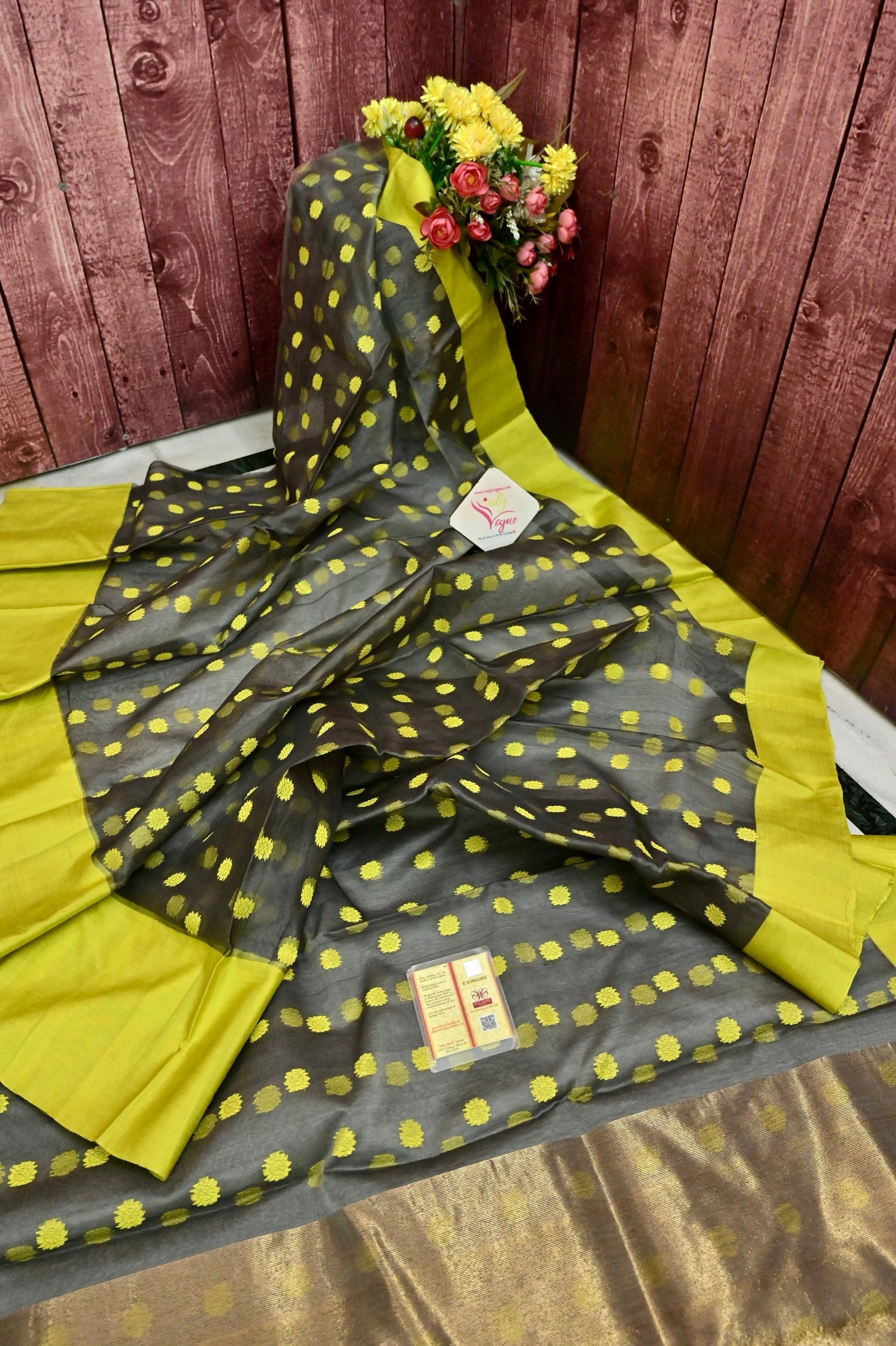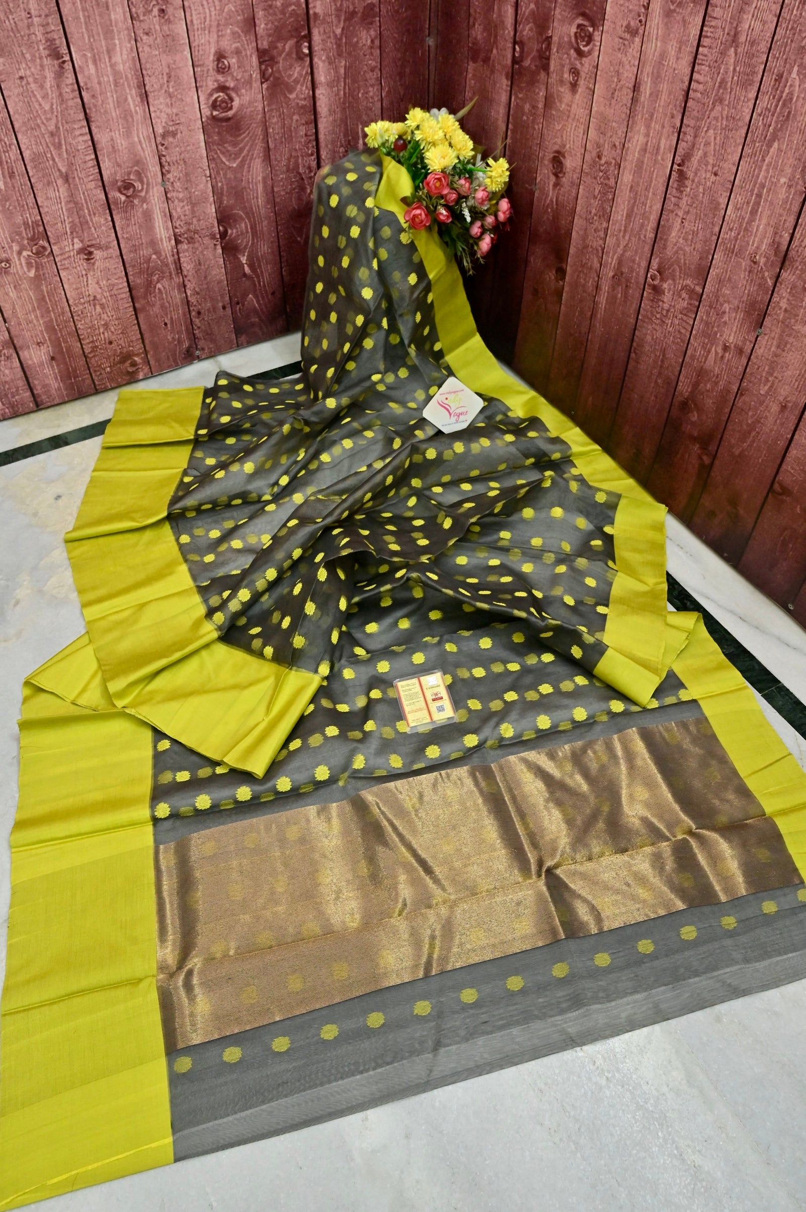 Seaweed Green Color Chanderi Banarasi Saree with Yellow Border