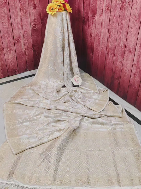Semi Mahsru Banarasi Silk Saree in offwhite Color with Allover Jaal Zari Weaving Work