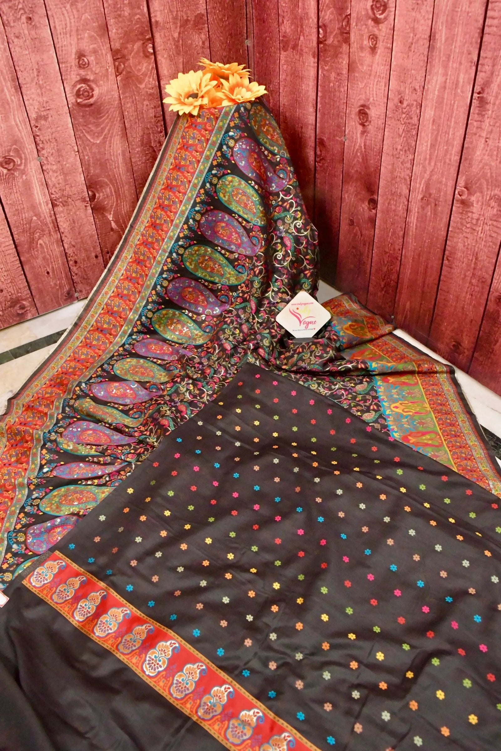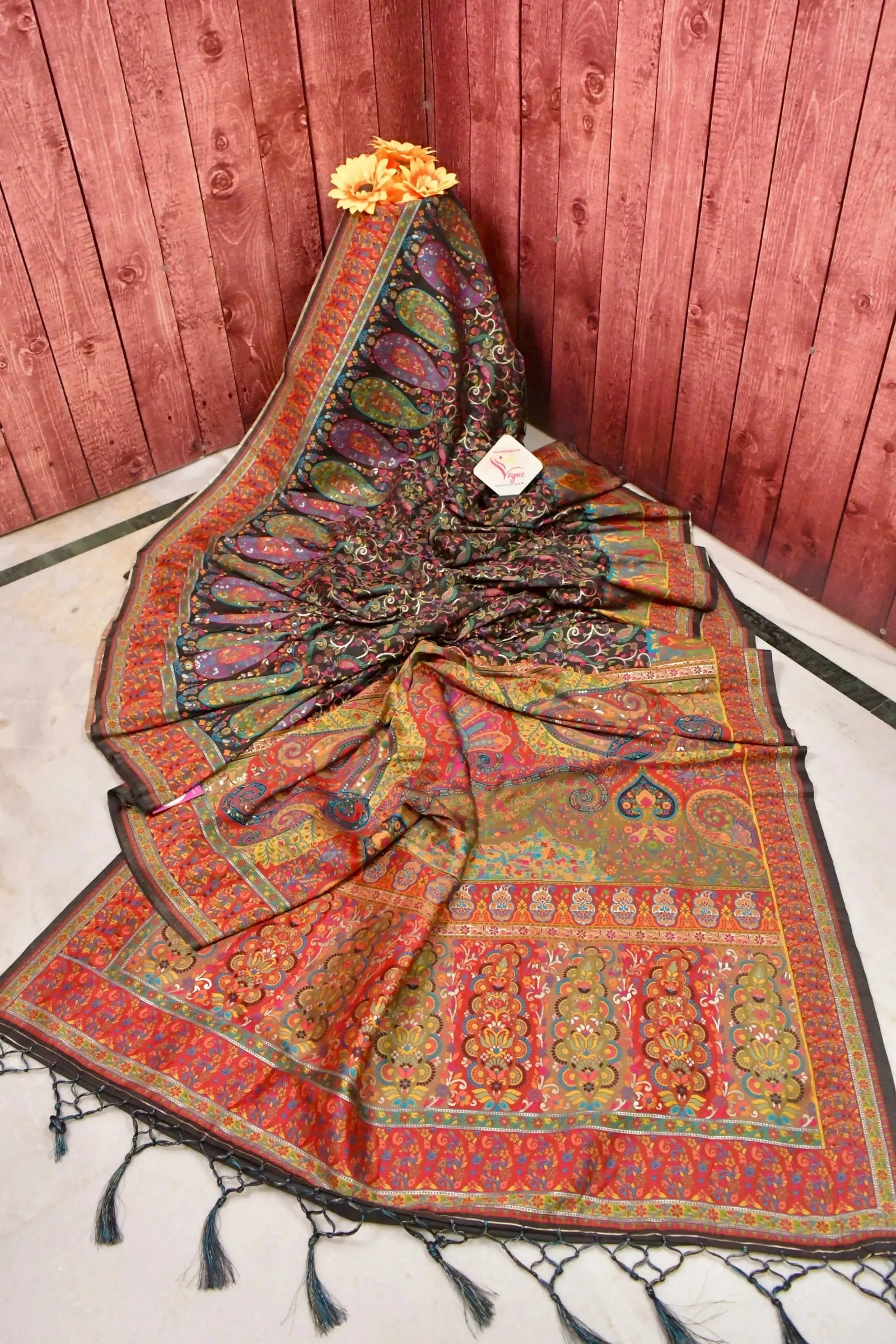 Slate Black Color Kani Silk Saree with Jaal Weaving Work