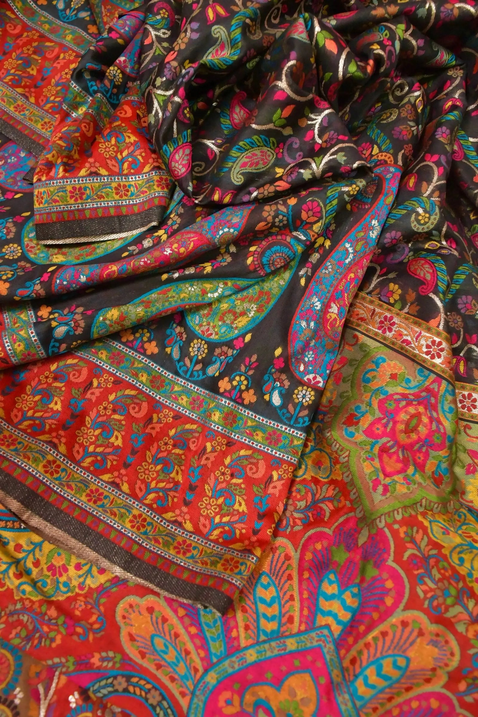 - Intricate floral and paisley patterns that tell stories of elegance and heritage through multicolored jaal weaving work