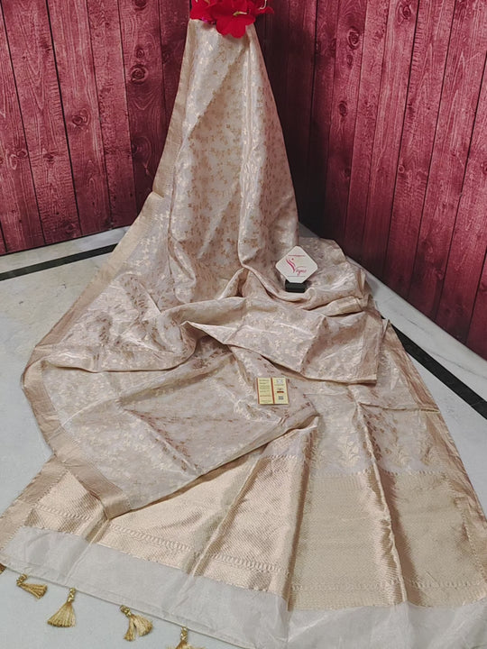 Tussar Color Pure Tissue Organza Banarasi Saree with Allover Jaal Zari Weaving